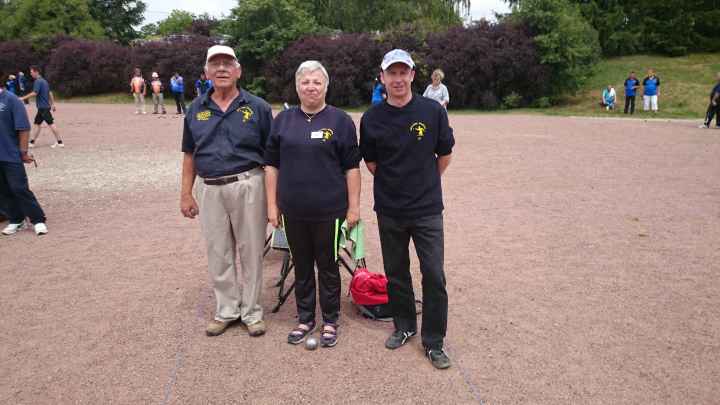 Le week-end des 28 et 29 juin 2014 se déroulait à La Guerche le championnat triplettes mixtes qui réunissait 95 équipes. Trois équipes de Saint Doul’ Pétanque 18 étaient inscrites, Nicole HIBON-Jean-Claude PAUL-Didier TRIBOT, Pascale HAUCK-Dominique BIZI-Jacky ZANET, Marie-Noëlle GIORGETTI-Sylvain PIGEAT-Cédric SIMON. Nos représentants se sont très bien comportés puisque 2 équipes se retrouvaient en 1/8° de finale le dimanche matin. Nicole HIBON perdait après poules le samedi, Pascale HAUCK s’inclinait en 1/4 de finale à 10 contre les futurs champions J Dubois-H Bordinat-S Receveur de St Florent le dimanche, et le meilleur résultat était à l’actif de Marie-No, Sylvain et Cédric qui s’inclinaient en 1/2 finale face à la redoutable triplette composée de MH Perruche-M Jacquet-P. Mite de St Florent. Bravo à toutes et à tous et RDV pour le dernier championnat départemental qui se déroulera en septembre à savoir le triplettes « promotion » et le doublettes « honneur ».