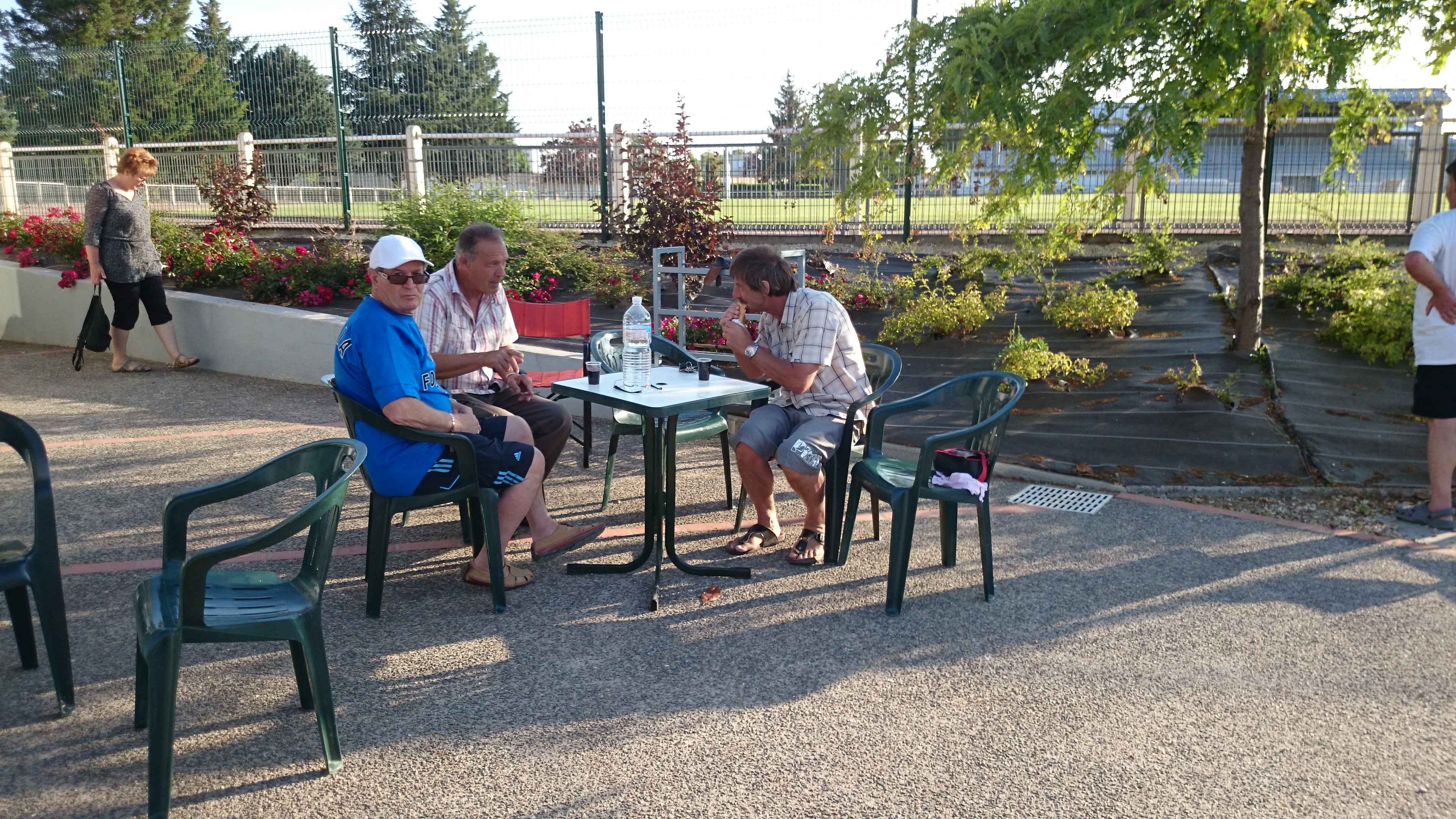 22 joueurs et joueuses ont participé, temps magnifique, prévu en 4 parties mais ramené à 3 because France-Suisse en coupe du monde. Merci aux quelques non licenciés et à quelques uns licenciés au Moulon de s’être joints à nous.