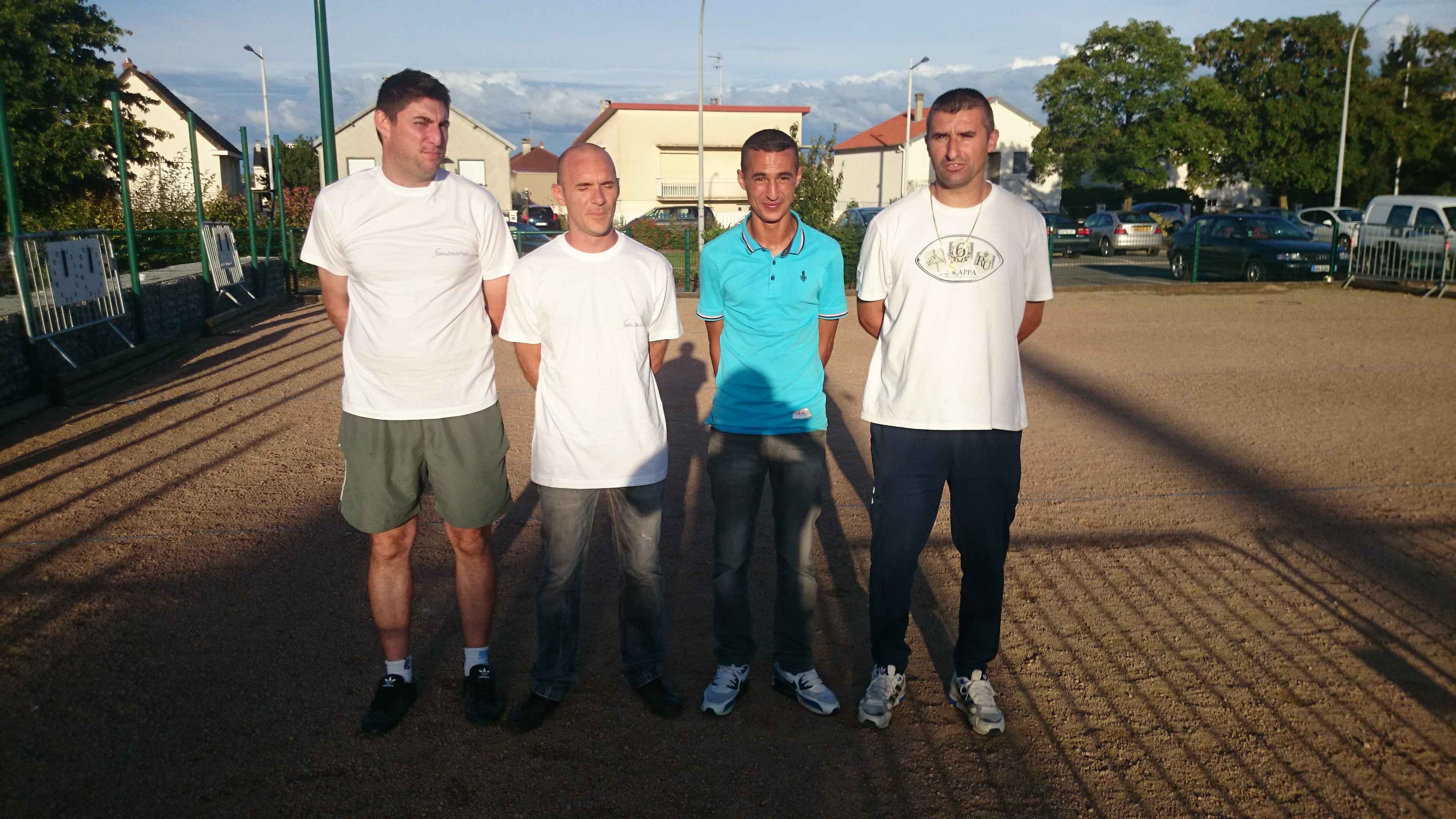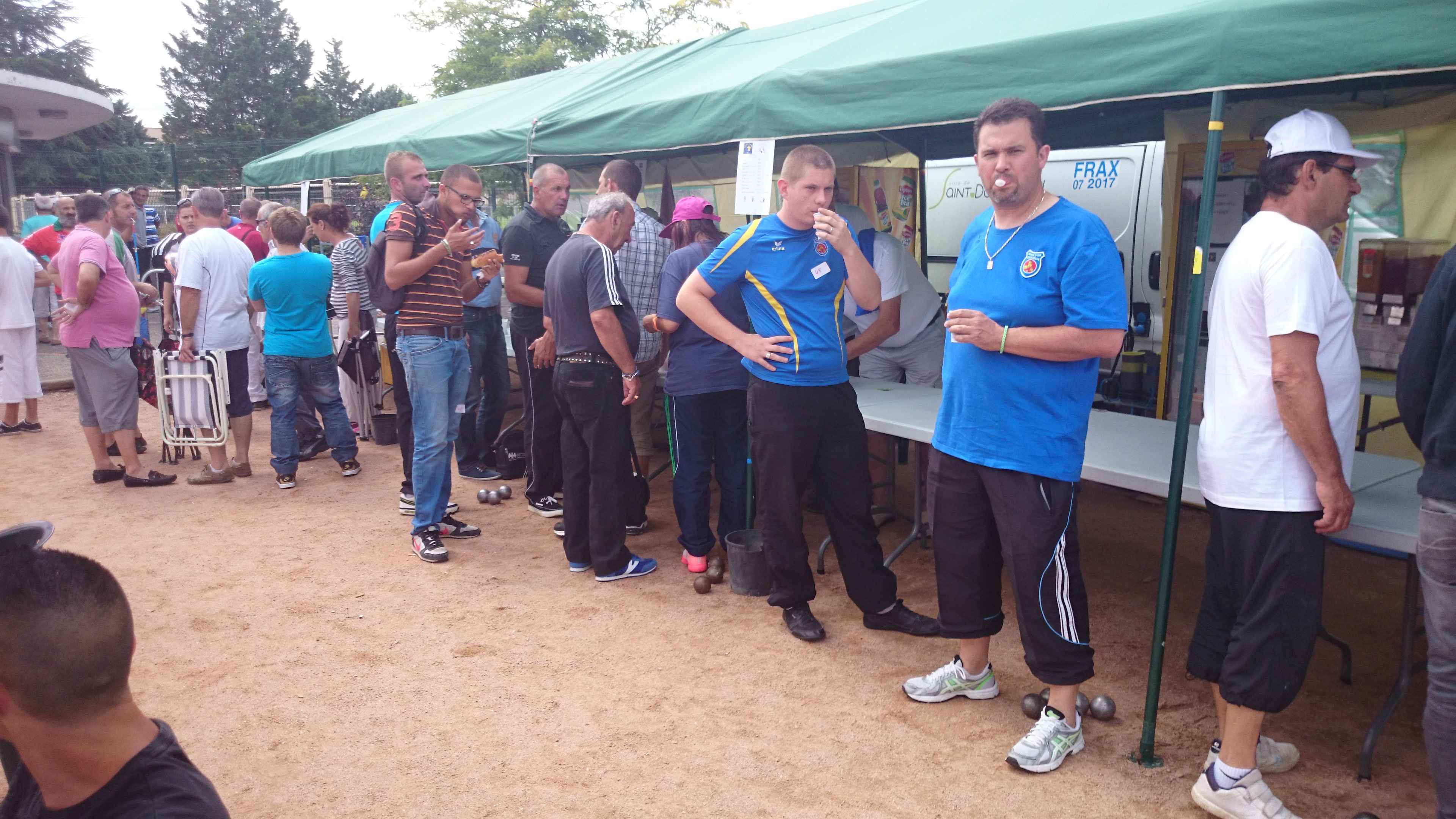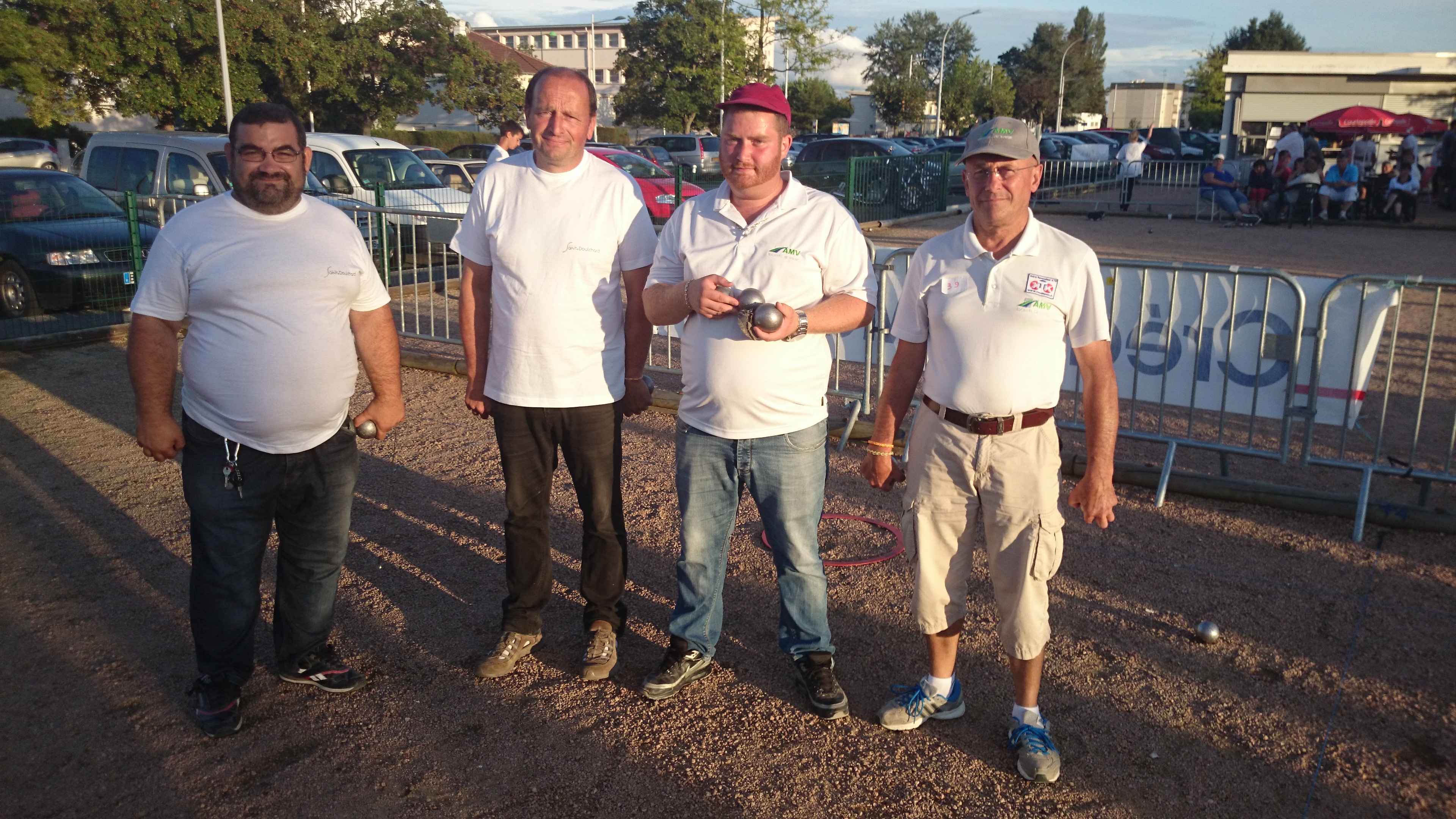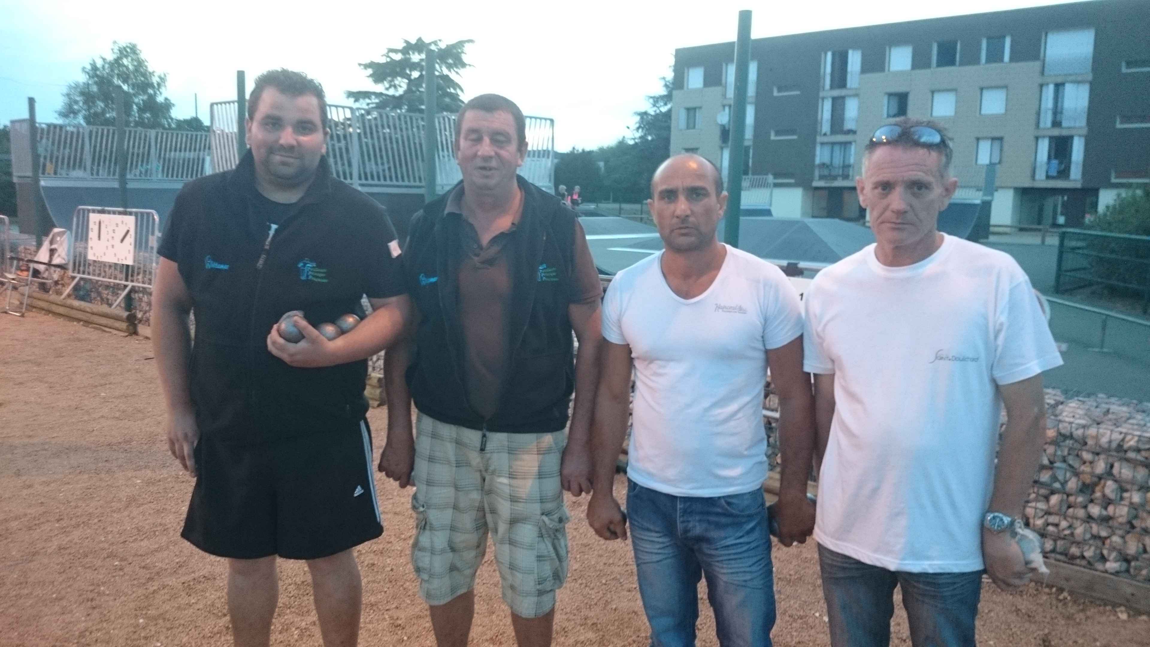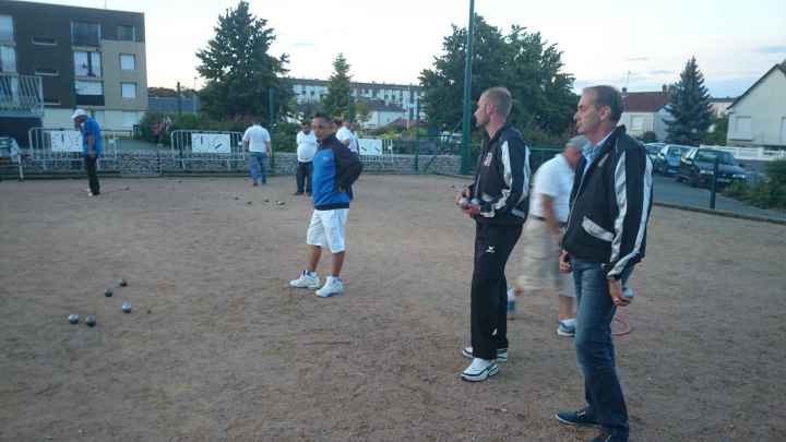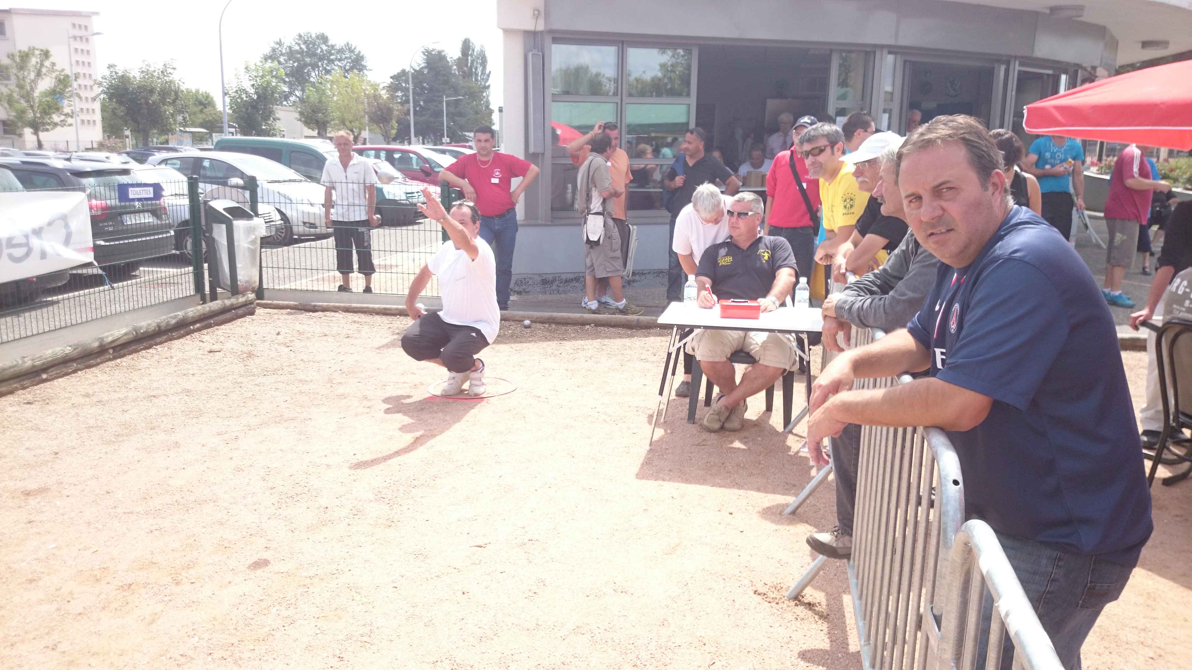 Franc succès de notre « régional » ! 118 doublettes, 5 de plus que l’année dernière et beaucoup de participants de la ligue du Centre, de nos voisins de la Nièvre, de l’Allier et même une équipe de la région parisienne (DOLO-MAIGA), qui, entre parenthèses, a battu d’entrée de jeu une des équipes favorites à savoir Florent CLAVIER et Sébastien RECEVEUR. Et ces derniers n’étaient pas les seuls à chuter à la 1ère puisque Moïse STEINBACH le vainqueur 2013 associé à ZAGO Sébastien, tombait aussi face à la très bonne équipe de la Nièvre, PAIN Claude-GAUCHE Gilles. PAUL Michel et ZIBI en savent quelquechose puisqu’ils les ont rencontrés à Aubigny jeudi 7 août et qu’ils ont gagné 13/12 après 2 heures de jeu ! Mais revenons au Régional, car un autre favori tombait à la 2ème du général cette fois, REBOTTARO Martiel et ANGIBAUD Damien, face à…TRIBOT Didier et PRINET Philippe ! Eh oui, comme quoi tout est possible à la pétanque, il faut y croire ! Les 2 dolchardiens chuteront la partie d’après en barrage…13/12 ! avec des regrets ? La compétition restait donc ouverte, MORGADO associé à CORSELLIS, SIMON Sébastien et TOURNY Fred, ROSINTHAL Thierry et HELFRID David, étaient toujours en course. Mais au stade des 1/4 de finale ne restaient plus que 2 équipes du Cher, 3 équipes de la Nièvre, MORGADO, DARRAZI (son ancien tireur) et ROSINTHAL.