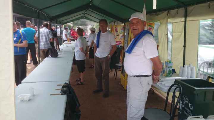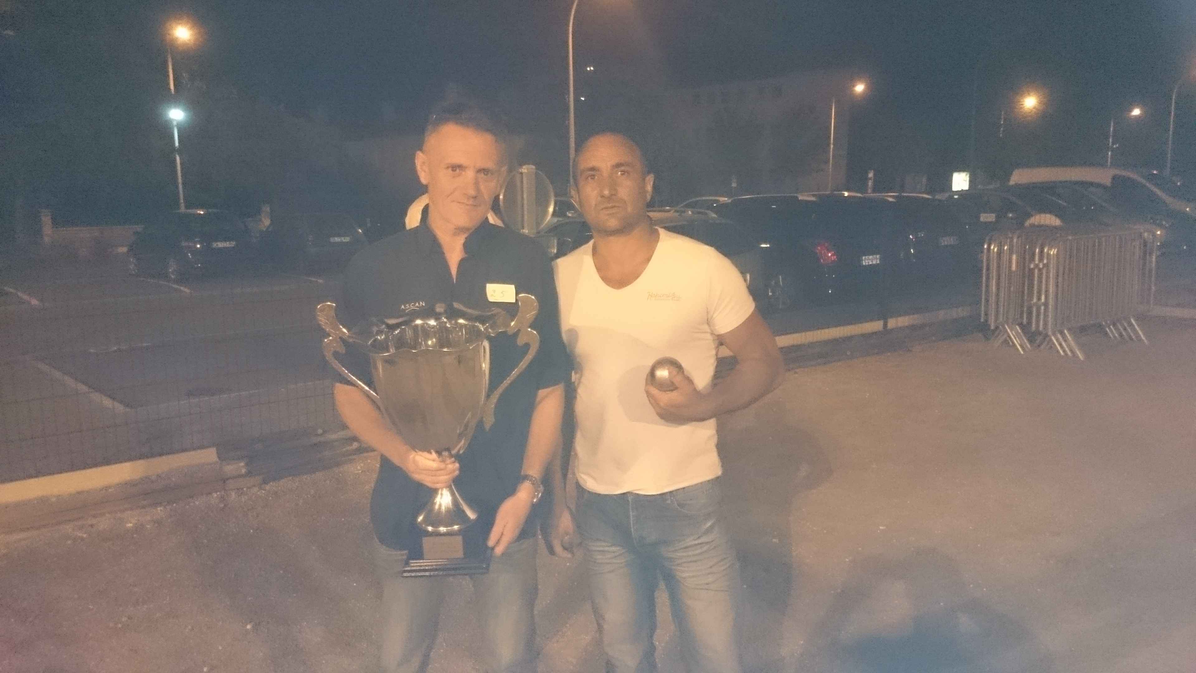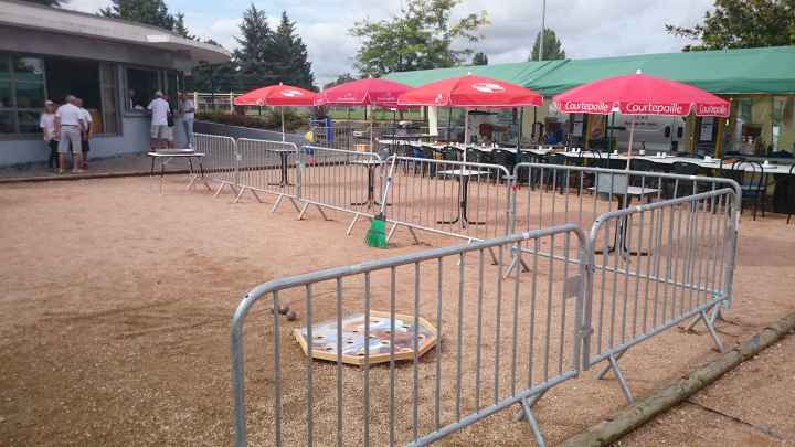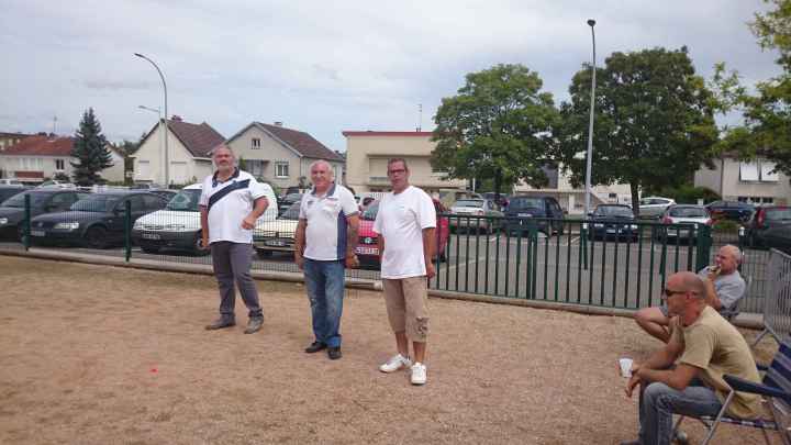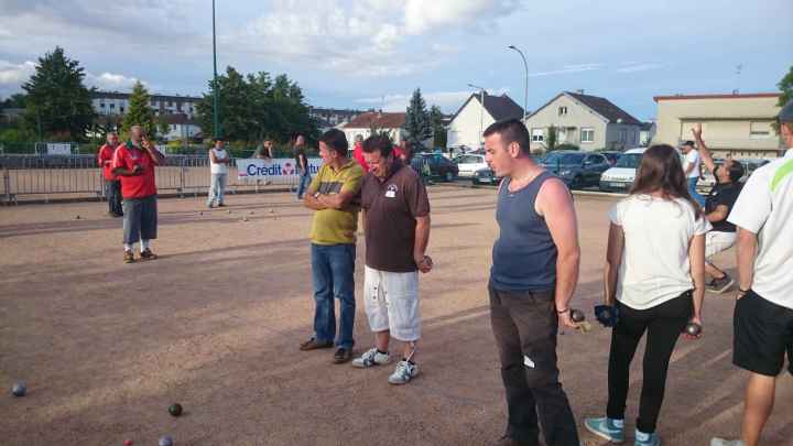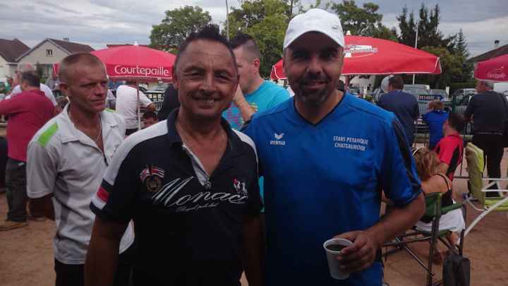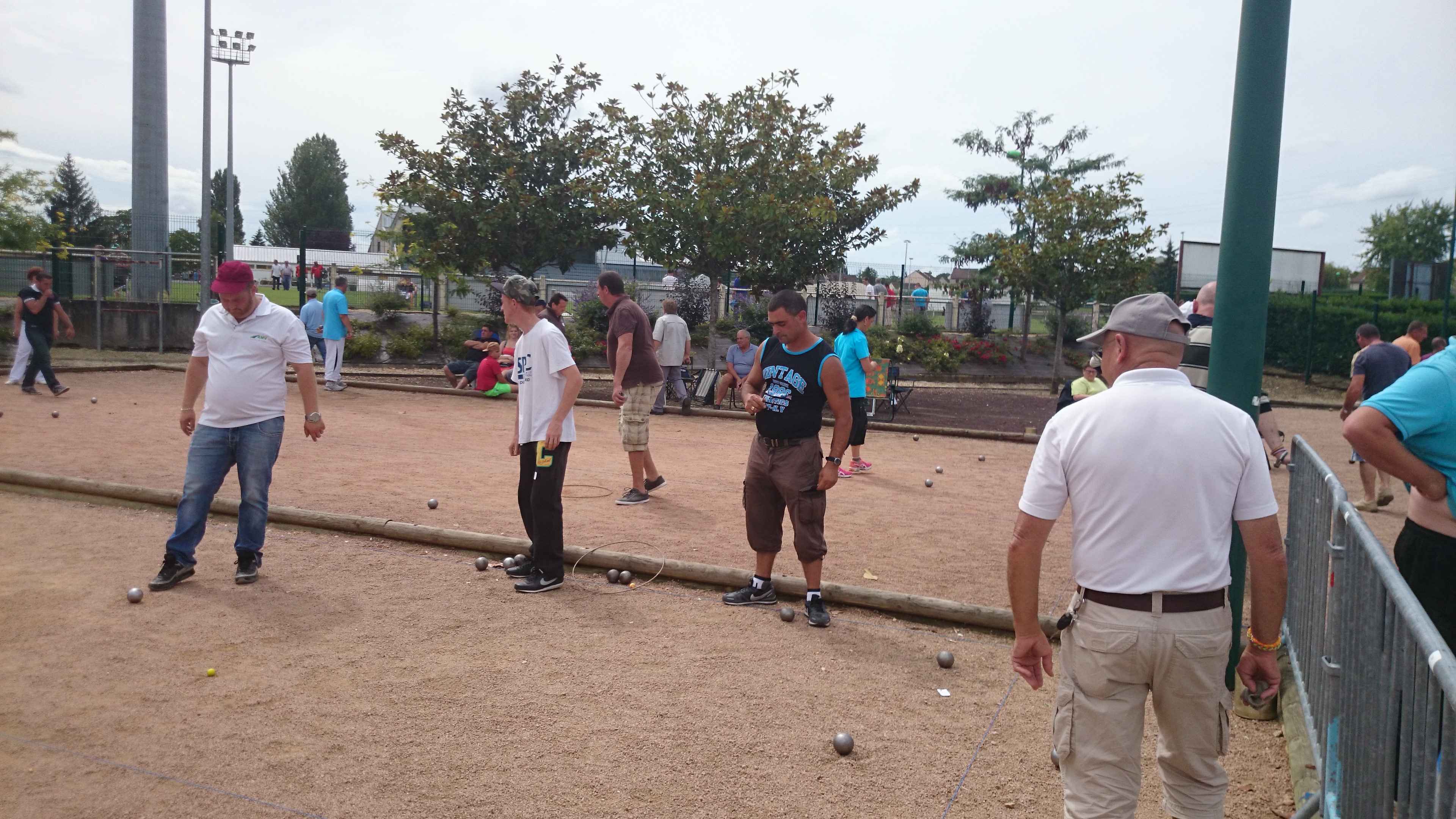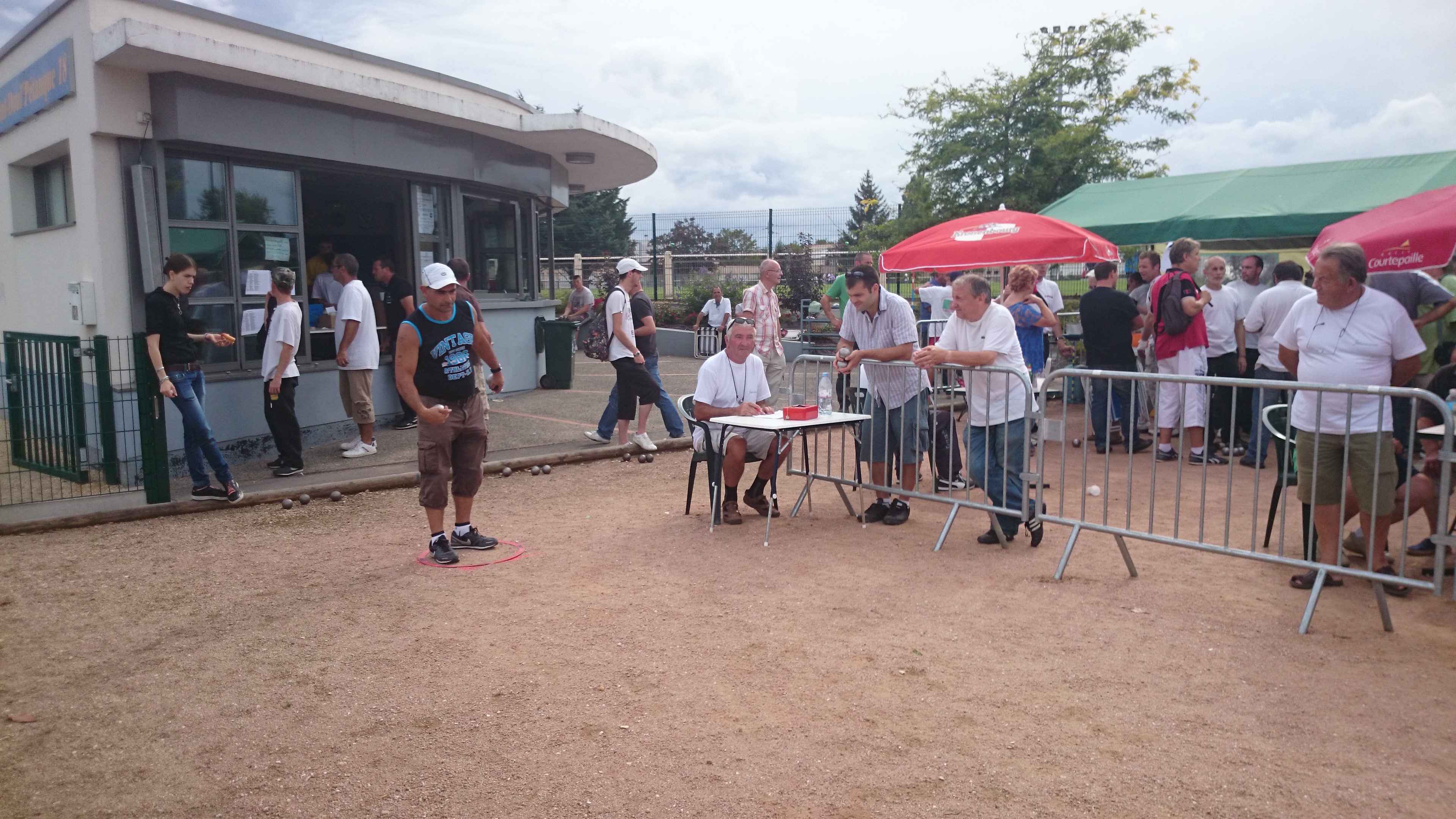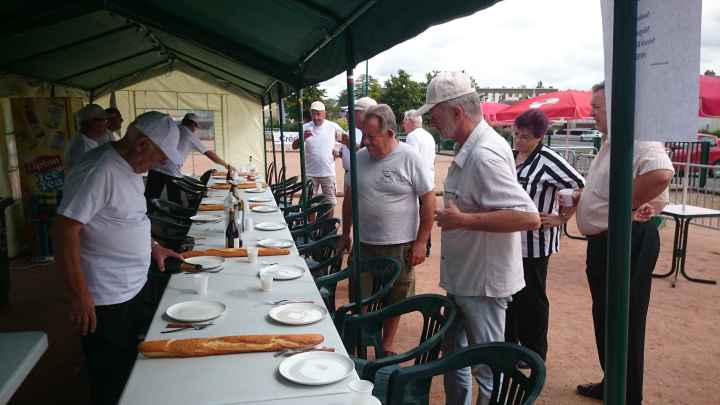 Franc succès de notre « régional » ! 118 doublettes, 5 de plus que l’année dernière et beaucoup de participants de la ligue du Centre, de nos voisins de la Nièvre, de l’Allier et même une équipe de la région parisienne (DOLO-MAIGA), qui, entre parenthèses, a battu d’entrée de jeu une des équipes favorites à savoir Florent CLAVIER et Sébastien RECEVEUR. Et ces derniers n’étaient pas les seuls à chuter à la 1ère puisque Moïse STEINBACH le vainqueur 2013 associé à ZAGO Sébastien, tombait aussi face à la très bonne équipe de la Nièvre, PAIN Claude-GAUCHE Gilles. PAUL Michel et ZIBI en savent quelquechose puisqu’ils les ont rencontrés à Aubigny jeudi 7 août et qu’ils ont gagné 13/12 après 2 heures de jeu ! Mais revenons au Régional, car un autre favori tombait à la 2ème du général cette fois, REBOTTARO Martiel et ANGIBAUD Damien, face à…TRIBOT Didier et PRINET Philippe ! Eh oui, comme quoi tout est possible à la pétanque, il faut y croire ! Les 2 dolchardiens chuteront la partie d’après en barrage…13/12 ! avec des regrets ? La compétition restait donc ouverte, MORGADO associé à CORSELLIS, SIMON Sébastien et TOURNY Fred, ROSINTHAL Thierry et HELFRID David, étaient toujours en course. Mais au stade des 1/4 de finale ne restaient plus que 2 équipes du Cher, 3 équipes de la Nièvre, MORGADO, DARRAZI (son ancien tireur) et ROSINTHAL.