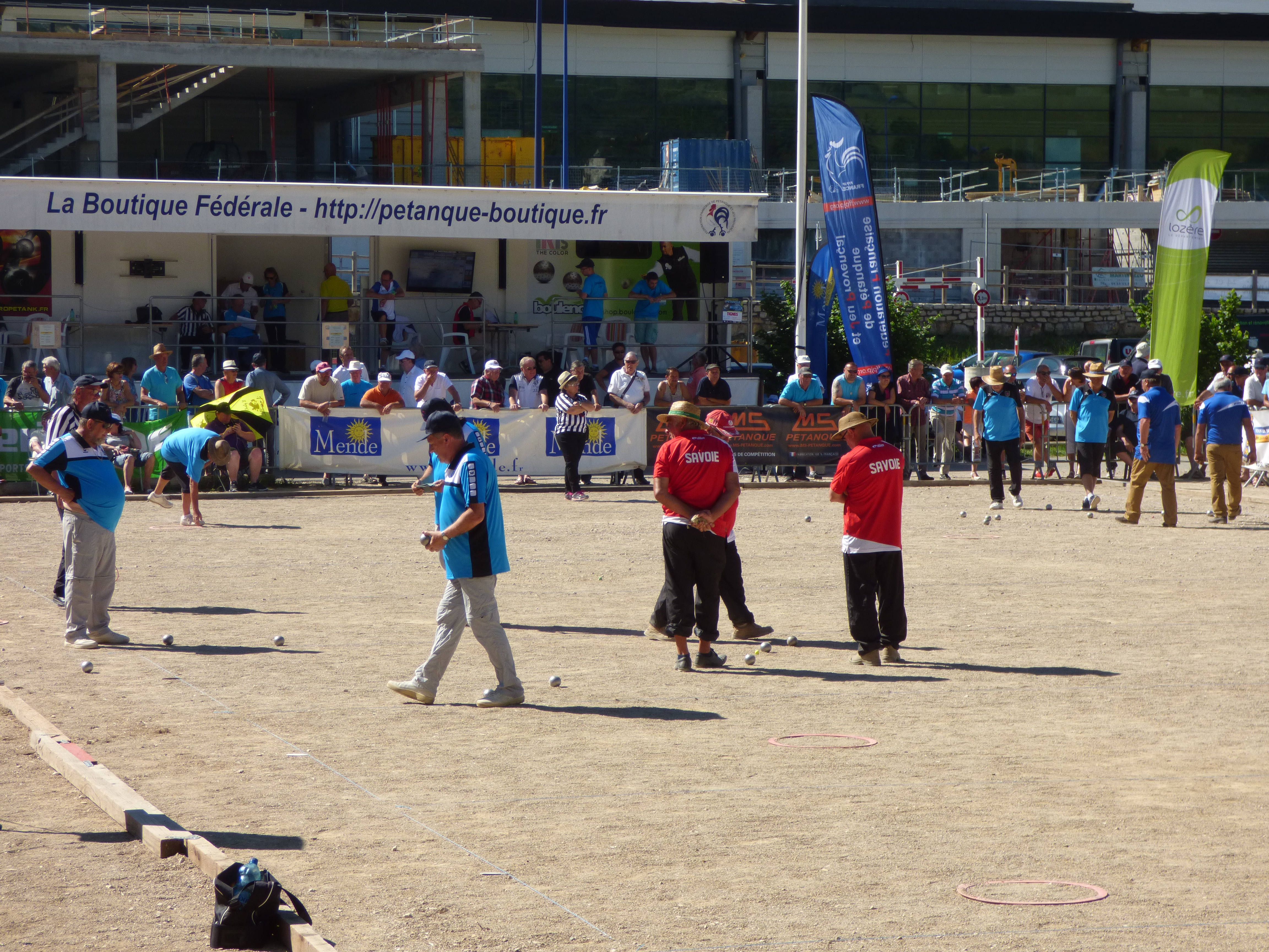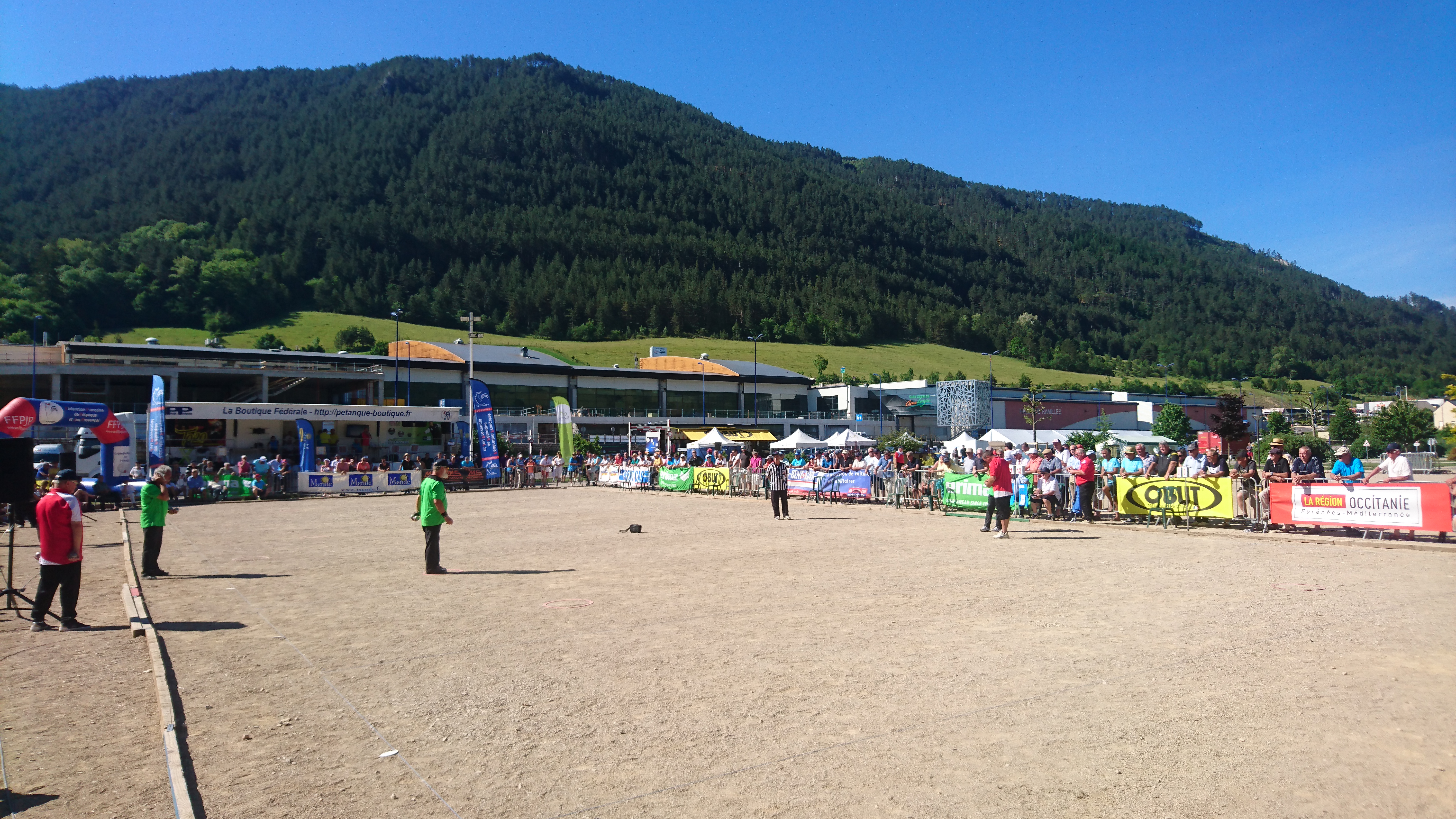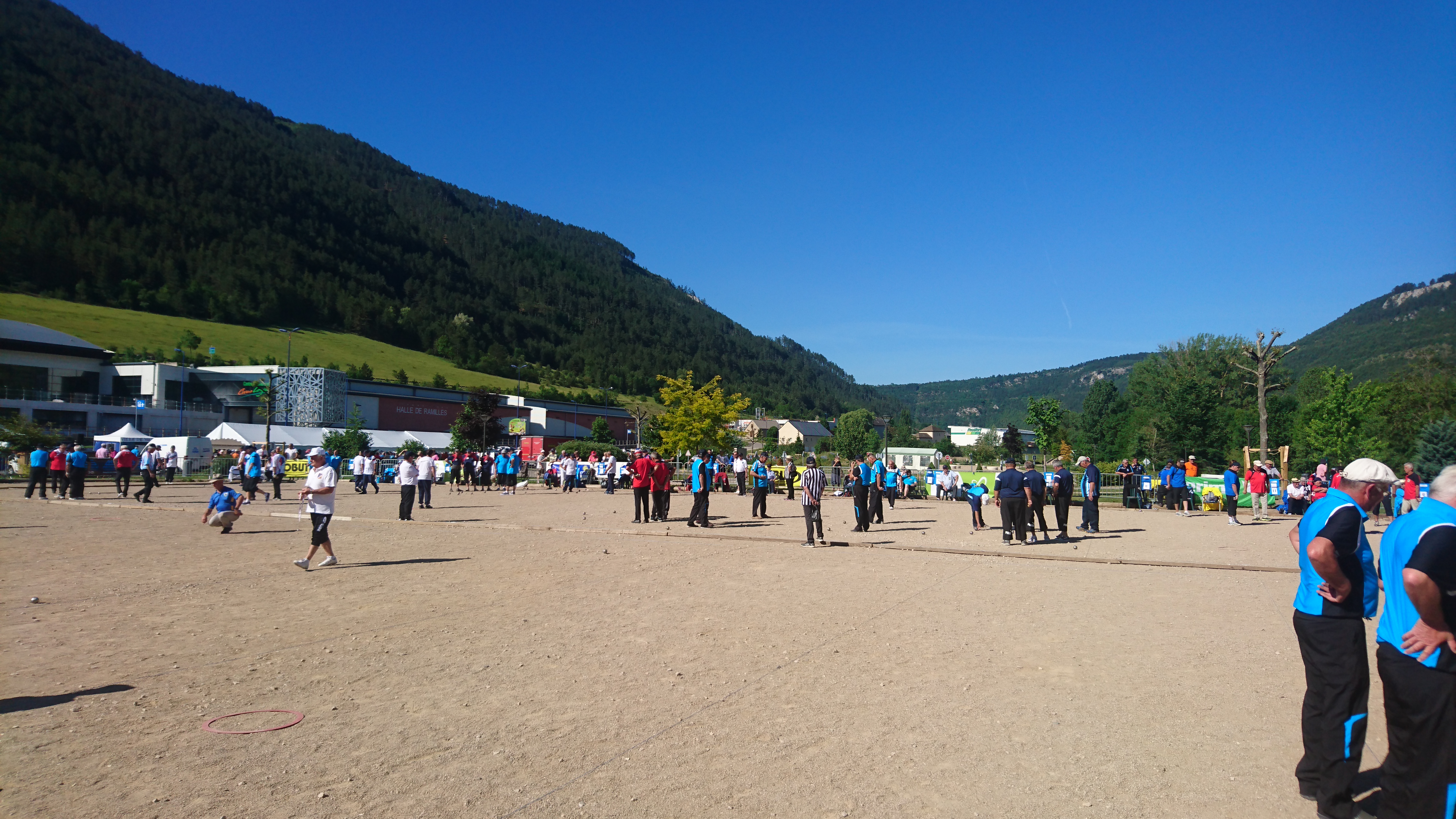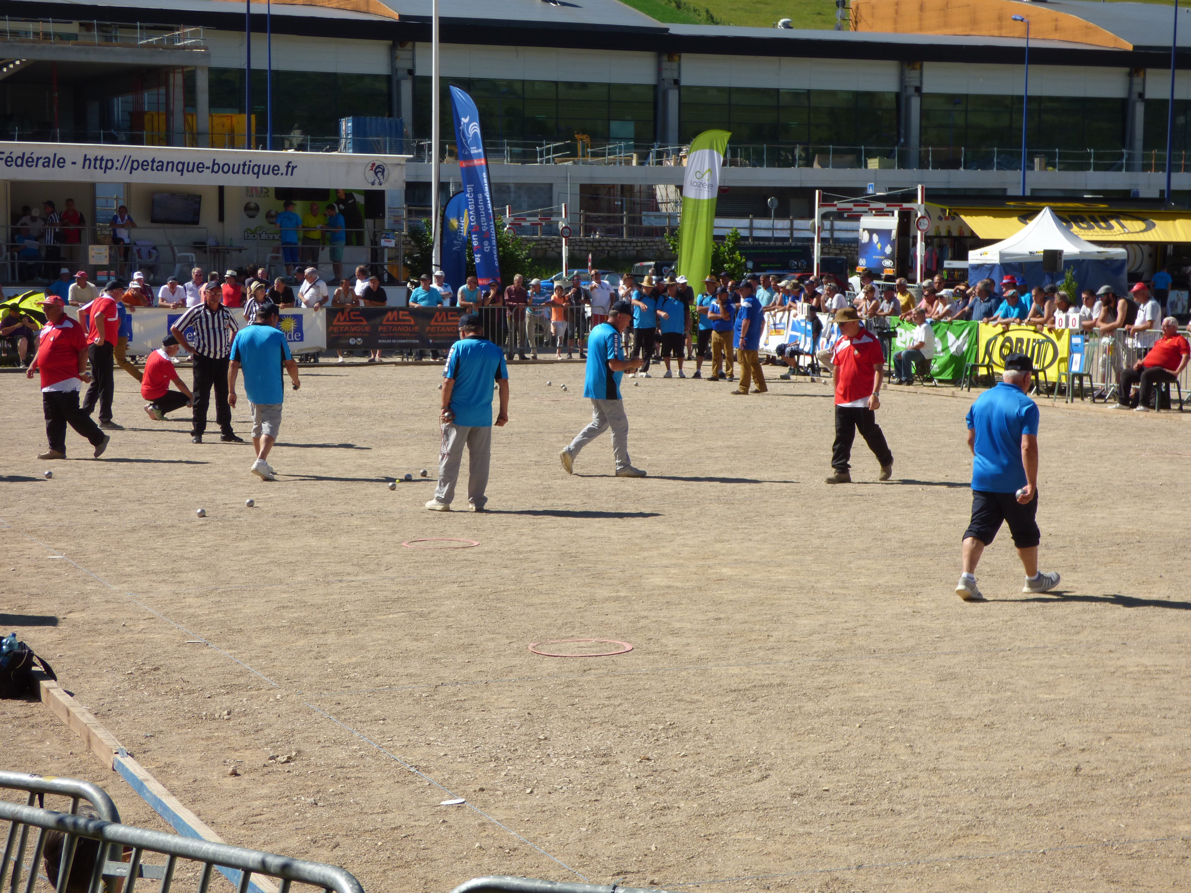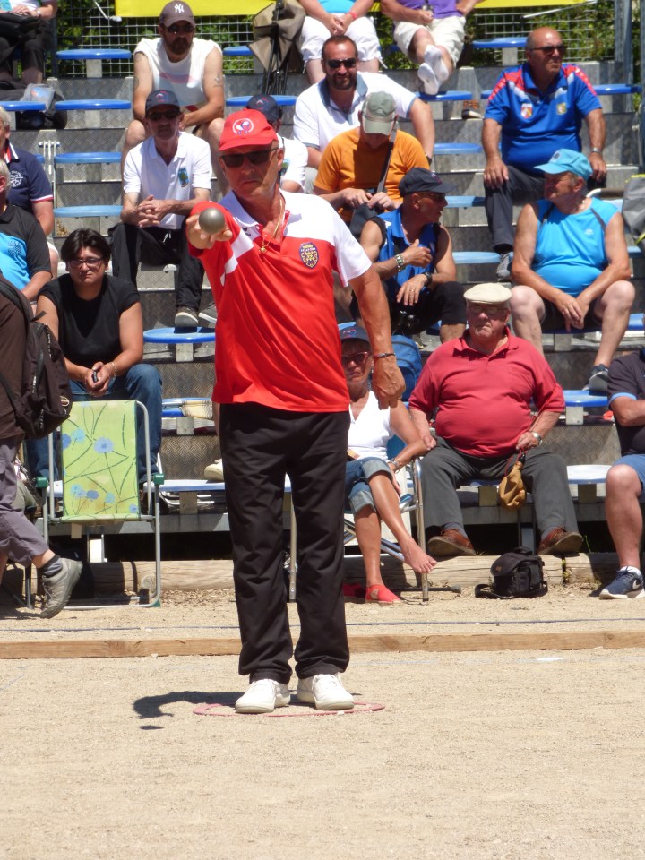 Un peu moins de photos de pétanque cette année, normal on a joué 3 parties au lieu de 9 à CALAIS. Mais on a passé un excellent weekend dans un cadre magnifique et une météo excessivement bonne ! Excellente organisation du Comité de LOZERE, peut-être des tribunes trop petites, mais d’excellents terrains. Bravo aux Héraultais qui ont remporté le Graal, il fallait être solide avec une telle chaleur. En fait ce qui est surprenant, c’est que la fédération ait décidé d’inverser les championnats triplettes « seniors » et « vétérans » ! Avant les anciens jouaient en septembre, et en matière de météo c’était très bien. Maintenant on les fait jouer en plein « cagna » et les jeunes (en majorité) jouent en septembre ! Il y a là matière à réfléchir, et revenir en arrière serait pour une fois une bonne décision !
