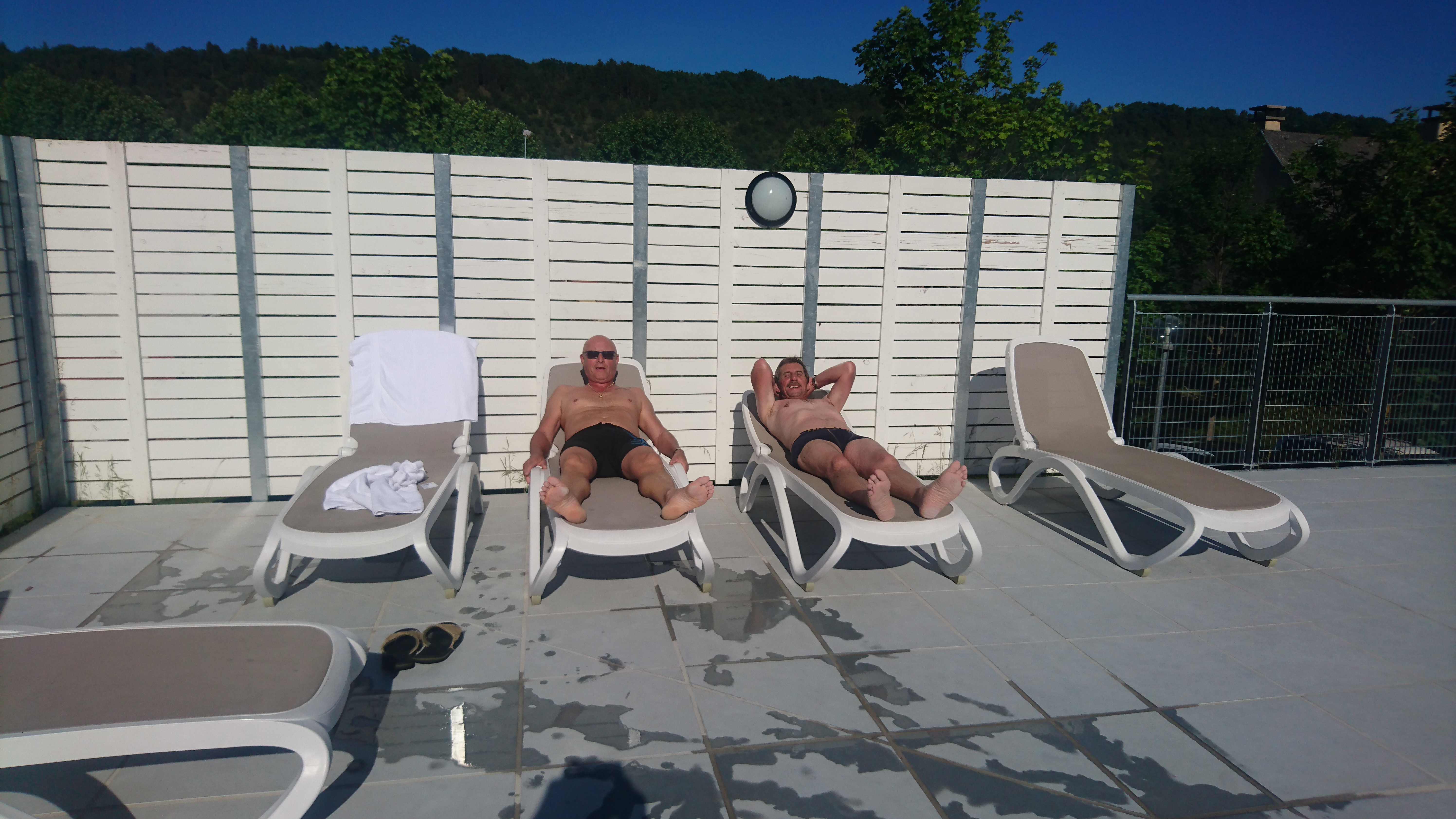 Retour à l’hôtel pour une trempette et une bronzette ! Super, 2 dans la piscine ! Glop !