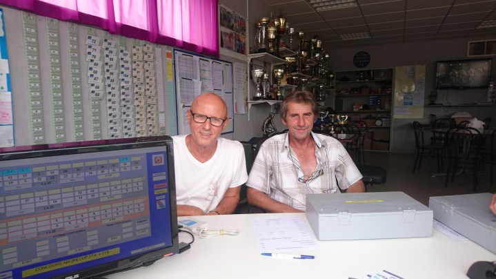 Aux manettes comme d’hab. NANARD et ZIBI au graphique, JEAN-CLAUDE aux tickets, et l’Italien à la baguette à la buvette excellemment entouré de KIKI, ISA, NADINE et sa petite fille, MALKO, et, venu nous rejoindre et rompre la quiétude qui régnait parmi nous, l’inénarrable « WAOUFF dit FEG« , notre Président, la compétition était alors fort avancée ! LOL ! (j’ai troqué ma plume pour une serpette !). Merci à tout ce beau monde.