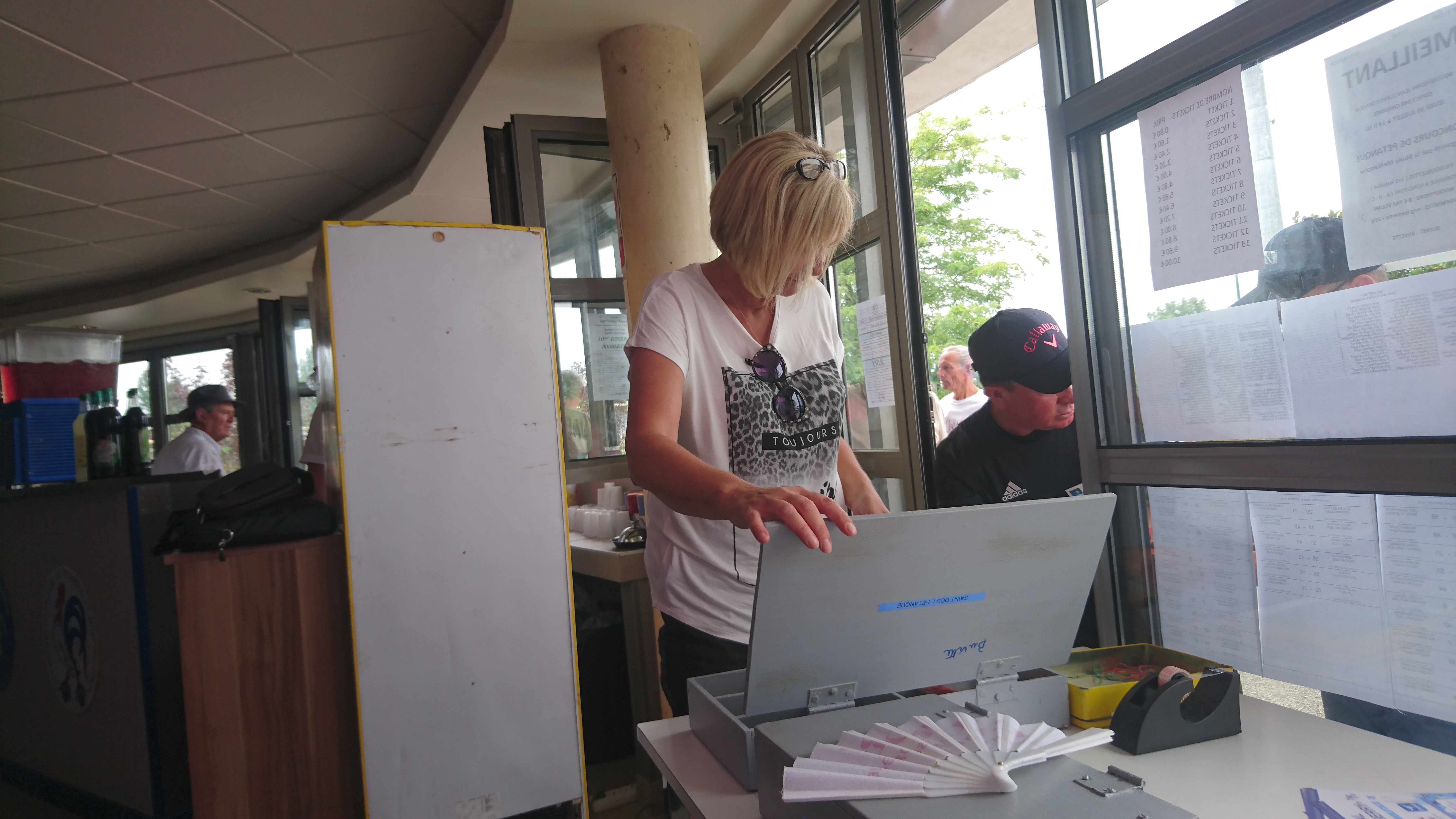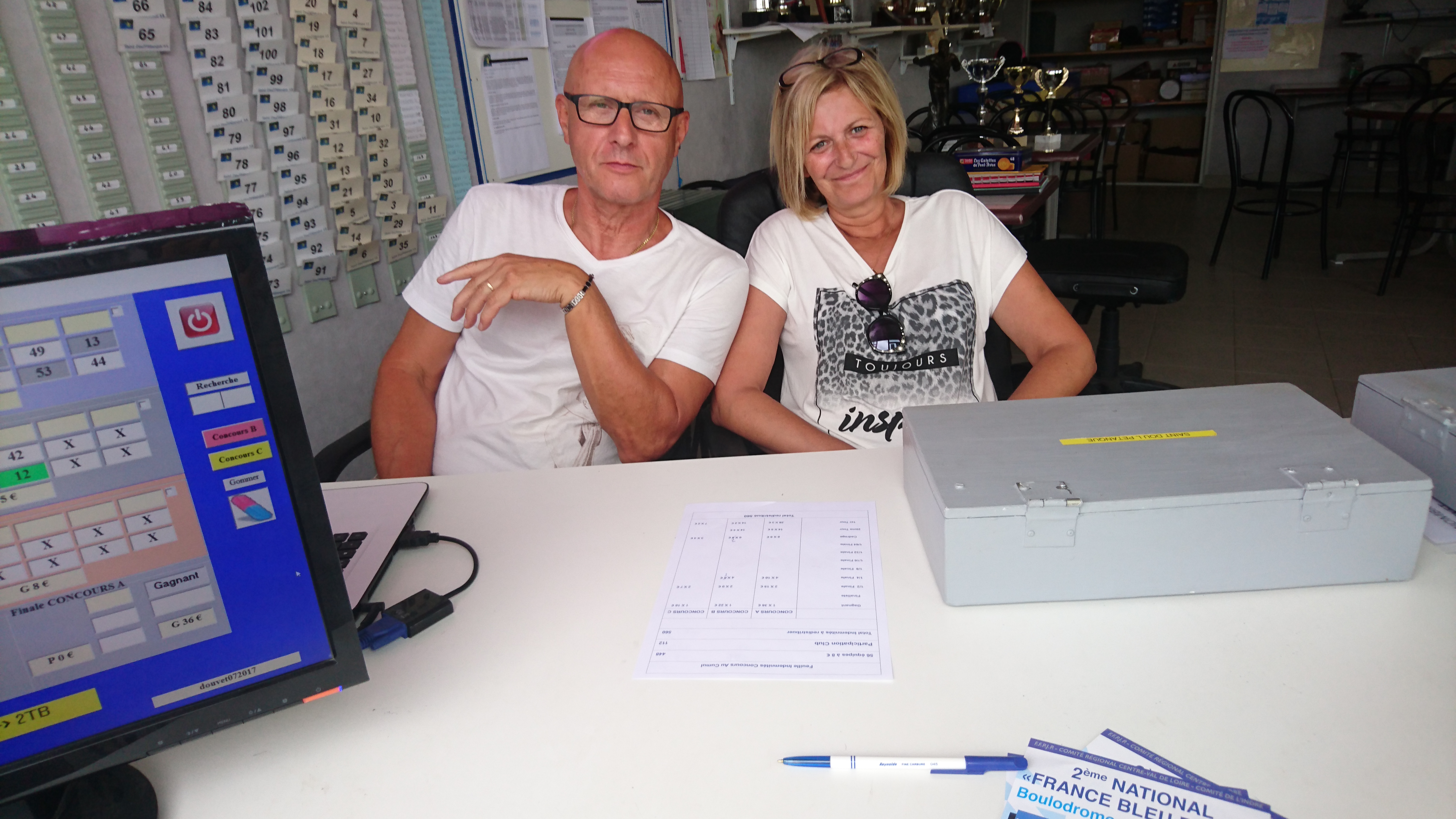 Aux manettes comme d’hab. NANARD et ZIBI au graphique, JEAN-CLAUDE aux tickets, et l’Italien à la baguette à la buvette excellemment entouré de KIKI, ISA, NADINE et sa petite fille, MALKO, et, venu nous rejoindre et rompre la quiétude qui régnait parmi nous, l’inénarrable « WAOUFF dit FEG« , notre Président, la compétition était alors fort avancée ! LOL ! (j’ai troqué ma plume pour une serpette !). Merci à tout ce beau monde.