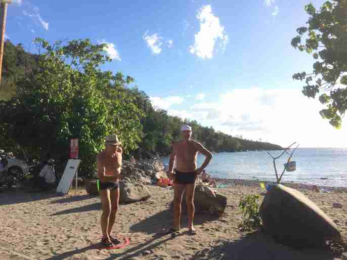 Pendant que l’on se caille les « miches » avec des températures qui vont passer en dessous de zéro dès cette semaine et pour un bon bout de temps paraît-il, nos deux Dolchardiens se prélassent au soleil ! En effet, Bernard (LACOLOMBE) et Bruno (FROT, nouveau licencié) se la coulent douce en Guadeloupe, et ils ont bien de la chance nos lascars ! Bernard m’a même confié qu’ils attendaient 16h00 pour jouer à la pétanque…avant il fait trop chaud ! Enf… ! Et ils ne mangent pas des conserves les pingouins jaune et bleu ! Langouste oblige !!!! re enf…. ! En témoignent les photos qui suivent ci-dessous !