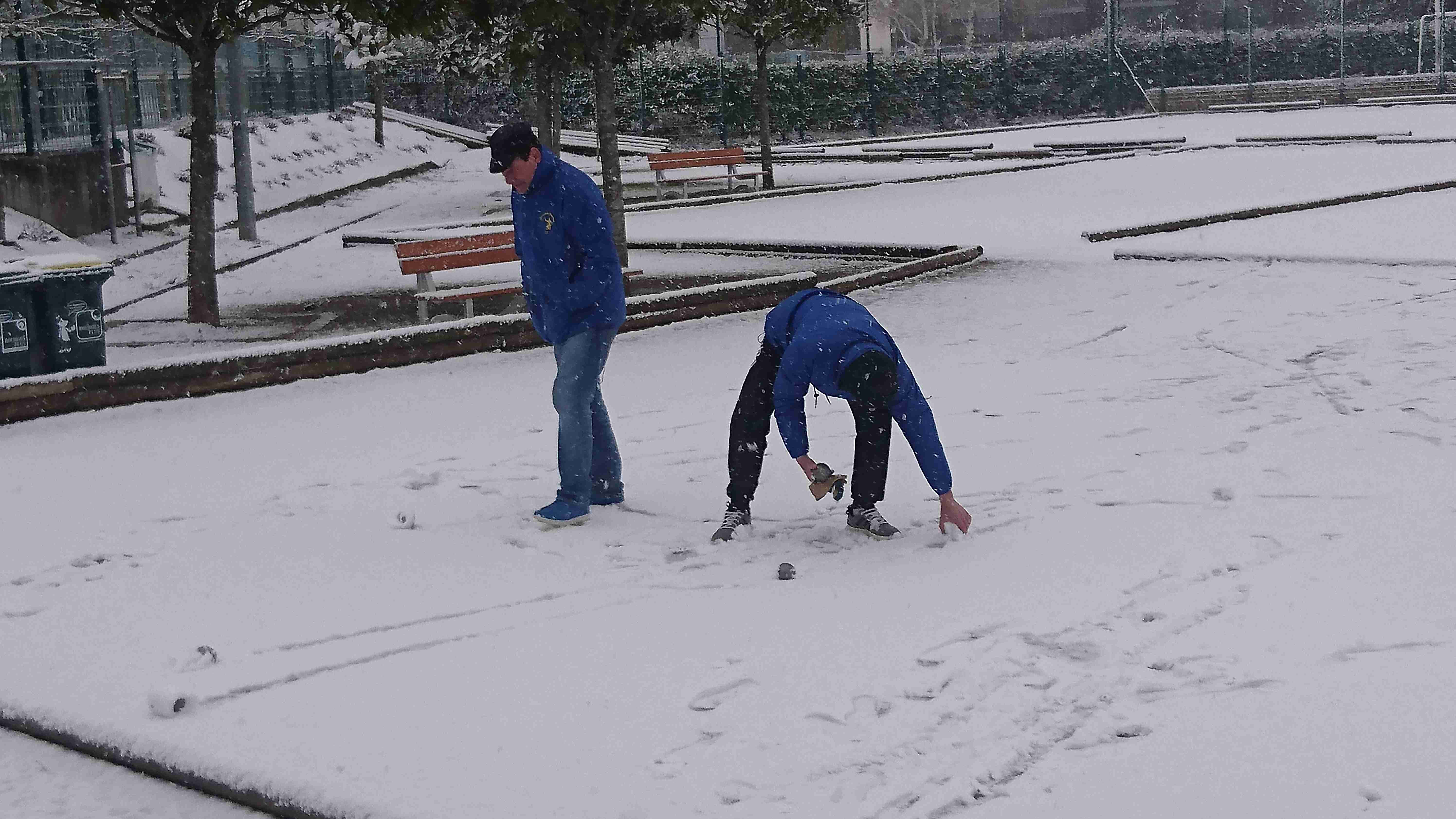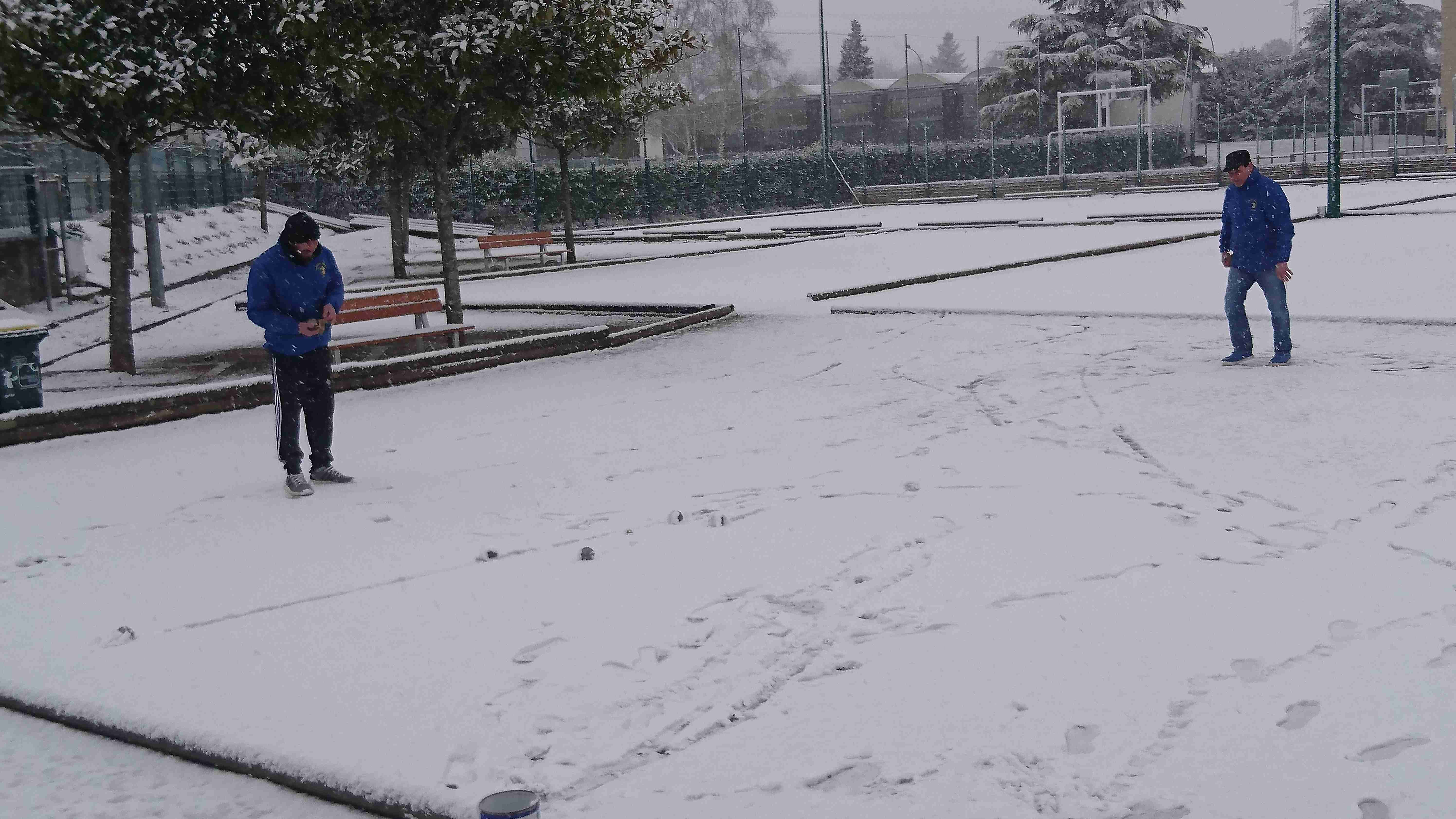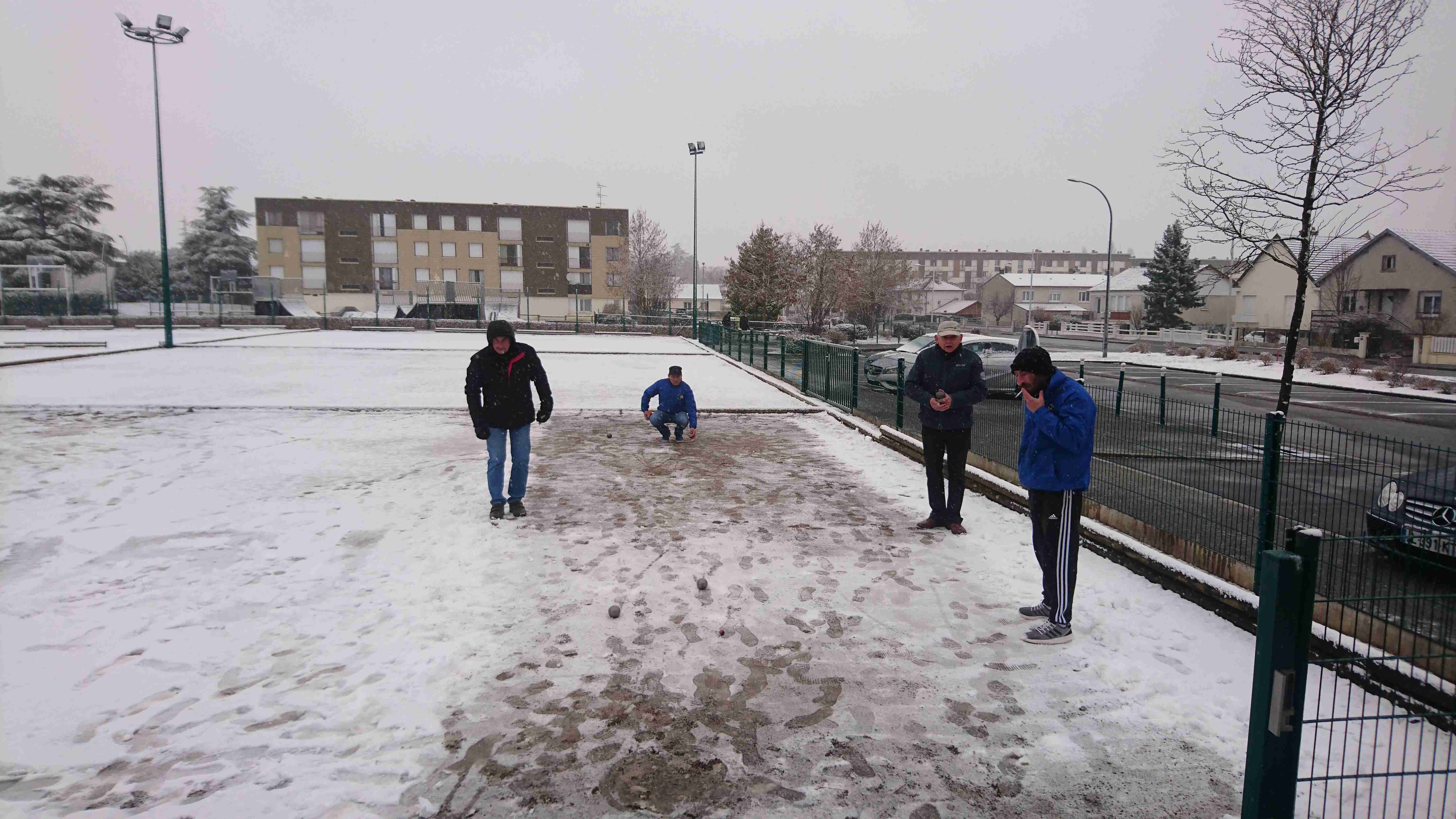 Alors que quelques uns sont assis paisiblement bien au chaud à taper le « carton », les irascibles n’arrêtent pas ! Il y a même Jackito (dit « FLM » d’après les rumeurs) qui leur prépare le terrain…avec l’idée derrière la tête de participer à la « fête » ! Je ne sais pas si c’est vraiment l’envie d’en découdre boules en main, ou si le but n’est pas de sensibiliser et émouvoir Monsieur le Maire pour obtenir un quelconque confort hivernal ! Des fois que quelques passants étonnés de nous voir sur les terrains par ces temps inadéquats lui glissent à l’oreille qu’il y a quelques fêlés sur le boulodrome ! On peut toujours attendre…On a déjà été servi ! Je ne suis pas sûr qu’on puisse trouver dans le CHER les infrastructures dont nous disposons ! Mais bon, on peut toujours essayer !