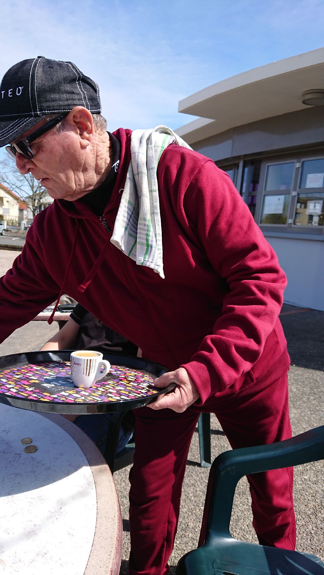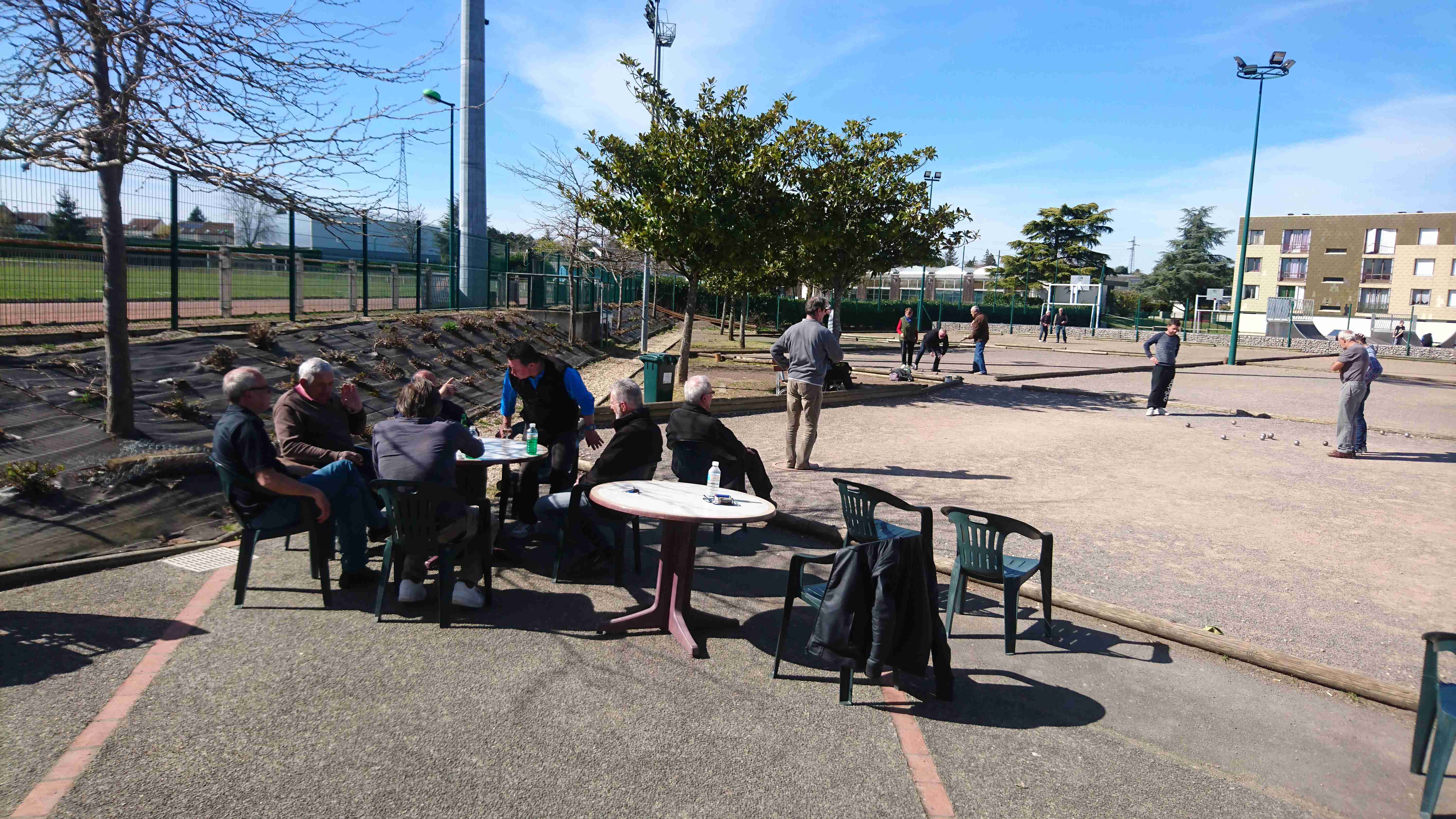 Et les joueurs de pétanque sont comme les bourgeons, ils sortent ! La terrasse est mise et Fernand joue les garçons de café ! Profitons car il parait que cela ne va pas durer, effectivement aujourd’hui samedi 7 avril, jour du Triplettes « promotions » à St Florent, cela se gâte un peu, et demain K way et parapluie de rigueur !