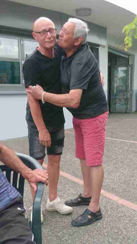 Pour finir une accolade (douteuse dirait Nanard) Zibi-Jackito à l’occasion de mon anniversaire mardi où j’ai quand-même pu arroser l’évènement avec les « vieux », ceux qui ne travaillent pas et qui sont fidèles au RDV.