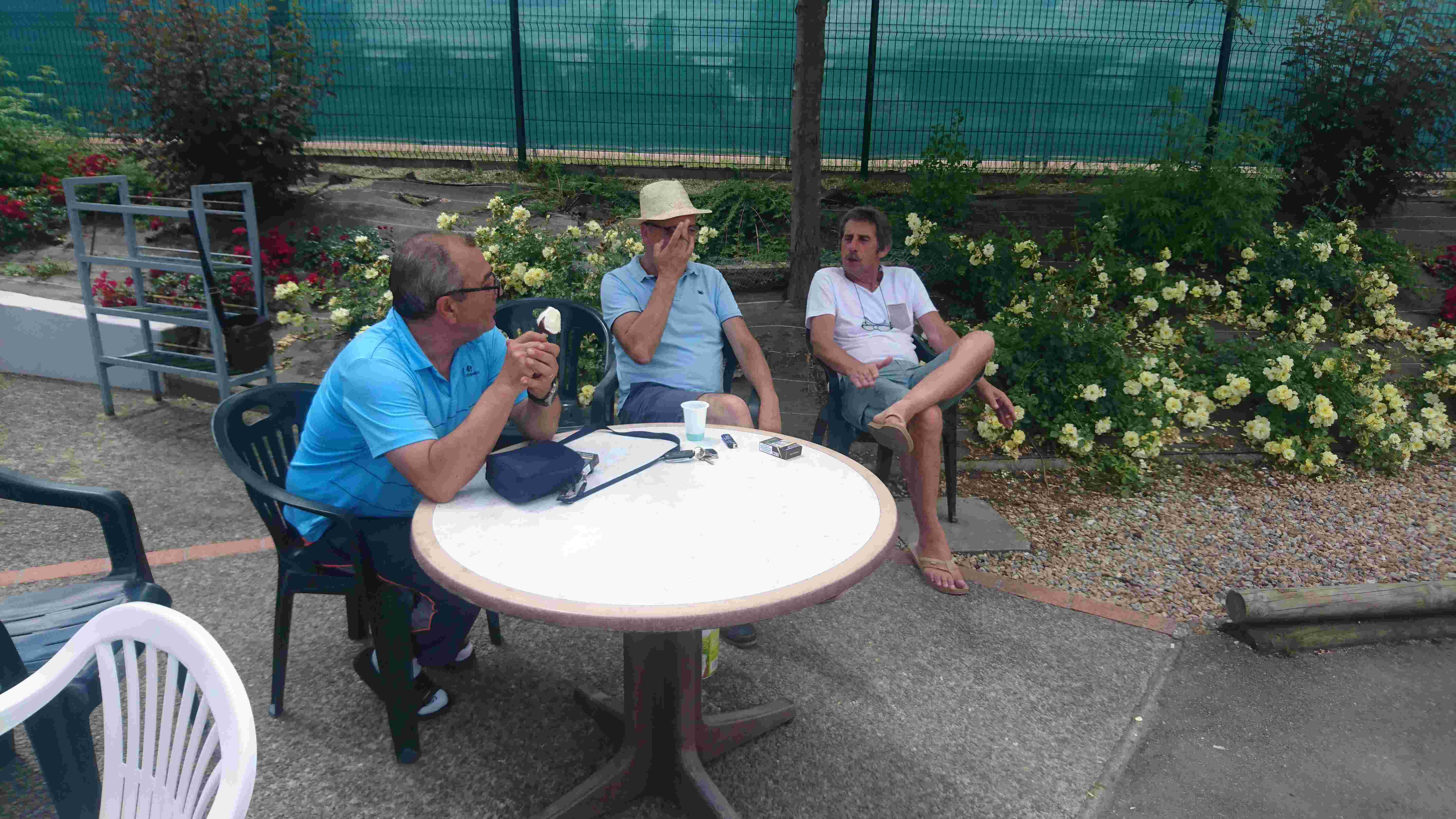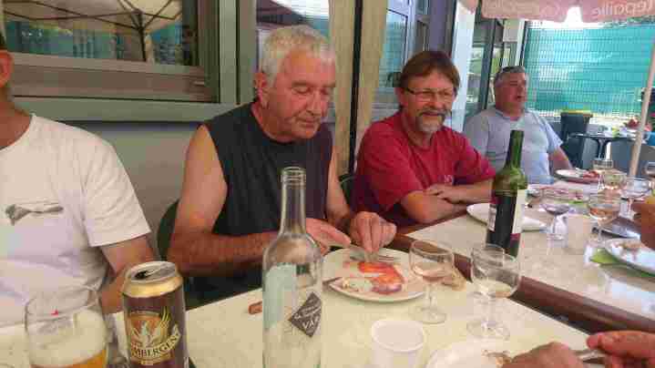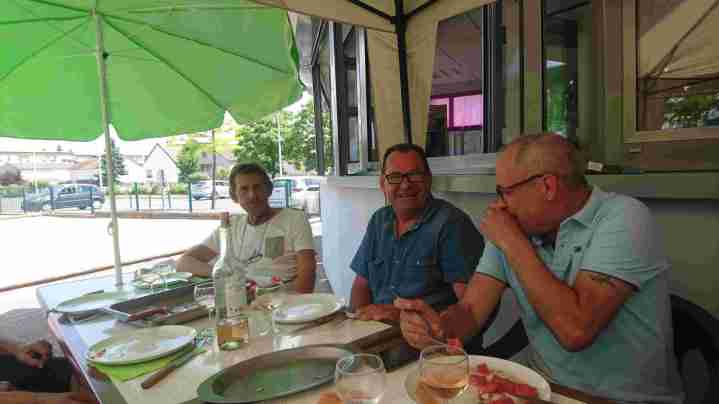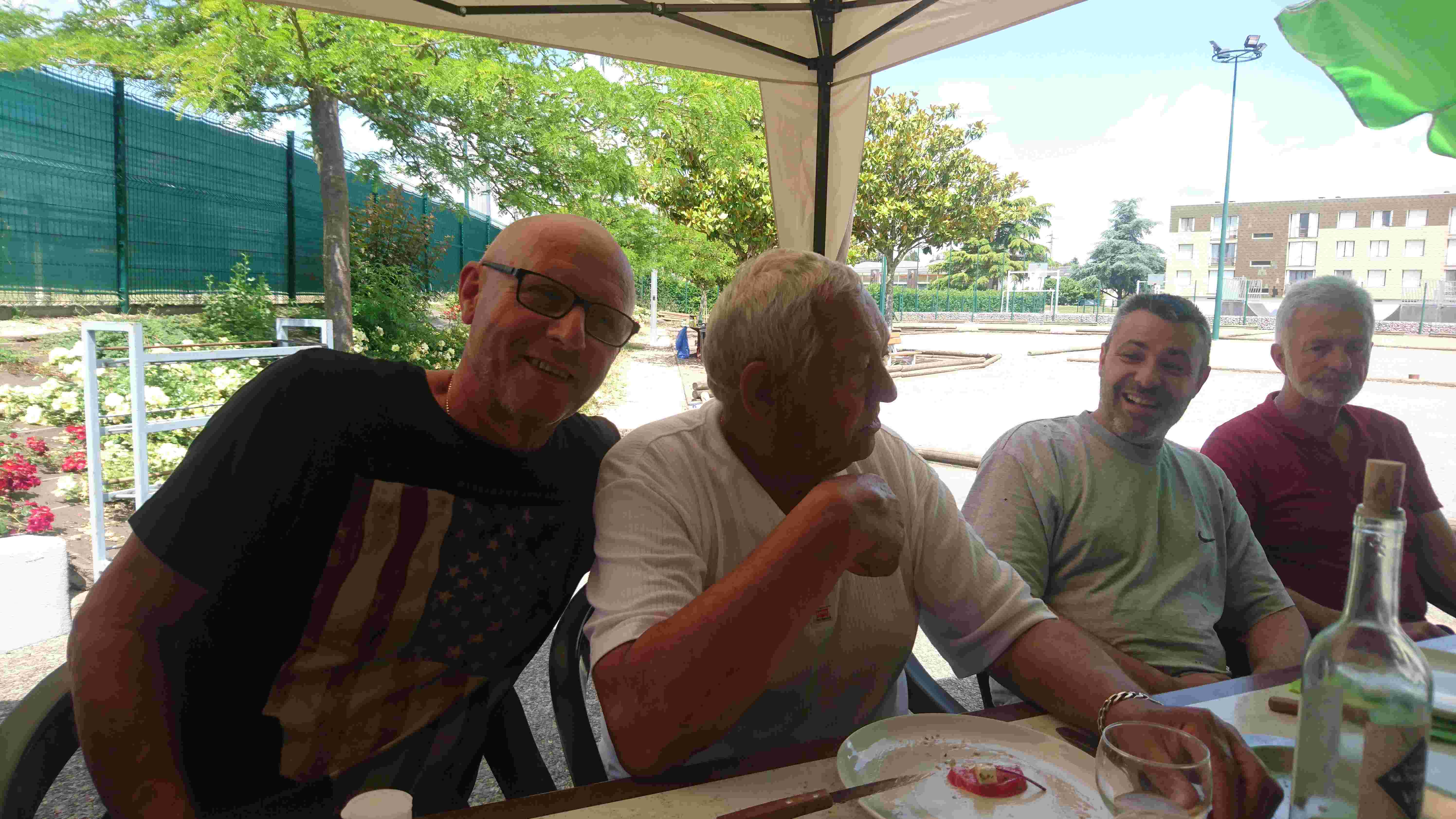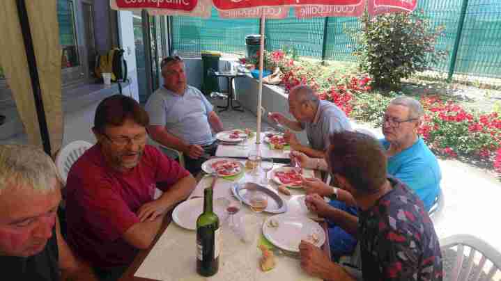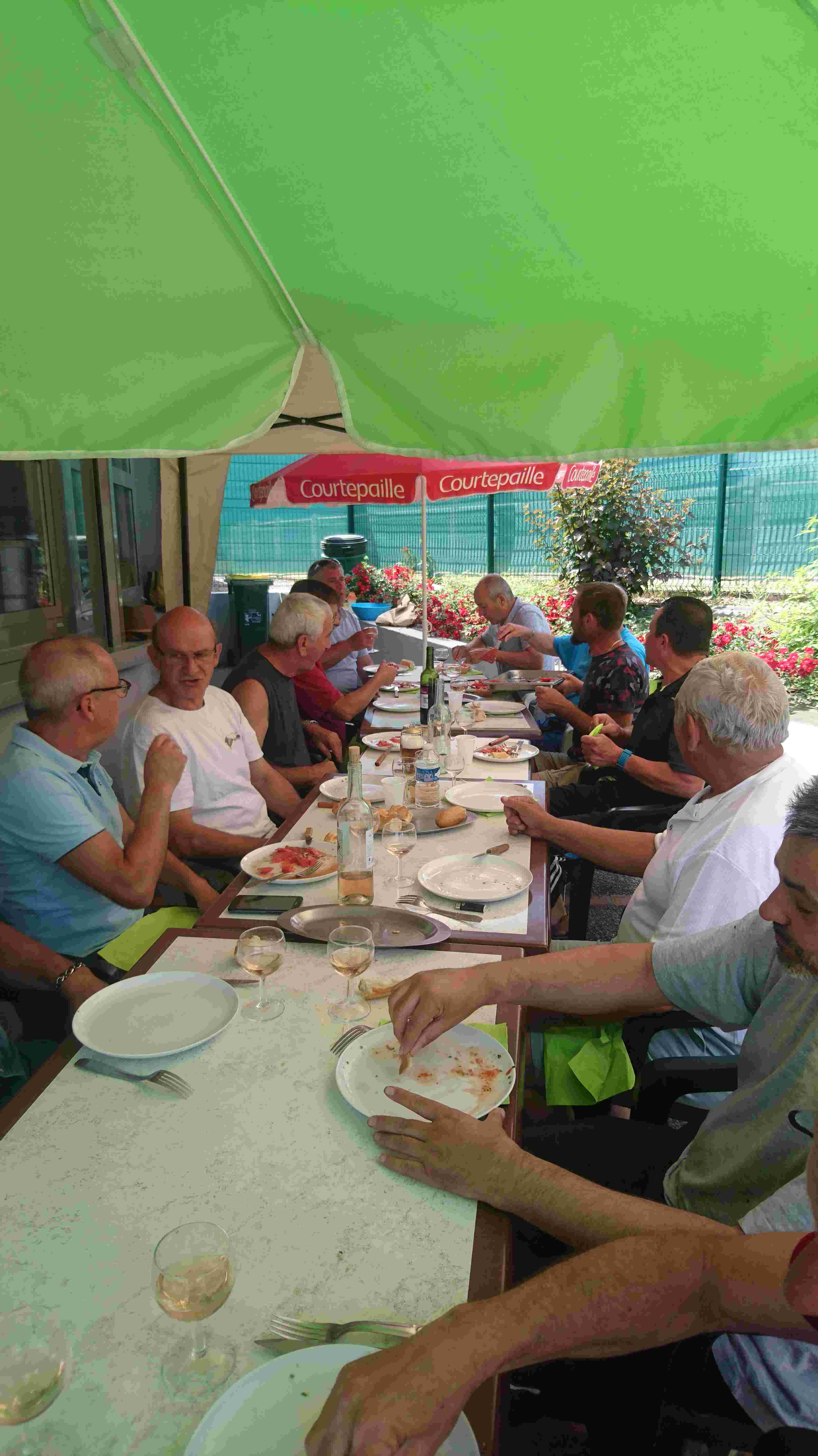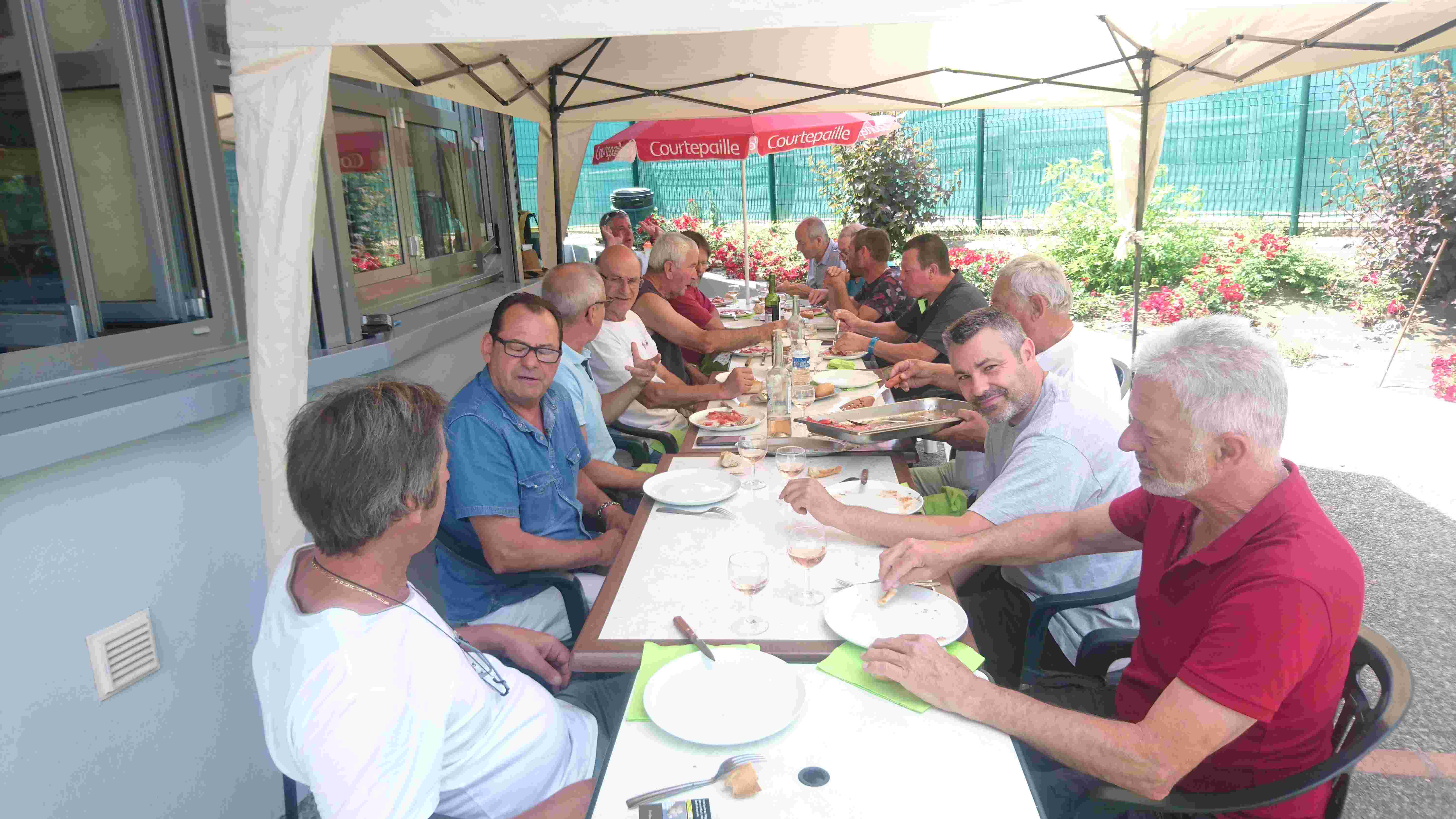 La tablée composée de Jackito, Nanard, Malko, Alain, Tatave, Jo, Zibi, Fernand, « Ptitbouc », « Quintal+ », Fred, Pich, Miché, Léo, Téter et Georges a apprécié ce moment, et une fois, le repas englouti, une petite confrontation entre la « Régionale » vétérans et les moins de 60 ans exceptionnellement coachés par Miché a vu les vieux l’emporter largement (LOL) !