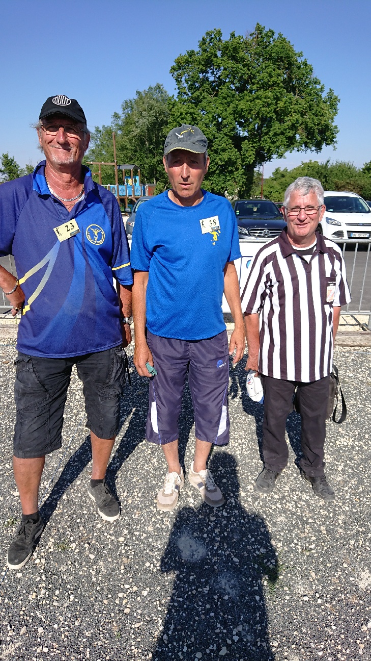 Ont perdu en 1/8ème Seb et Jo. Ont perdu en 1/4 Miché et Jackito. Restait Tatave qui s’est incliné en finale face à DEHOUX de Sancoins. Dommage mais Bravo à tous ! Dernier RDV de championnat, le triplette mixte fin septembre .
