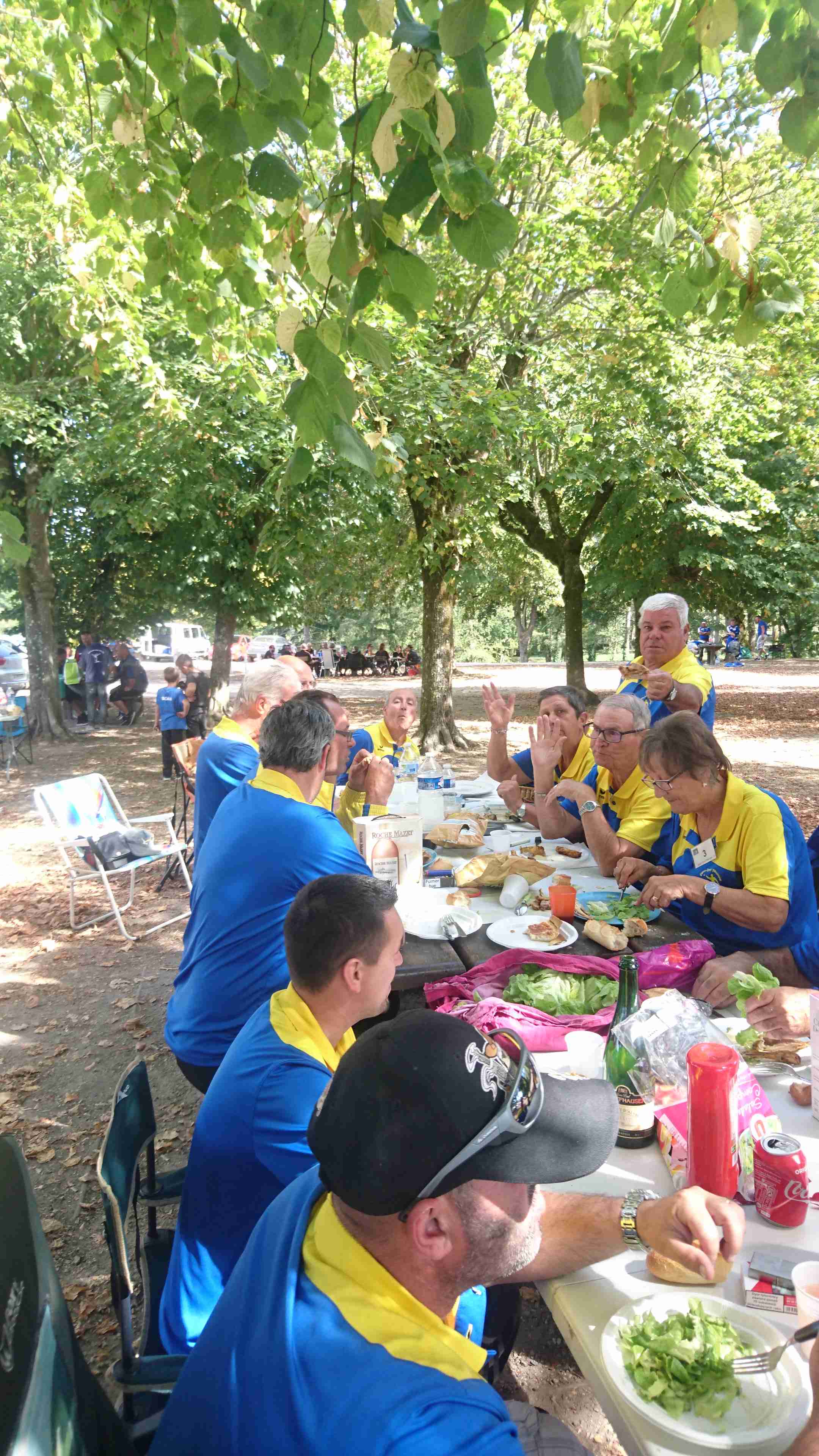 Toutes les divisions ont pique niqué durant cette belle journée de septembre, à Cerbois Claudine a préparé le repas, à Orval c’est Georges qui opère, comme d’habitude et à Argent, chaque division a mis la main à la pâte, prenant en charge une partie du repas. Ainsi la concubine à Fred a préparé les entrées et la salade, excellentes les quiches ! Zibi a acheté les poulets fermiers et préparé la sauce de salade qui apparemment fait un carton auprès de tout le monde ! Nadine et Michel se sont occupés du fromage, dessert et café alors que « Quintal+ » s’est occupé de l’apéro ! Bref bien sympathique tout ça ! Par contre on a du sortir Mathieu du lit, le départ était prévu à 7h00 pétantes, le pingouin est arrivé à 7h15 ! LOL !