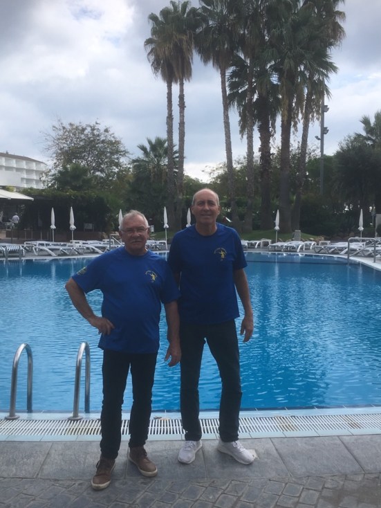 Enfin pour terminer quelques nouvelles de nos Dolchardiens Tatave et « Rouletabille » qui ont pris la direction du grand soleil en Espagne pour participer à ces fameux concours où l’on joue toute la journée pendant 4 jours, ils vont bien, en témoigne la photo ci-dessous. Le problème, c’est qu’il est tombé des cordes pendant toute la durée du concours, qu’ils ont fait 11 parties au lieu de 16, mais qu’ils ont perdu en 1/4 de finale du C (je crois qu’il y a encore D, E, F…). Pas grave, ce sont des vacances et cela permet un dépaysement qui fait du bien de temps en temps.