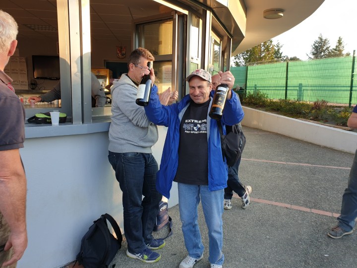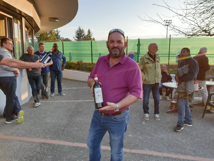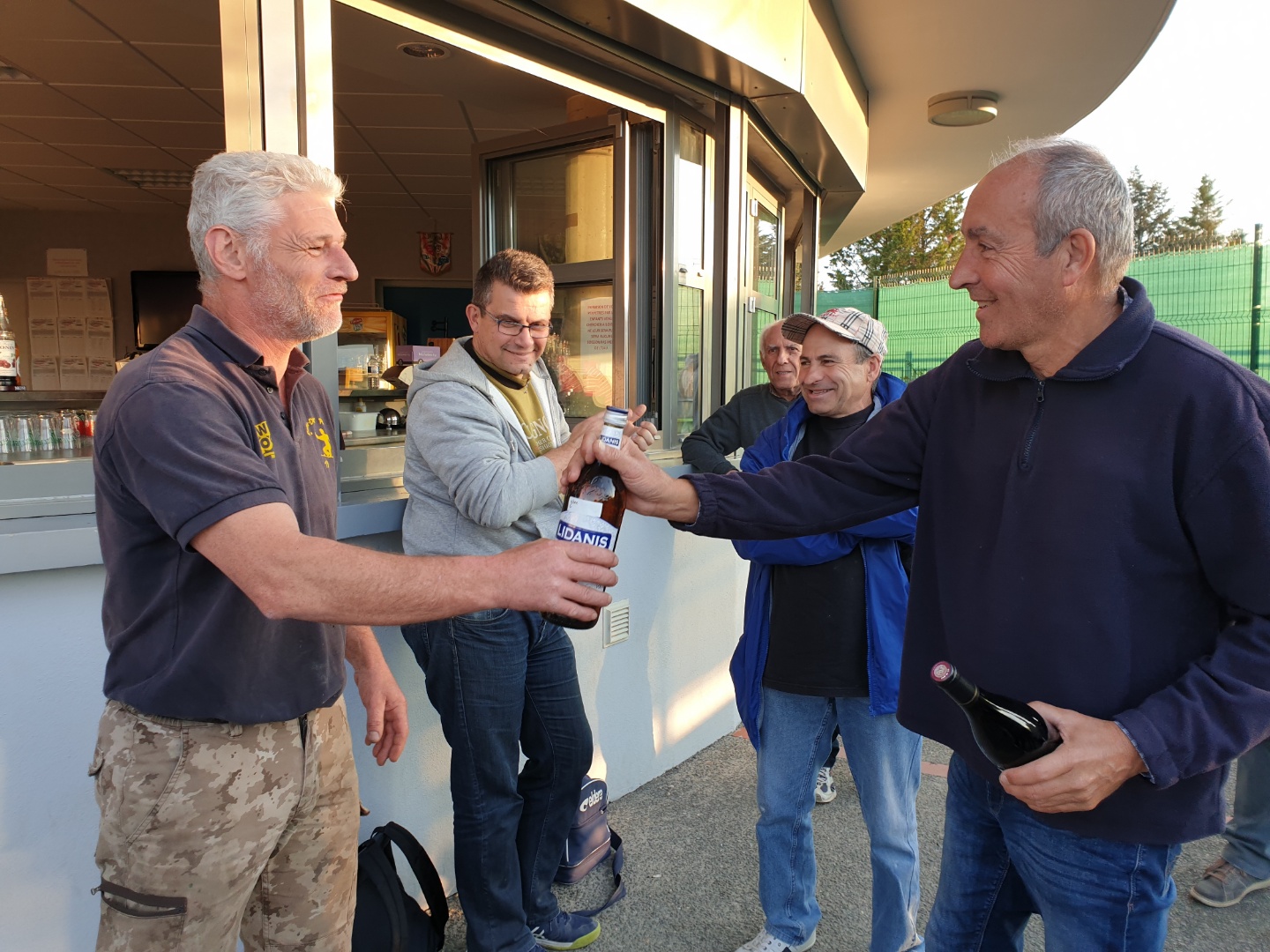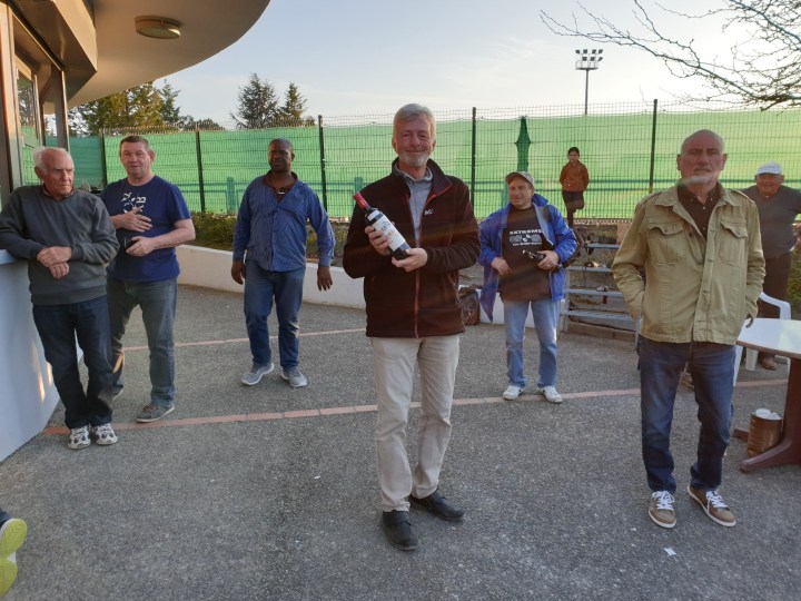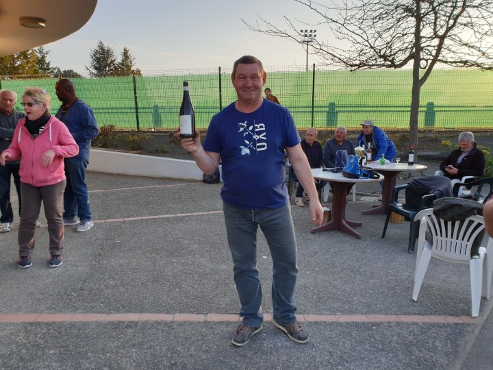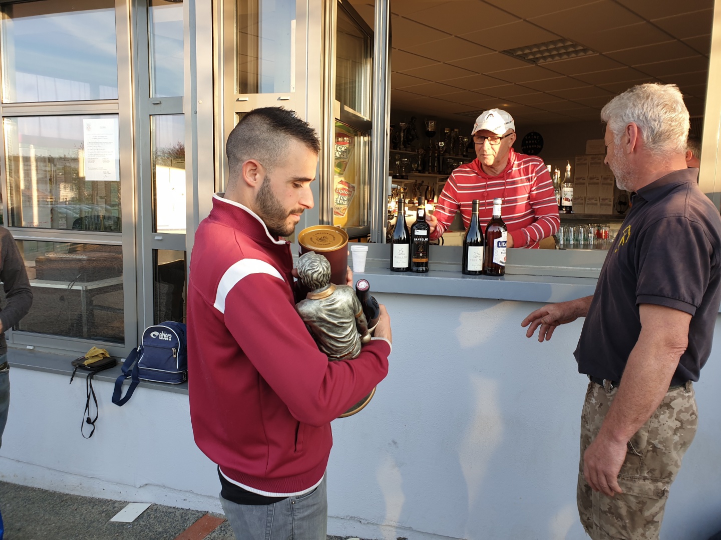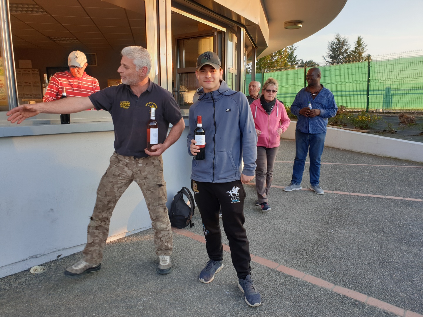 1er Jessy récompensé par notre Président2ème Tatave, qui peine à récupérer son lot ! !3ème Seb qui a gagné le lot de son pays d’origine ! LOL !4ème Jo…à qui la 1ère place était promise s’il n’y avait pas eu Claude pour lui compliquer le chemin ! Une seule défaite sur 13 rencontres !La meilleure féminine Maryse !Claude qui a fait le malheur de Jo !Kéké…le sourire !Jackito…qui n’a pas voulu partager son bien !« Ptitbouc » soudoyé par FEG…vainement !Audry…Alors là pas de pb pour FEG…l’autorité entre en jeu… »Tu boiras un coup dans ton litre mon garçon ! » LOL« Le Percheron »…qui appâte FEG…mais en vain également !Dom…La classe !Miché…la retenue !Isa…2ème féminineJessy : « Ouf, j’ai réussi à garder mes lots ! »