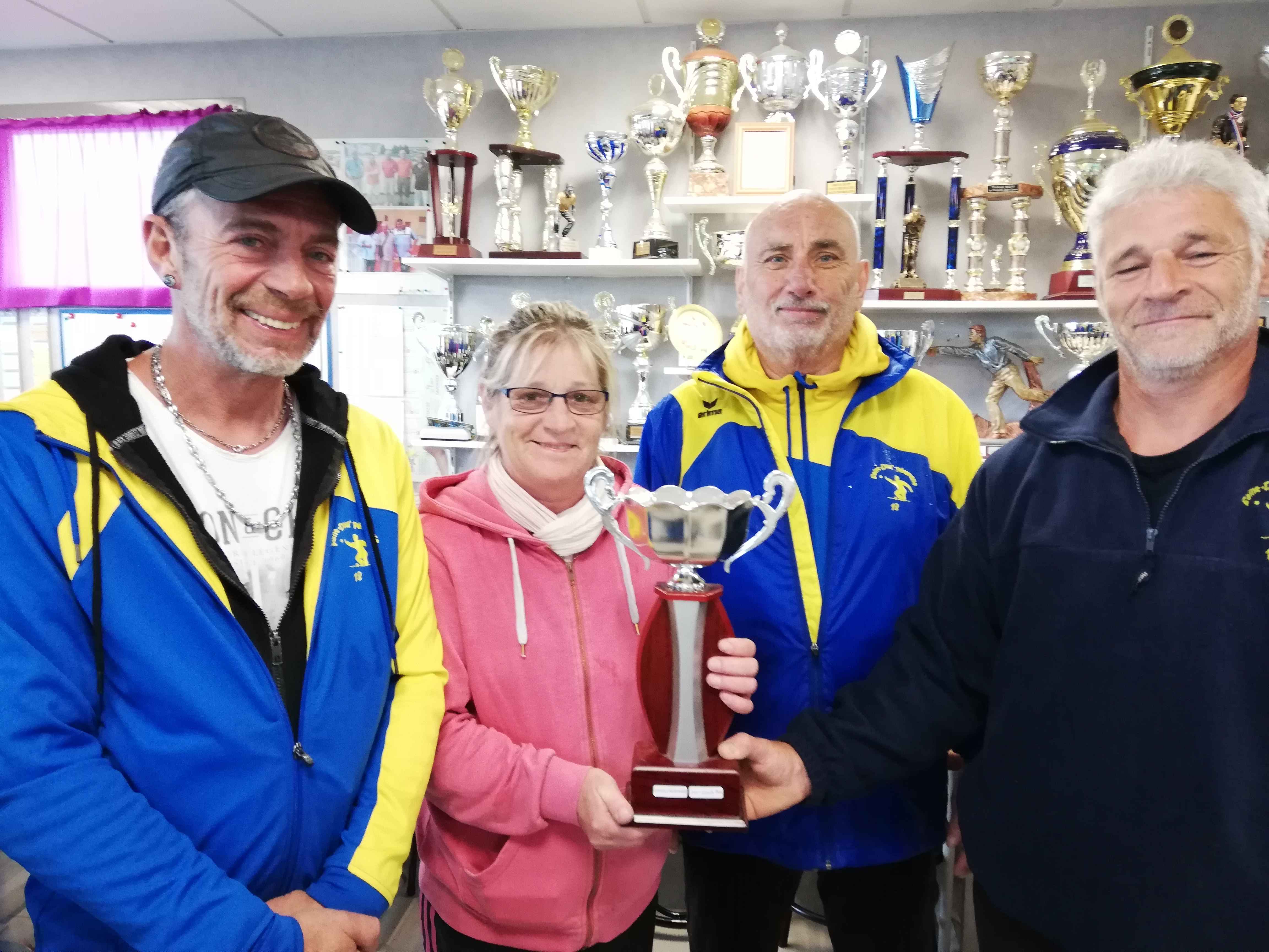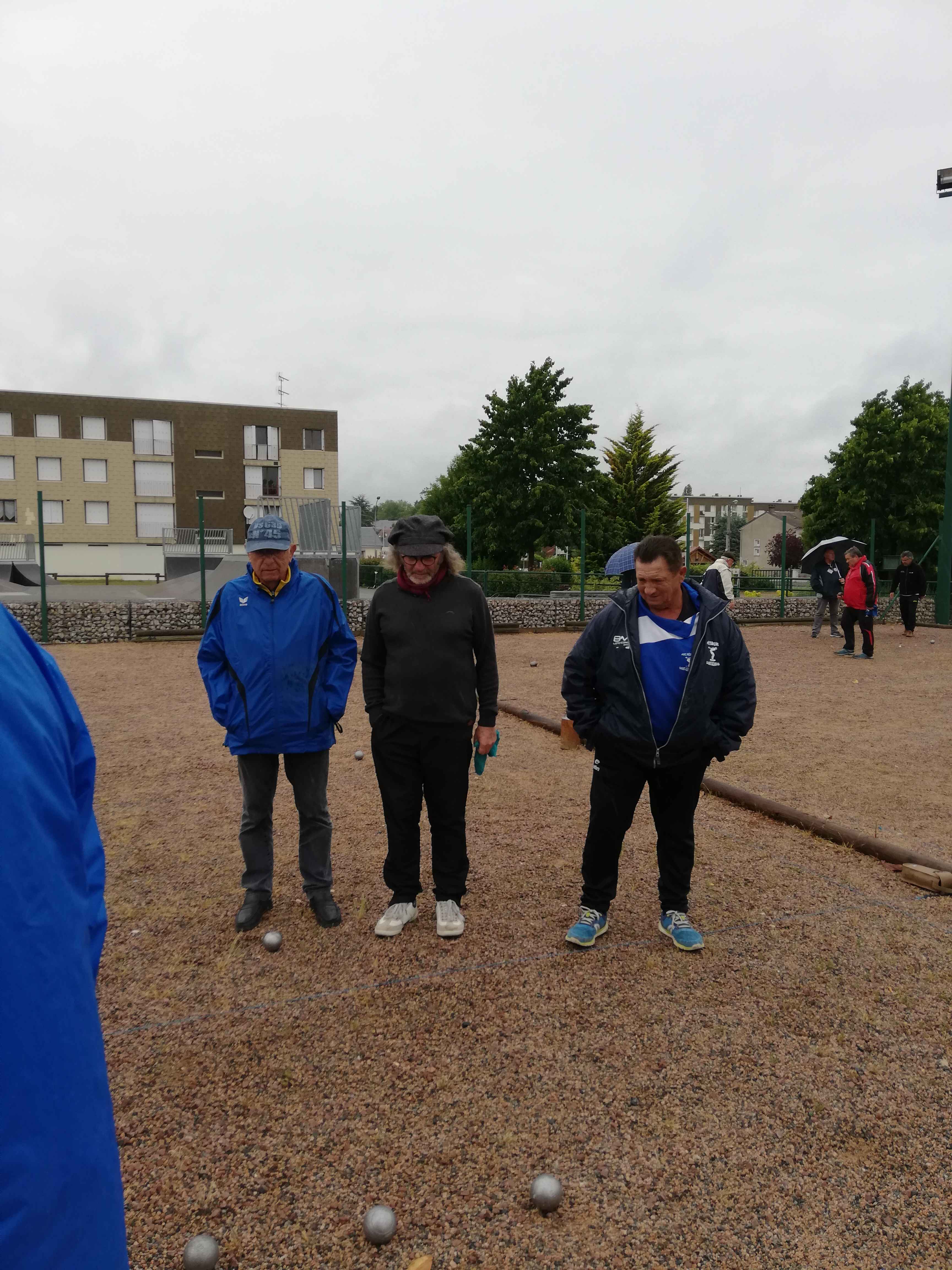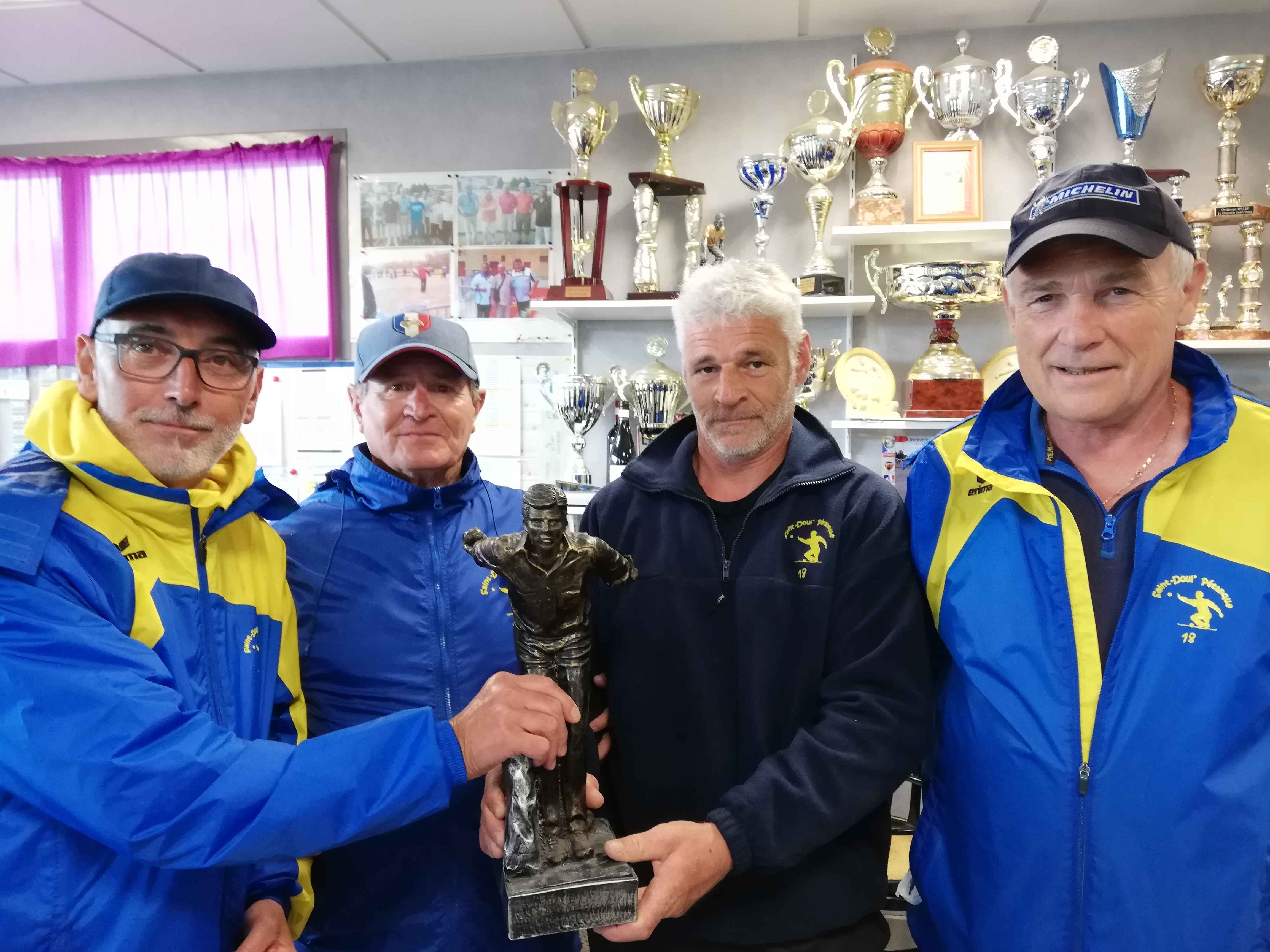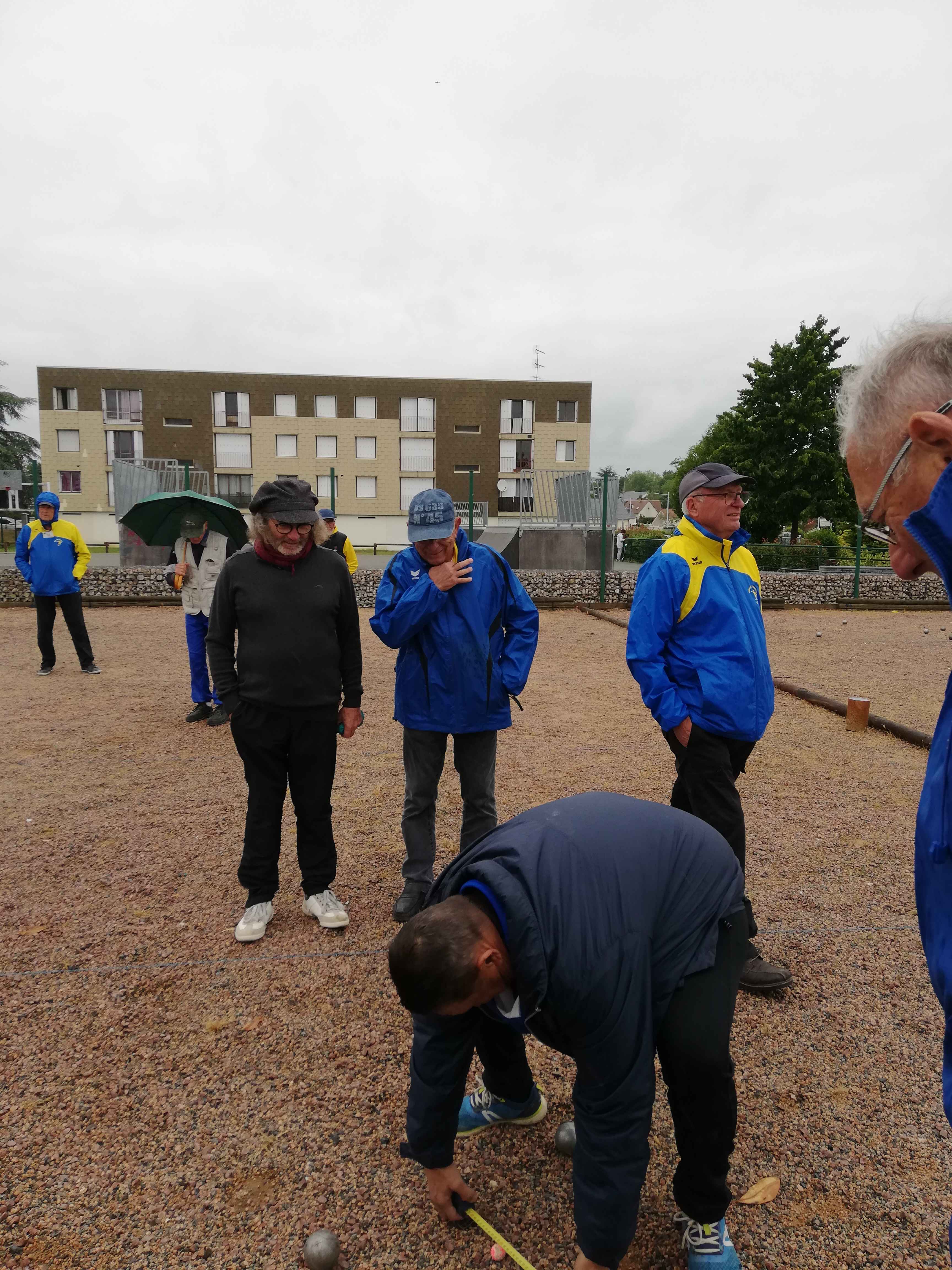 Affluence très modeste à cette occasion et seulement 22 triplettes en présence ! La météo exécrable (c’était prévu), un concours 55 ans et + également ce même-jour à l’autre bout du département, enfin une journée complète de CDC « Vétérans » le lendemain, ceci explique cela ! A noter comme d’habitude, la présence de Jeff OLMOS associé à H. LEBLANC (PB) et LACO de St Doul, qui bien sûr finira dans le dernier carré du Général avec NIQUET-VINCENT-CHAVOUET (PB), AUPETIT-GUERIN-MIRANDA (NH) et GIGI-FERNAND-POUPON de st Doulchard, ces derniers remportant le challenge à la pièce. La pluie n’ayant pas cessé, certaines parties n’ont pas pu être jouées, c’est le cas des Dolchardiens TETER-TATAVE-« Le Percheron » (cadrages du A).