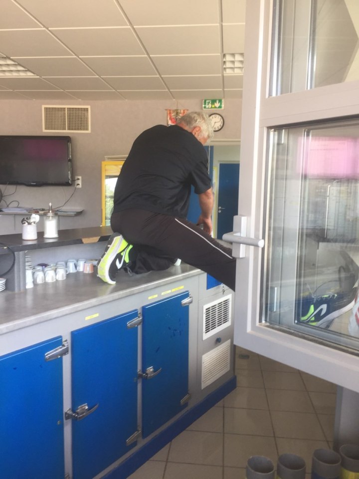 Autre point positif de notre Président, le service du café alors que le sol vient d’être lavé ! Respect FEG… mais attention à la chute !
