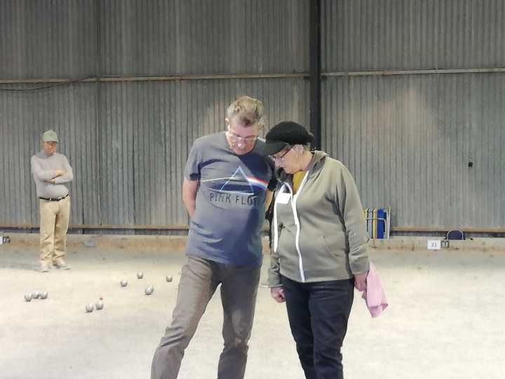 Ceci dit quelques équipes de St Doul homogènes ou non : alors qu’à 19h30 Gillou et Philippe TISSIER (PB) jouaient les 1/4 de finales contre nos amis de ‘Régionale » de Sandillon, Téter et Nono (St Florent) faisaient les cadrages du complémentaire après être venus à bout 13/12 de Pierrot et Fifi (Orval). Jo et Laco avaient chuté à la 3ème du Général. Petit parcours de Tintin et JPS (Consolante ?). Malko et Zibi étaient les 1ers en 1/2 finale du Complémentaire. Autres équipes NH, Loulou et « La Fouge » (Marmagne), Maryse et Dany (Orval) ainsi que Ptitseb et Roger (Marmagne), Léo et Jean-Marie PROT (Châteauneuf) …résultats ? Corinne (épouse de Waouff dit FEG) également présente pour son 1er concours 55+(?) avec « frère » Jacques (VEY)…hat-trick semble-t-il ? Pas grave et pas mortel !