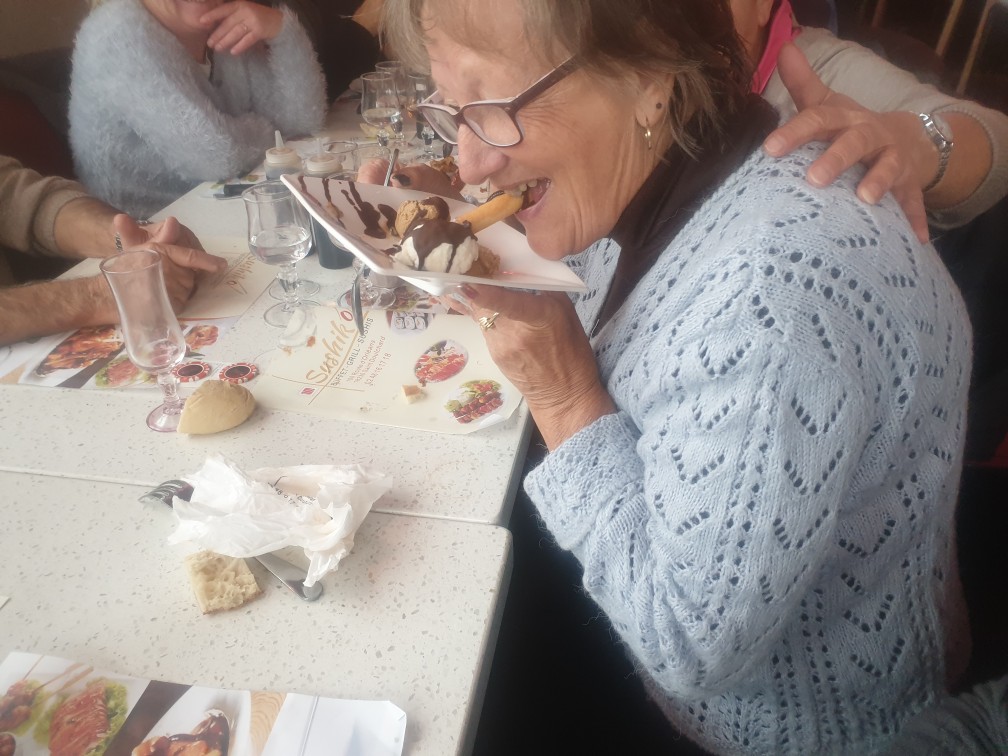 Avec Maryse qui se prépare à avaler un dessert peu commun et évocateur ! !