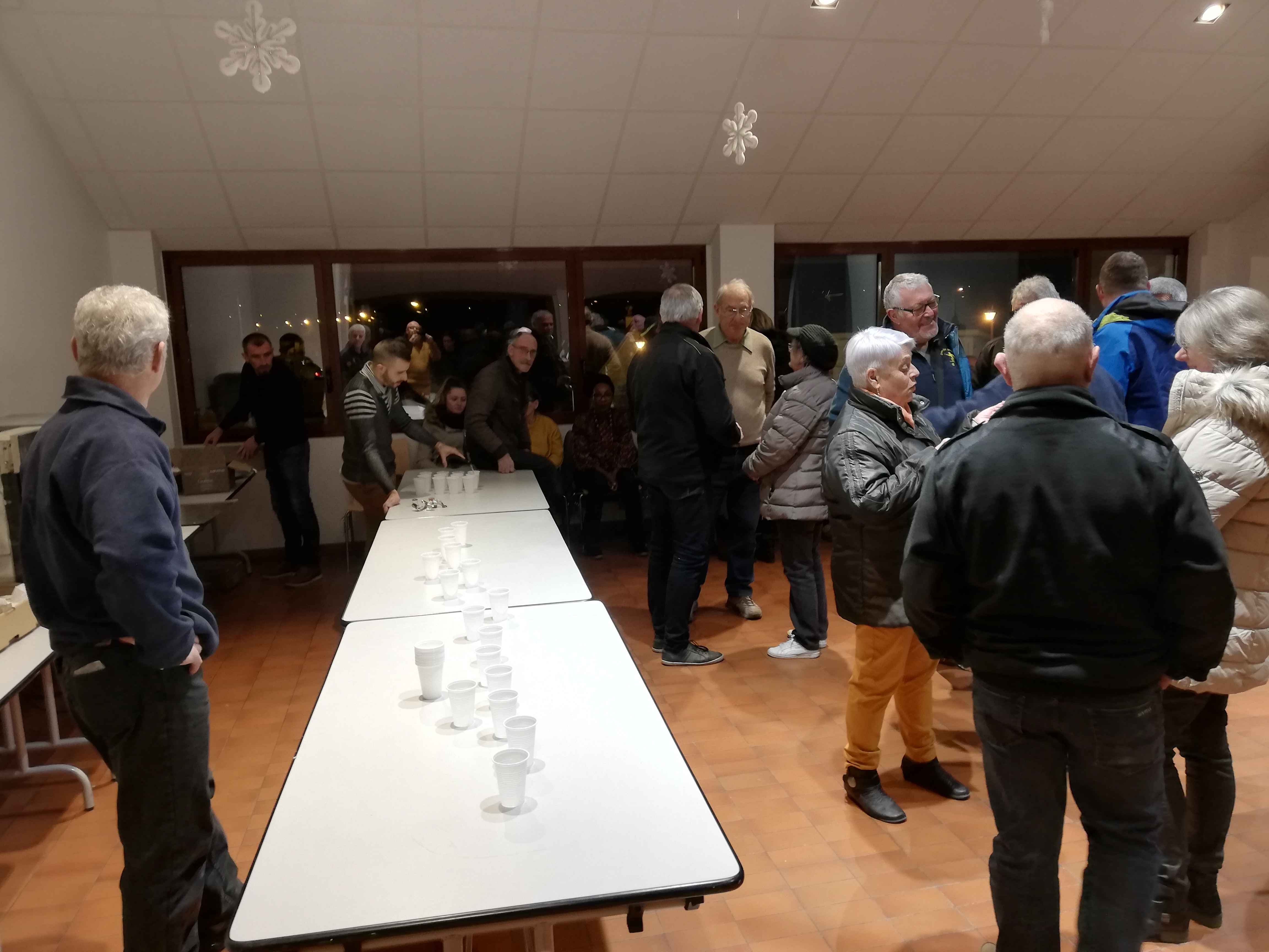 Bonne petite assistance en ce vendredi 10 janvier à l’occasion de la galette des Rois. Une cinquantaine de personnes étaient présentes, et elles ont du apprécier les bonnes galettes de St Eloy de Gy, malgré une panne de courant qui a fait qu’il n’y a pas eu moyen de les chauffer un peu. Désolé pour ce petit incident, l’année prochaine on fera notre manifestation au Centre de loisirs, l’équipement est beaucoup plus adéquat pour ce genre de divertissement !