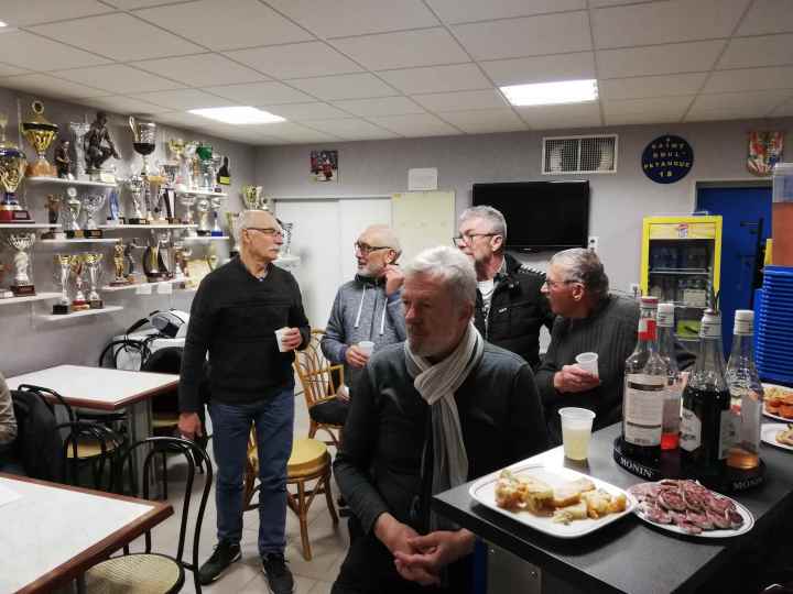 … Beaucoup ont répondu présent à l’appel de Tatave pour prendre le verre de l’amitié et avaler quelques en-cas préparés par Tatave himself ! 66 balais Octave et la pleine forme (pendant que j’y suis 10h dimanche matin pour le tour du plan d’eau). Merci pour ton invitation et on te souhaite une excellente année et avec une bonne santé, de bons résultats sportifs. Sinon, excellent les cakes, ça mériterait 1 étoile (Celle qu’a perdu Paul BOCUSE) ! !