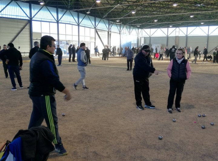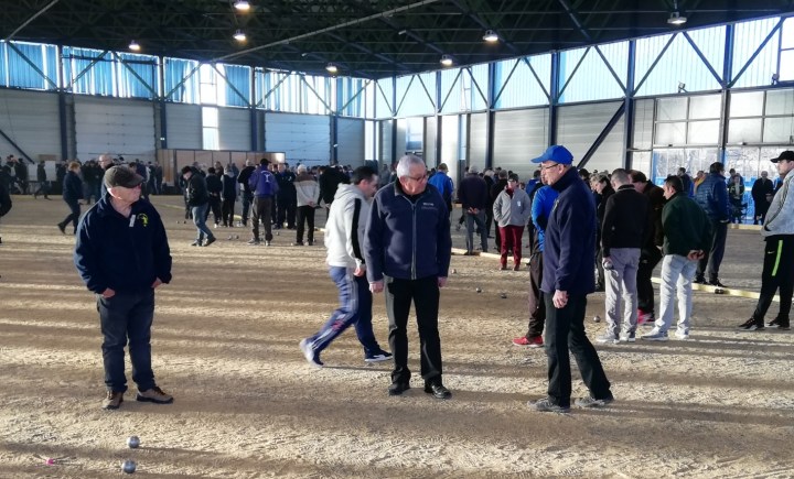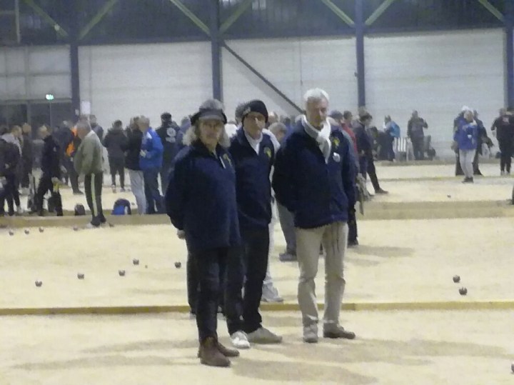 Samedi 18 janvier, 1er concours en triplettes au parc d’expositions de Vierzon. Beaucoup de monde comme d’habitude, 124 équipes pour 60 terrains. Un petit couac puisque il a fallu arrêter la première partie au bout de 10 mn à cause d’une panne de courant ! Nouveau tirage de la 1ère partie, et comme d’habitude, foire d’empoigne pour trouver, et son adversaire, et un terrain ! Si les organisateurs voulaient bien attribuer au moins 1 terrain pour la 1ère partie, ce serait beaucoup plus sympathique. Après on pourrait toujours trouver de la place, certains étant beaucoup plus expéditifs que d’autres. A voir pour les prochaines compétitions où il risque d’y avoir encore plus de monde (concours à Orléans également ce samedi 18).