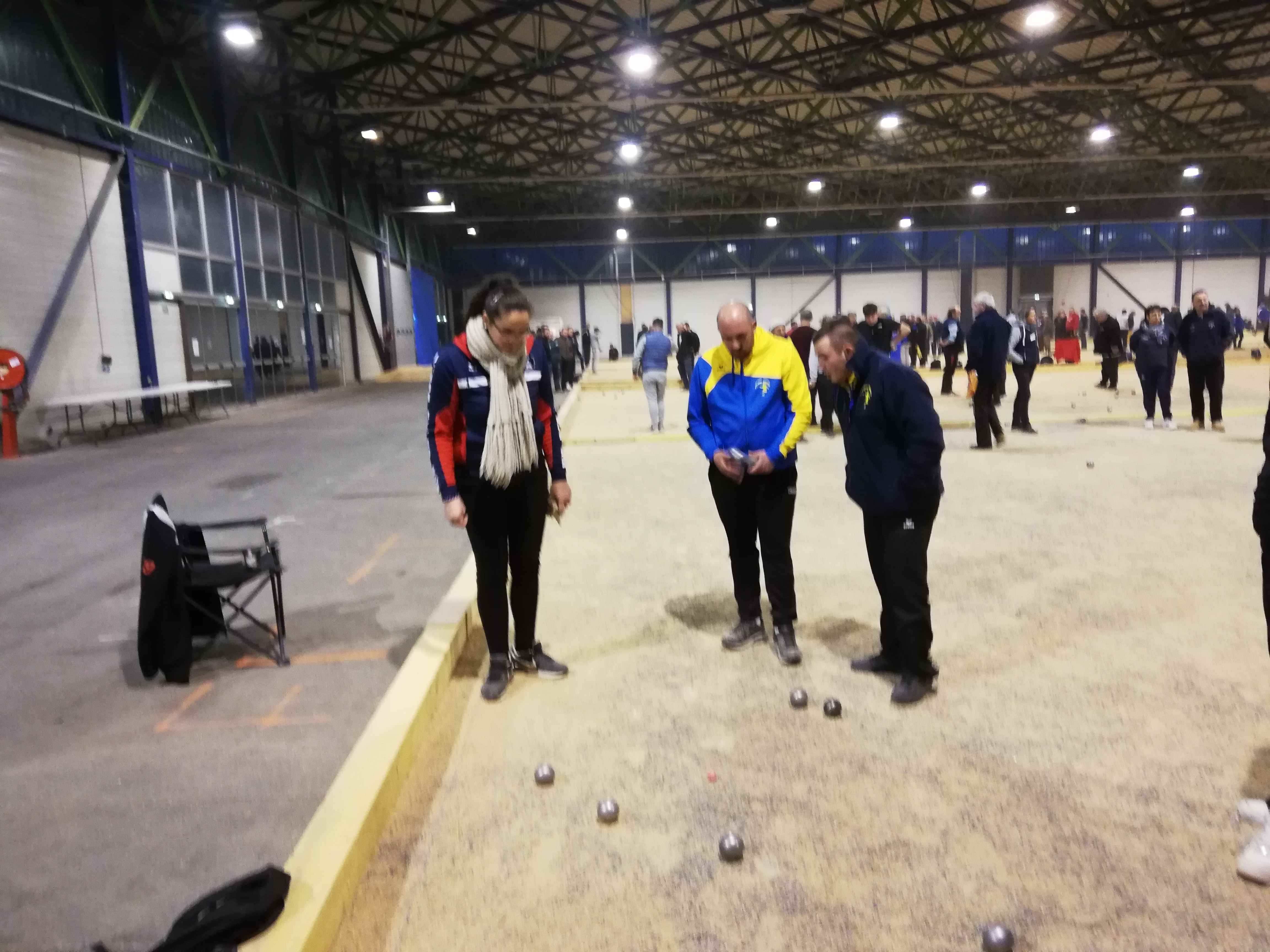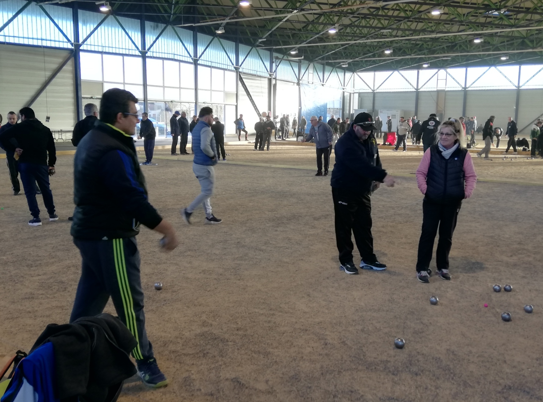 Samedi 18 janvier, 1er concours en triplettes au parc d’expositions de Vierzon. Beaucoup de monde comme d’habitude, 124 équipes pour 60 terrains. Un petit couac puisque il a fallu arrêter la première partie au bout de 10 mn à cause d’une panne de courant ! Nouveau tirage de la 1ère partie, et comme d’habitude, foire d’empoigne pour trouver, et son adversaire, et un terrain ! Si les organisateurs voulaient bien attribuer au moins 1 terrain pour la 1ère partie, ce serait beaucoup plus sympathique. Après on pourrait toujours trouver de la place, certains étant beaucoup plus expéditifs que d’autres. A voir pour les prochaines compétitions où il risque d’y avoir encore plus de monde (concours à Orléans également ce samedi 18).