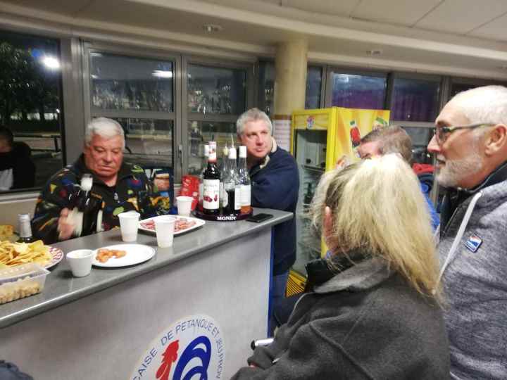 Tout d’abord, avant de parler pétanque, je me dois de revenir sur un évènement qui s’est passé vendredi dernier au club. Mais où avais-je la tête…J’ai oublié que vendredi soir Nadine nous avait conviés à prendre un verre et à déguster entre autre, les fameux cakes à Tatave, à l’occasion de son anniversaire ! Désolé Nadine, mais j’ai été un peu perturbé cette fin de semaine dernière avec l’opération de ma miss, mais comme dirait le Biker, « Vieux motard que j’aimais »…bof ! Alors merci Nadine pour ton invitation, on a passé une bonne soirée.