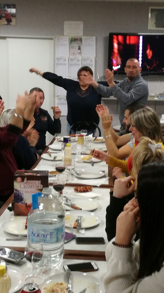 Je ne sais qui a pris les photos … mais des photos avec des grosses bouteilles d’eau et de la vinaigrette sur la table .. ! par contre, il y a bien quelques verres de vin et le goulot des bouteilles de Ricard et de whisky qui dépassent … c’est un peu comme dans la vie, on ne peut pas tout cacher !! pour Isa et Jessy … j’étais pas au courant de la romance !! et pour Fabien, on joue ensemble ce Dimanche, j’espère que les yeux seront un peu plus grand ouverts vers 14H .. TRES BON DIMANCHE A TOUS …