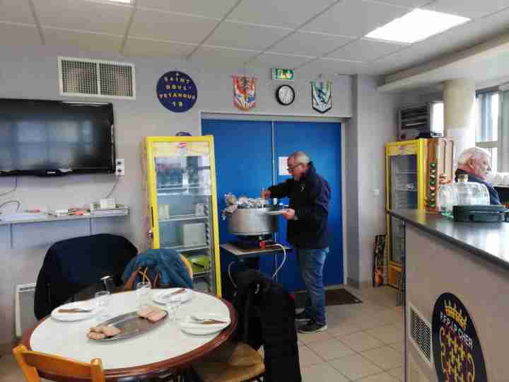 On arrête à 11h30 pour prendre en commun l’apéro et le repas préparé par Georges LAURO…terrines, bourguignon…excellent ! ! Merci Georges et merci le couple MACIA pour l’organisation de cette journée. Ce qui n’a pas empêché quelques joueurs de donner la main avant de reprendre le match (photos non parvenues !)