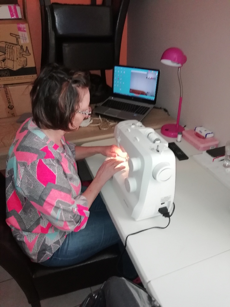 Autre clin d’œil de Christelle et Dominique, la famille CAPIOMONT va bien et s’occupe du mieux qu’elle peut. D’après les photos ci-dessous, on peut voir que l’occupation est d’utilité familiale (voire plus !) puisque consacrée à la fabrication de masques ! Bonne idée, il va y en avoir besoin ! D’autant que, comme vous savez, on a envoyé un gros porteur en Chine pour acheter je ne sais combien de millions de masques, et que le pilote ayant été testé positif au COVID 19, celui-ci a été mis en quarantaine ! Je ne devrais pas, mais gros LOL !