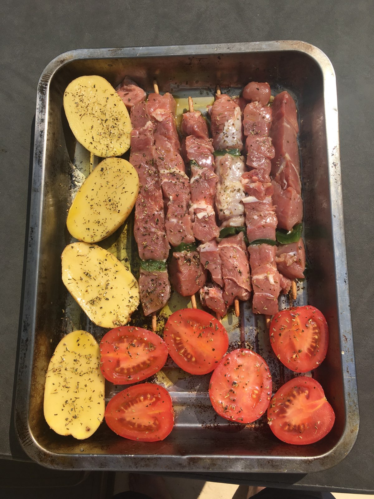 Je ne peux pas croire que 2 brochettes te suffisent ! Ou alors tu as changé ! Tout est divisible par 3 sauf les patates… Ki K’en mange pas ? Ou seulement une demie ?
