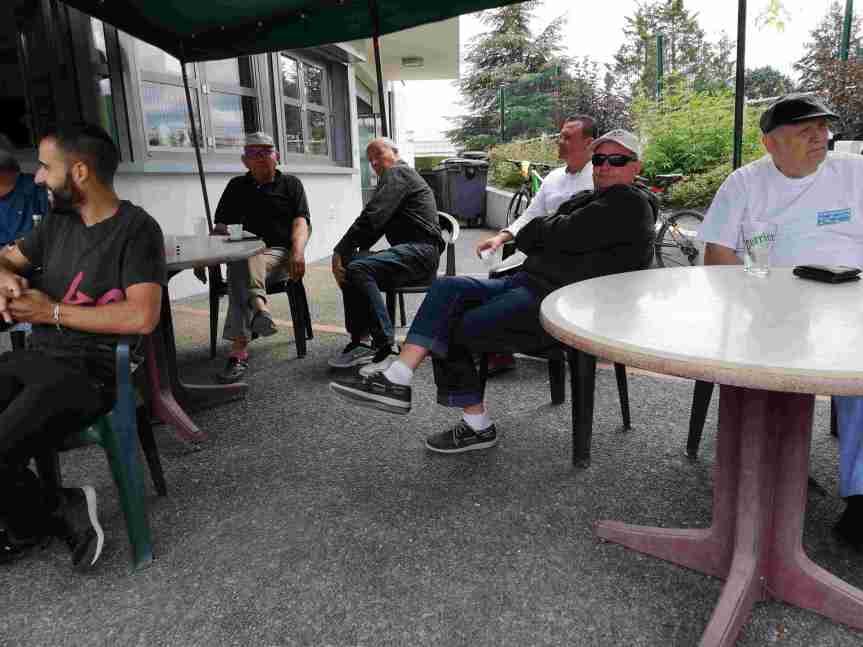 …avec beaucoup de monde tous les après-midis ! Comme je l’ai déjà dit,chez nous c’est comme à « Courtepaille« , ouvert 365 jours de l’année, sauf en période de COVID 19 bien entendu ! On a prolongé l’accès à la buvette par un barnum histoire d’être à l’abri en cas de pluie ou de forte chaleur, alors certains préfèrent rester à l’ombre plutôt que de jouer en plein « cagna » !