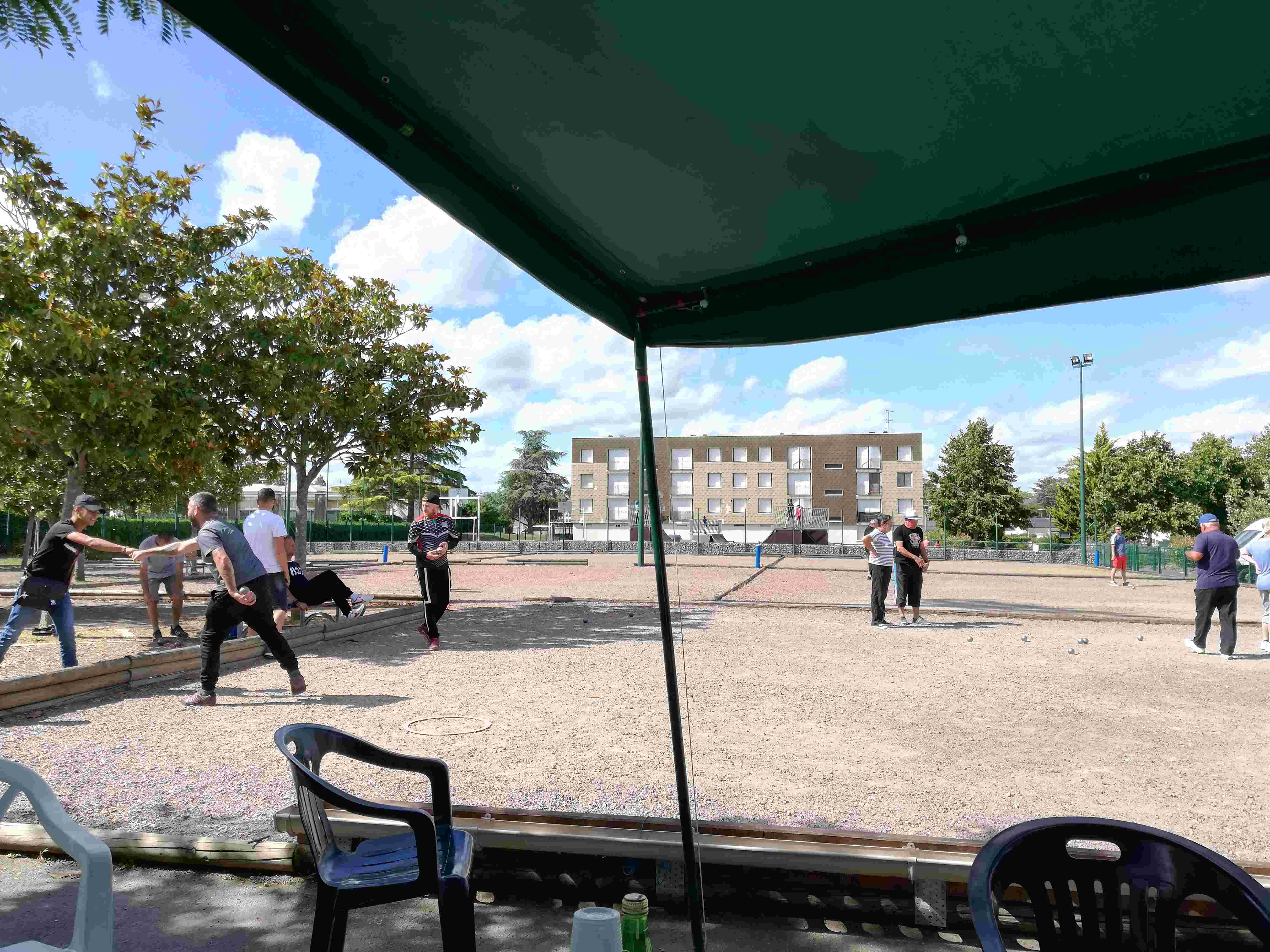 …avec beaucoup de monde tous les après-midis ! Comme je l’ai déjà dit,chez nous c’est comme à « Courtepaille« , ouvert 365 jours de l’année, sauf en période de COVID 19 bien entendu ! On a prolongé l’accès à la buvette par un barnum histoire d’être à l’abri en cas de pluie ou de forte chaleur, alors certains préfèrent rester à l’ombre plutôt que de jouer en plein « cagna » !