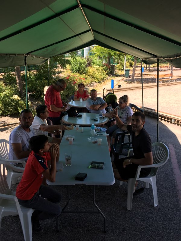 La participation de quelques personnes non licenciées au club mais qui sont des ami(e)s réguliers de SDP18, La Fouge, membre honoraire, Jennifer, fille de JL, et Nadine RACLIN, amie de Maryse. Quelques-uns se sont réunis autour d’une plancha en prélude à la compétition.