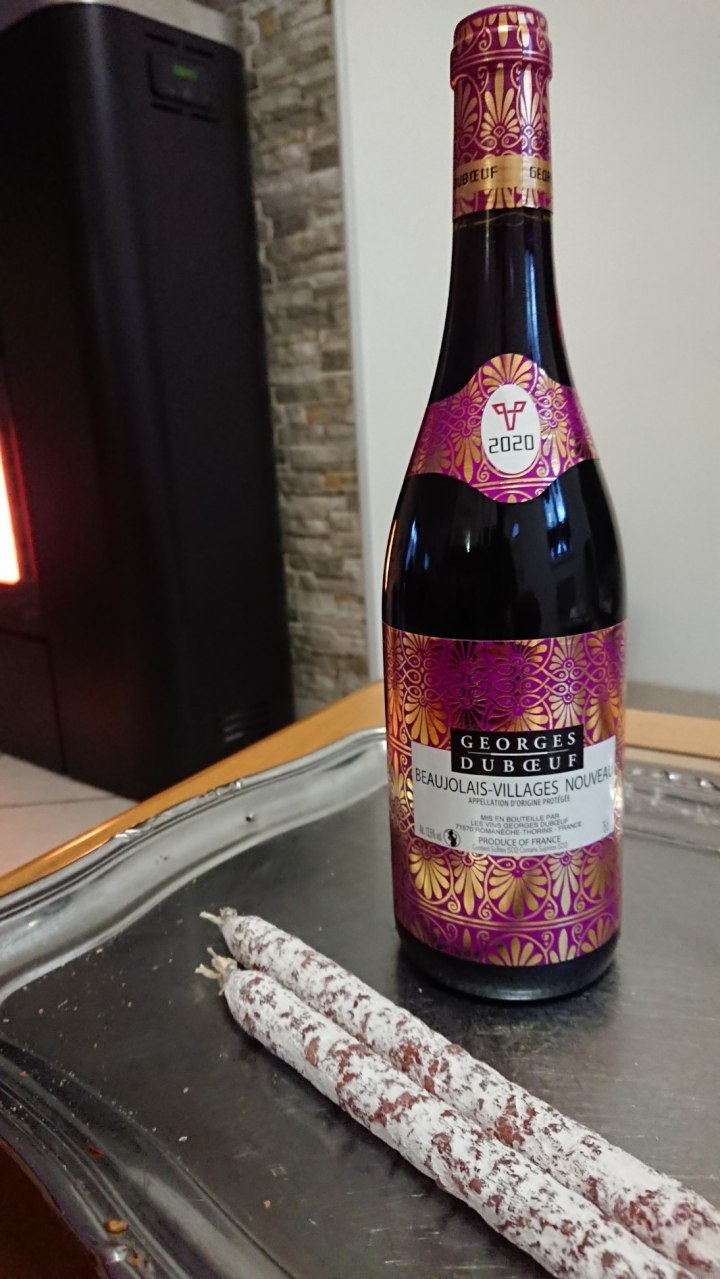 Cette année le club ne pourra pas organiser sa soirée « Beaujolpif » nouveau, hélas. Alors il faudra se contenter de boire un petit coup à la maison (modérément cela va de soi… pourtant le lit ne sera pas loin). Jo a fait ses amplettes et boira son petit canon en tête à tête avec lui-même ! Doucement sur le breuvage Jo, à fond sur le saucisson !