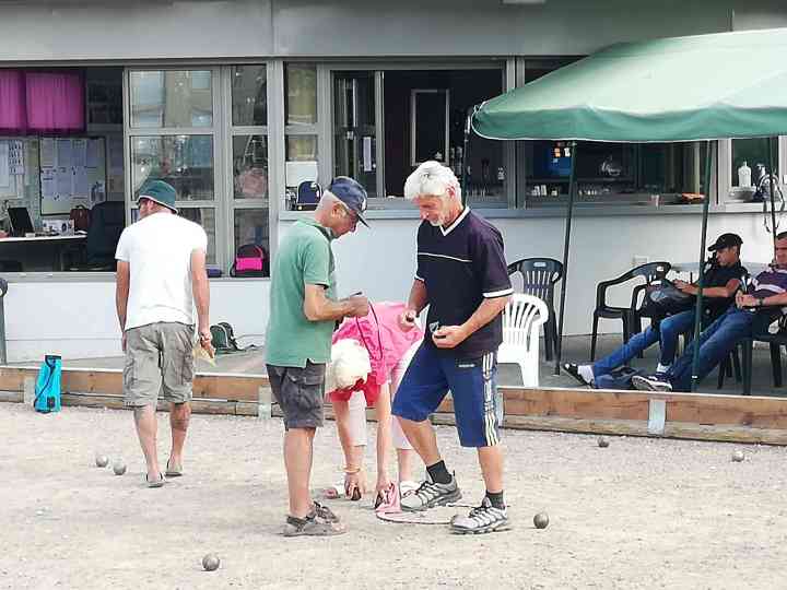 Avec Dom dit « Clan Campbell », Georges et Michel dit « Le Percheron » lors d’une mêlée au boulodrome…