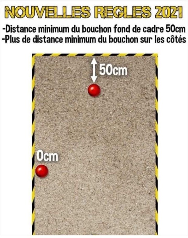 Le nouveau règlement concernant la pratique de la pétanque est disponible en rubrique « Infos 2021 ». Prenez le temps d’y jeter un œil ! Principale modification, le marquage du but : il doit être fait dès le premier jet, puis à chaque fois qu’il sera déplacé en cours de partie ! L’arbitre n’interviendra sur votre demande que si ces conditions sont respectées. Autre changement concernant la distance du but par rapport à la ligne de fond de cadre, elle est ramenée à 50 centimètres au lieu d’un mètre.