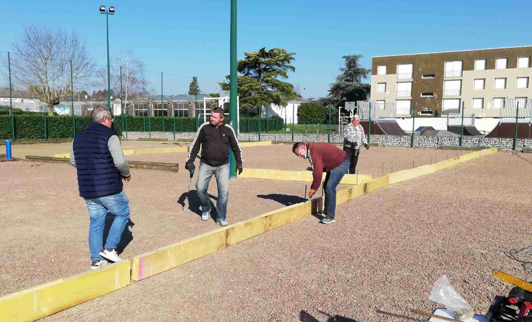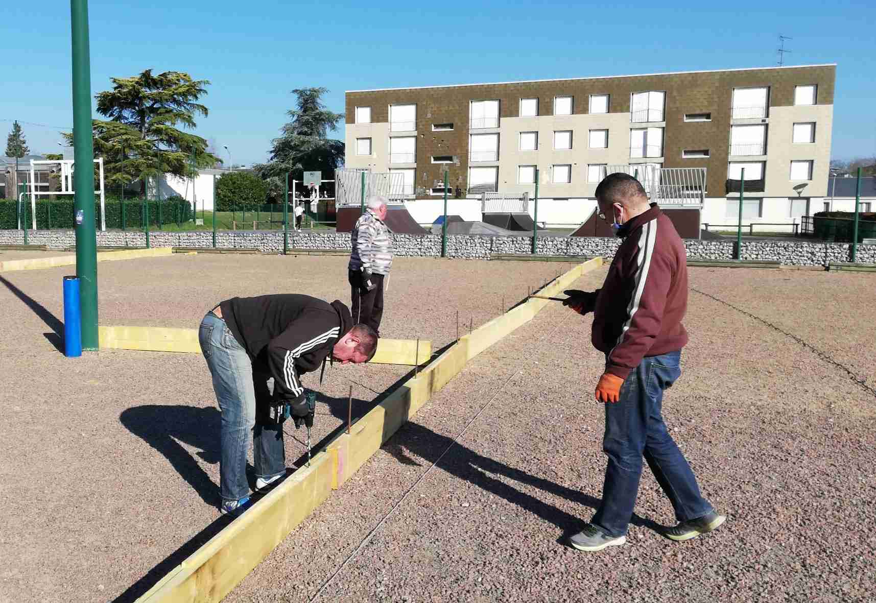 Le boulodrome comportera moins de surfaces de jeux qu’avant, puisque nous disposerons de 30 terrains au lieu de 36. Mais ces derniers seront aux normes minimales (13mx3m) pour accueillir le CRCV et les autres CDC éventuellement. Merci à Georges, Fernand, Tatave, « le Percheron » , Claude, « Clan Campbell« , JLB pour avoir mis la main à la pâte !