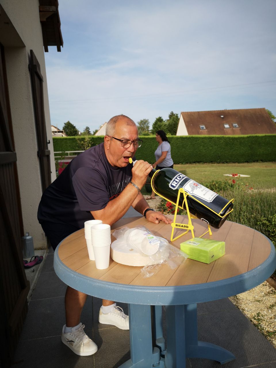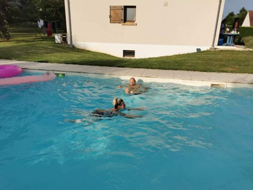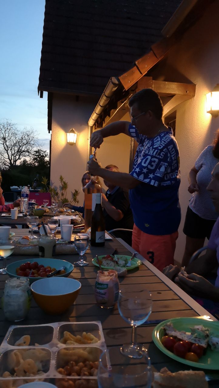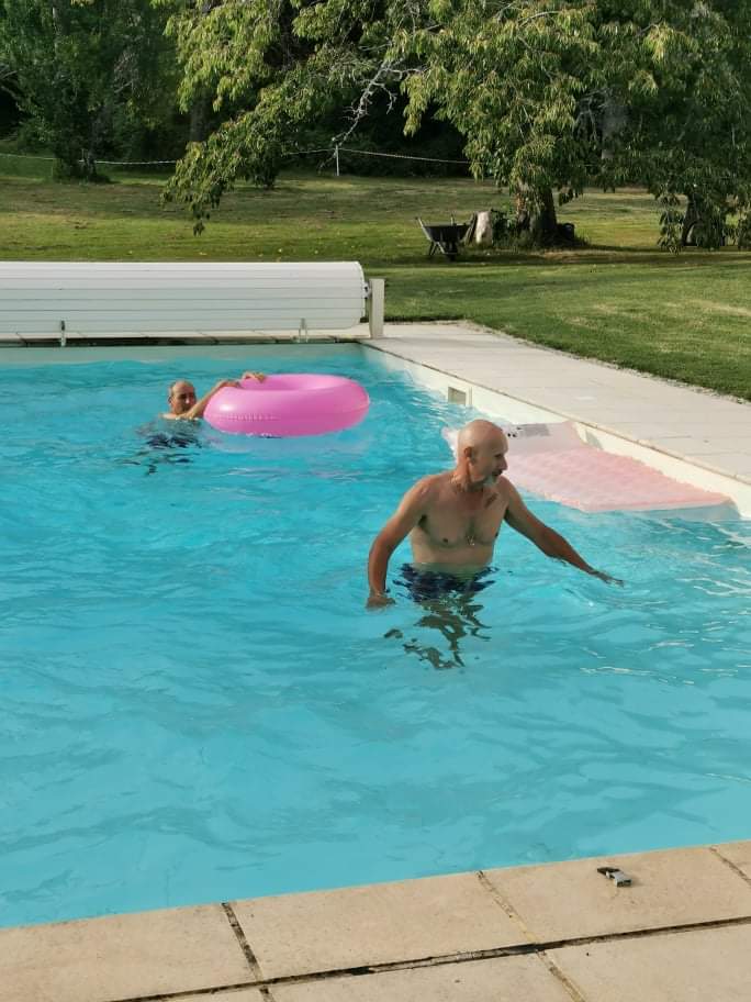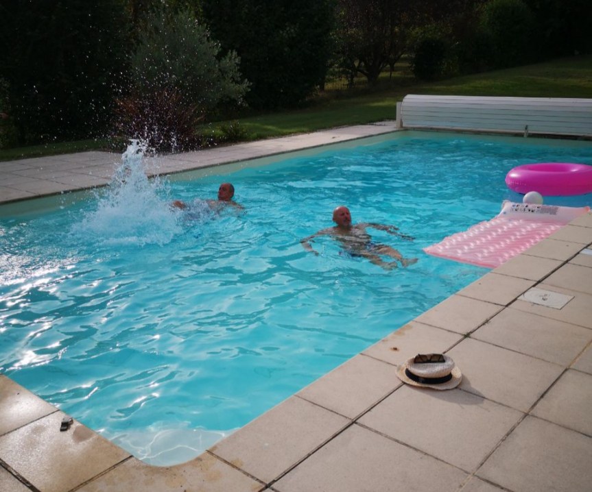 Tatave et Zibi…25°, excellente !Tatave et Zibi ont profité d’une eau à 25°…Excellente !Et quand Tatave s’en va Isa arrive !Georges et Bernardo au ping pong.Mets un peu d’eau Georges ! !« Poussin », « Clan Campbell » et Nath.« Gros Lapin », « Bernardo », Manu, Zibi et « Poussin » !Georges, Isa, Nath, Régine et « Clan Campbell ».Jean-Jean et Nath aux manettes…J’avais dit « Jéroboam » de rosé, en fait c’est peut-être « Magnum » !Poussin et « crâne de piaf »…bel aérodrome à mouches ! Eventuellement casquette en peau d’genou, mais sans visière !