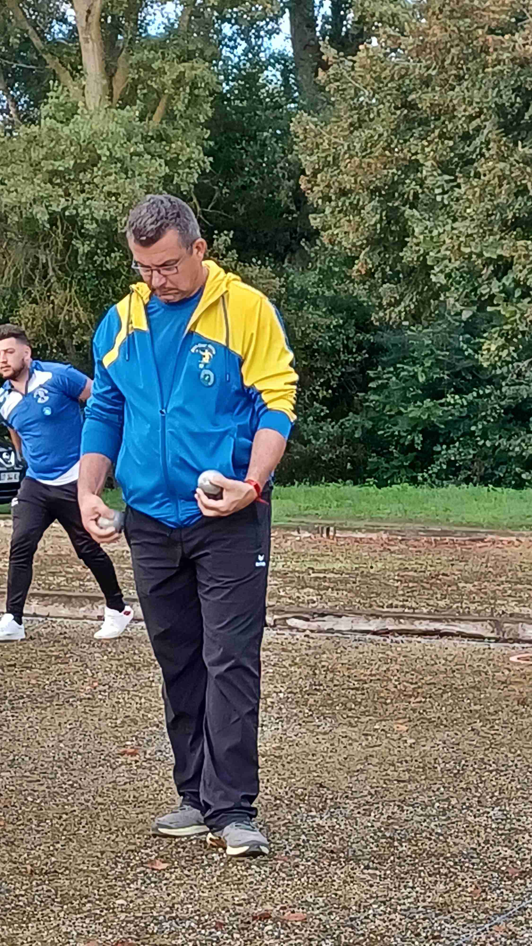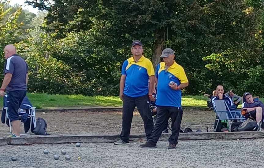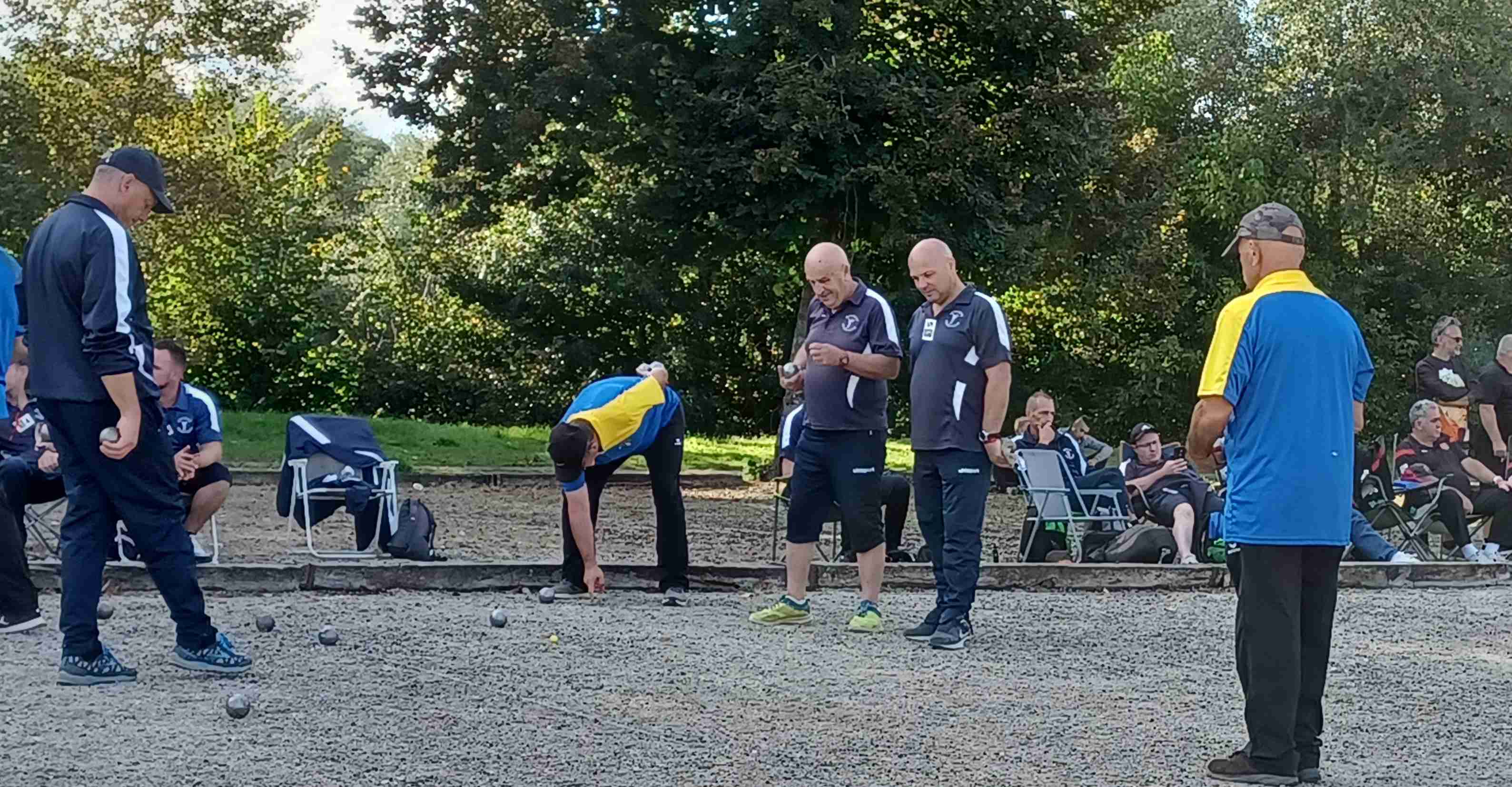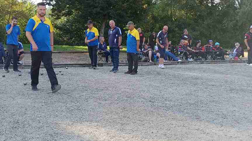 Il fallait relever la tête l’après-midi et tenter de réaliser une bonne performance contre Argent ! Manu et ses équipiers, malgré un départ mitigé, seulement deux TAT gagnés mais 2 doublettes, se devaient de remporter une triplette pour le match nul, et les deux pour le gain du match. « Bernardo », Jeanjean et Manu d’un côté et Zibi, « Ptitbouc » et Nico (remplacé par Jessy à 10/10) de l’autre, récupéreront les 12 points nécessaire à la victoire après plus d’une heure et demi de jeu. La 2ème équipe gagnera sa rencontre 13/10, assurant le nul enlevant un peu de pression sur la 1ère. Une mention particulière à cette 1ère triplette qui, à 9/5 réalise une superbe mène de gagne grâce à un bouchon de « Bernardo » suivi d’un « cul de boule » des Argentais toqué par Manu qui donnait 2 pts à l’équipe. Manu et Jeanjean rajoutaient les 2 pts manquants dans un mouchoir de poche ! Grand bravo !