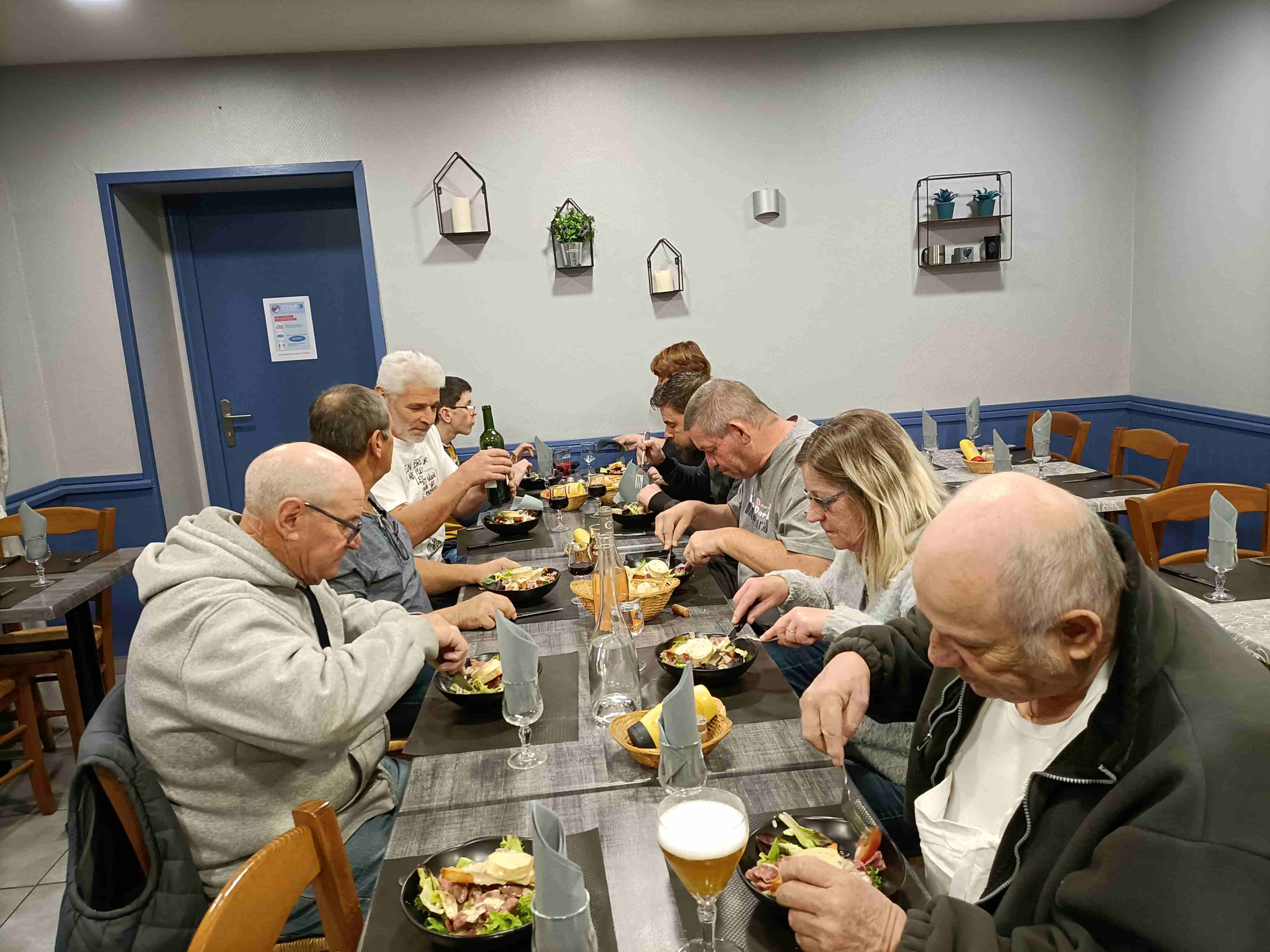 …C’est au tour de la 4ème division groupe B de se réunir avec son coach Georges LAURO autour d’une table au restaurant L’Excuse » chez notre ami Neuneu.