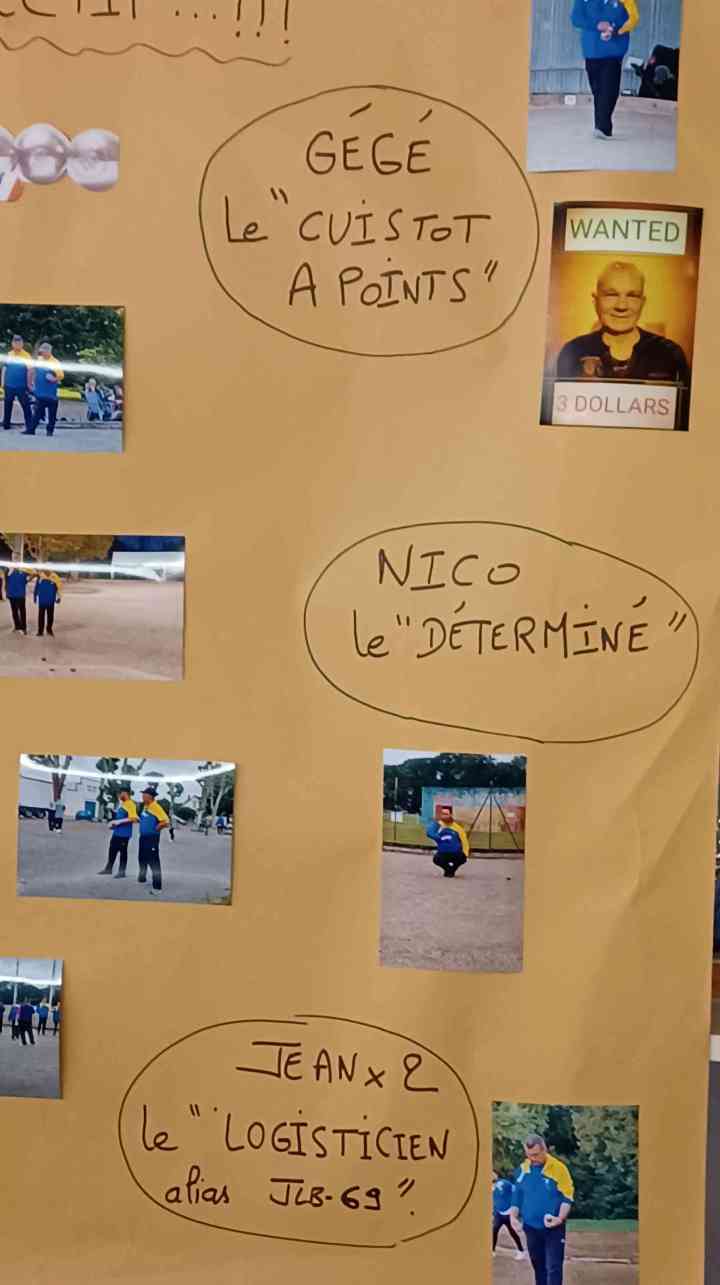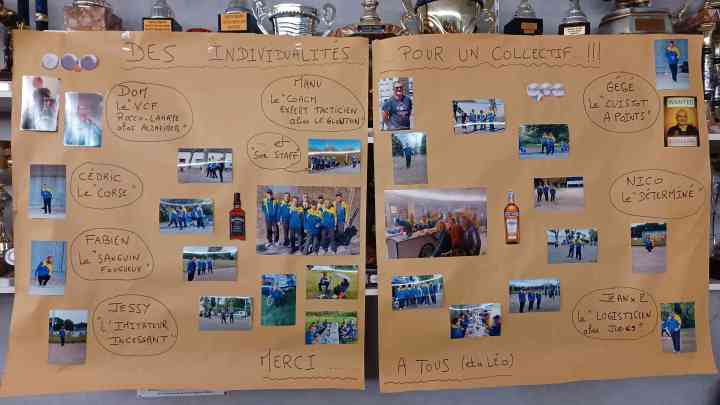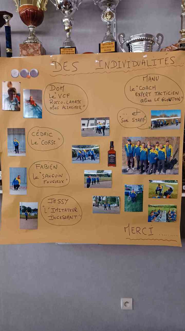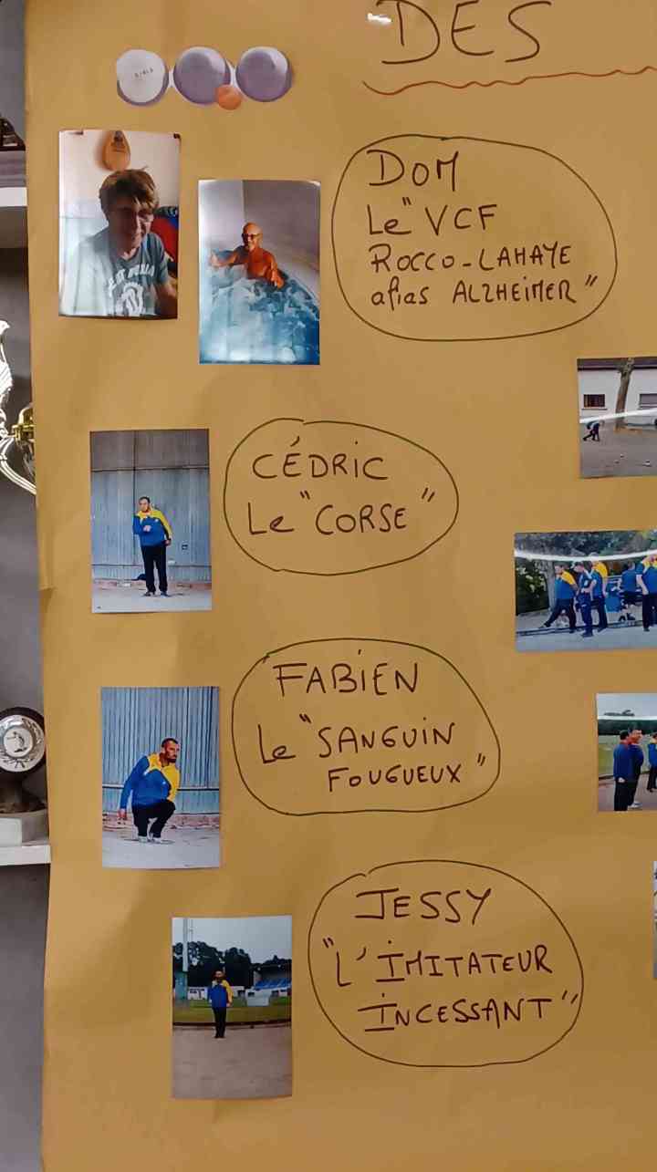 Nous avons eu droit à une fresque de Jeanjean avec les photos de tous les joueurs auxquelles était associé un trait de caractère ! Superbe ! Bravo Jeanjean…toujours aussi surprenant et agréable pour nous !