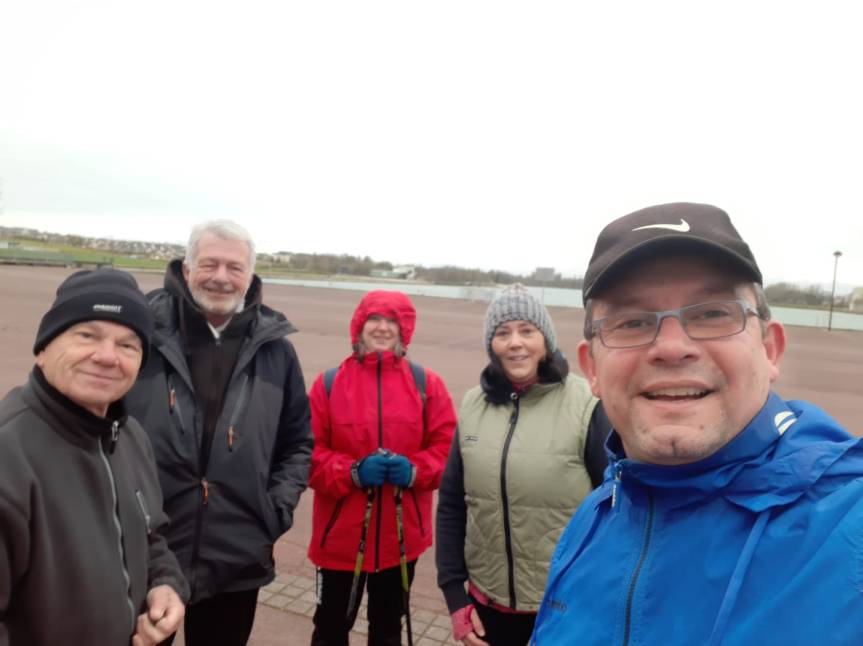 …Pas de pluie ce dimanche matin 6 février, mais un vent très froid venu cingler le visage des quelques courageuses et courageux qui sont venus faire 2 tours du lac d’Auron ! Deux couples, Jean2x et Nath ainsi que Bernardo et Régine, accompagnés par Jo venu tester ses genoux !