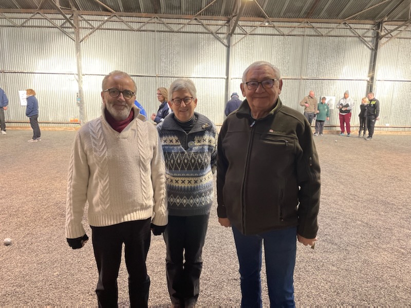St Doul pétanque est au départ avec 5 équipes homogènes et une NH. Isa-Ptitbouc-Jean2x, Maryse-Jo-Miché, Martine-Jackito-Hervé, Maryline-L’Etiré-Fernand et Nadine-Michel-Cédric pour les homogènes, Unna (CBV)-Bernardo-Quintal++ pour la NH. Notre Président qui remplace Ptitseb au pied levé, ce dernier ayant été victime d’un accident vendredi soir.