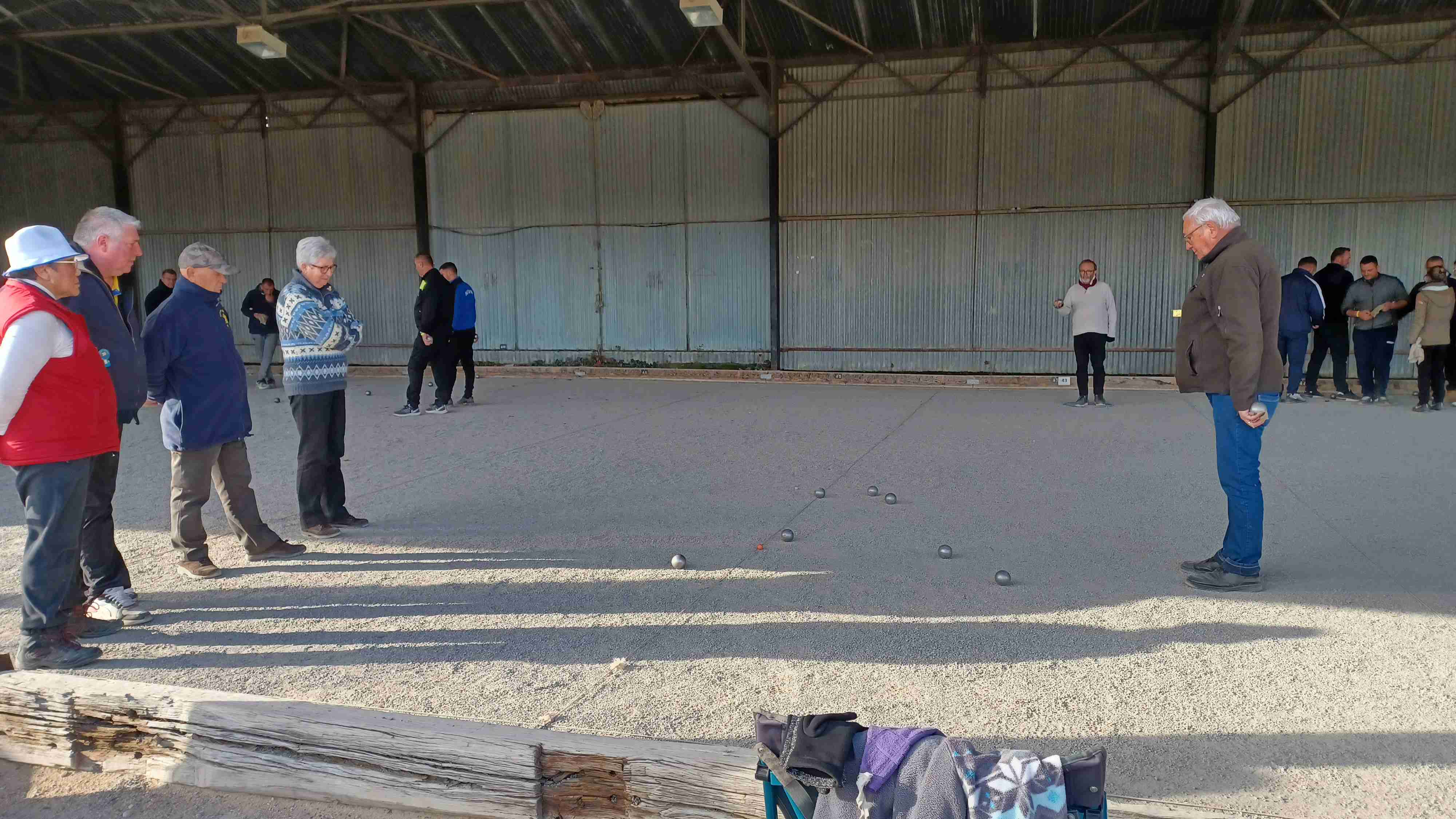 St Doul pétanque est au départ avec 5 équipes homogènes et une NH. Isa-Ptitbouc-Jean2x, Maryse-Jo-Miché, Martine-Jackito-Hervé, Maryline-L’Etiré-Fernand et Nadine-Michel-Cédric pour les homogènes, Unna (CBV)-Bernardo-Quintal++ pour la NH. Notre Président qui remplace Ptitseb au pied levé, ce dernier ayant été victime d’un accident vendredi soir.