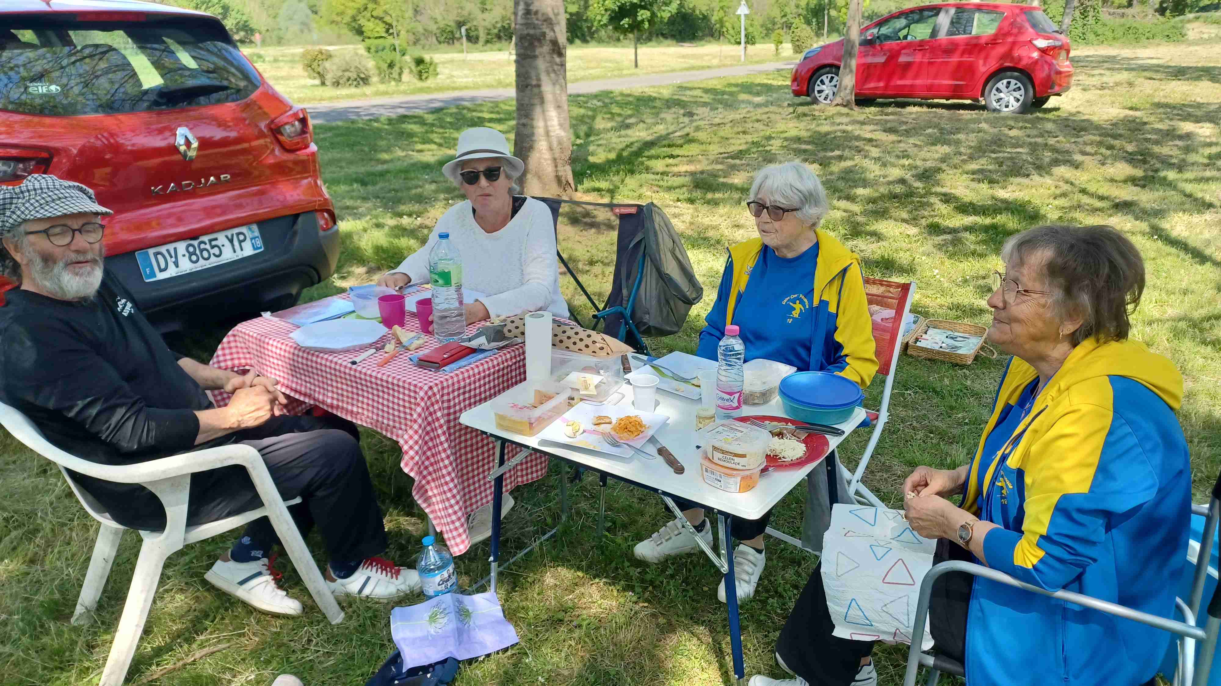Pique-nique pour tout le monde du fait d’une belle journée annoncée, cependant, il va falloir travailler la « com » ! 7 ont pris place au bout du site (arrivés les premiers), et 12 à l’entrée du site ! Dommage, même notre Président inscrit à la compétition n’était pas au courant ! On fera mieux la prochaine fois.