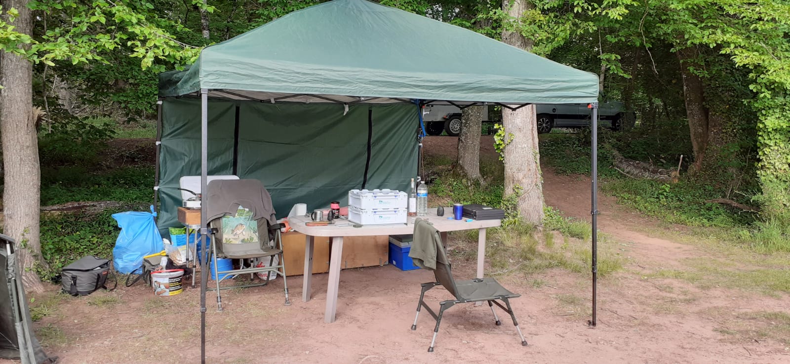 …puisqu’on ne peut pas jouer à la pétanque, du côté de chez Claude et Mathieu, on sort les gaules et on va à la pêche à la carpe.