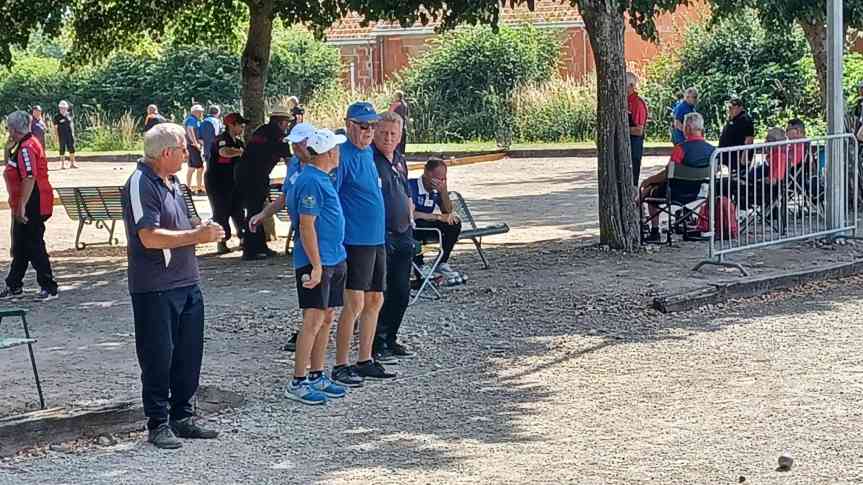 …ce jeudi 16 juin, alors que la canicule nous était promise, on a eu la chance de n’avoir que 32 degrés, un soleil légèrement voilé, une petite brise sympathique et surtout un cadre ombragé magnifique. Tout ça sous la houlette de MM POLLET Francis et ISSARTEL Gilles qui pourront féliciter leur équipe.