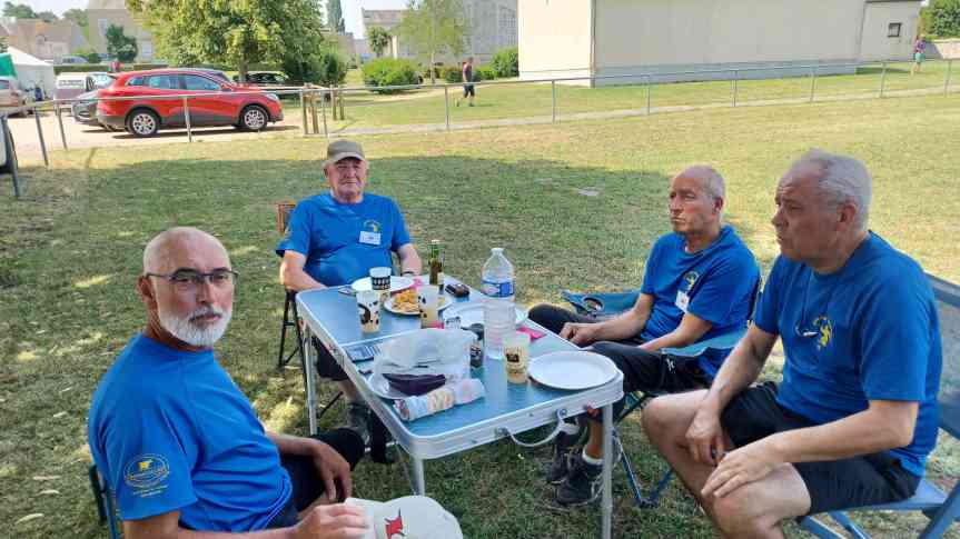 Avant la finale, les 2 équipes d’Orval et du CBV en compagnie des 2 arbitres Gérald SOULAT et GAUDRY Patrick, de Carole GUERIN du Comité et de Gilles ISSARTEL de Vallenay.Champions ABMONT et Gino du CBV, finalistes MAGGIANI et FOUGERON d’Orval.Les 1/2 finalistes perdants CARLET Didier et MOREAU Alain de Marmagne, BOUILLE Alain et MILLET Michel de Vallenay.Gilles et Francis aux manettes.Confrontation Dolchardienne en 1/8èmes, avantage Fernand et l’Etiré face à Gilou et JPS.Dédé et Zibi défaits en 1/8ème.Tatave et Téter défaits en cadrage……ainsi que Georges et Léo.Maryse et Alain contre BAYARD Daniel et ANDRE Raymond de St Amand.Hervé et Martine défaits à la 1ère partie après poules……par Fernand et « L’Etiré »……petite victoire 13/12 pour Fernand alors que les « Boulangers » menaient 12/3 ! !JPS et Gilou en attente.« Ptitseb » et Miché.Les 2 « Didier » VANDEPORTA et DESNOUX de Vallenay en poules contre BOCCI Gino et ABMONT Jean-Marc.Pierre-Yves et Philippe d’OrvalAinsi que les 2 « Bruno » d’Orval.Nono KLOCKOWSKI et Jean-Louis PERRUCHE de St Florent.Notre Président Robert GUERIN avec José MIRANDAMarie-Hélène PERRUCHE de St Florent.LAO Mali et MAM LEMOINE Unna du CBVDolchardiens et Dolchardiennes regroupés pour le repas de midi, rejoints par Coco VALETTE (porteur d’eau…LOL) et Jackito.Georges aux fourneaux !Gilou, JPS, Tatave et Téter.En compagnie également de Madame PROENCA venue soutenir « Ptitseb » et Miché.