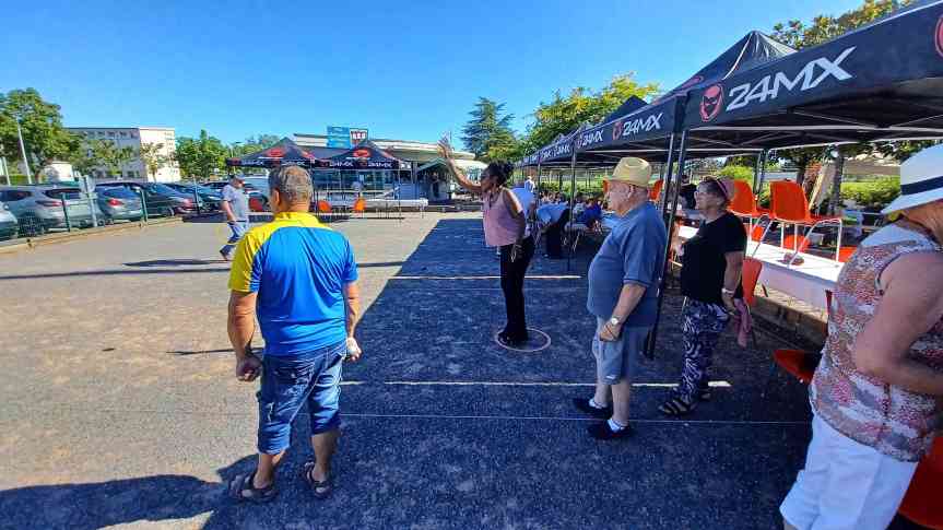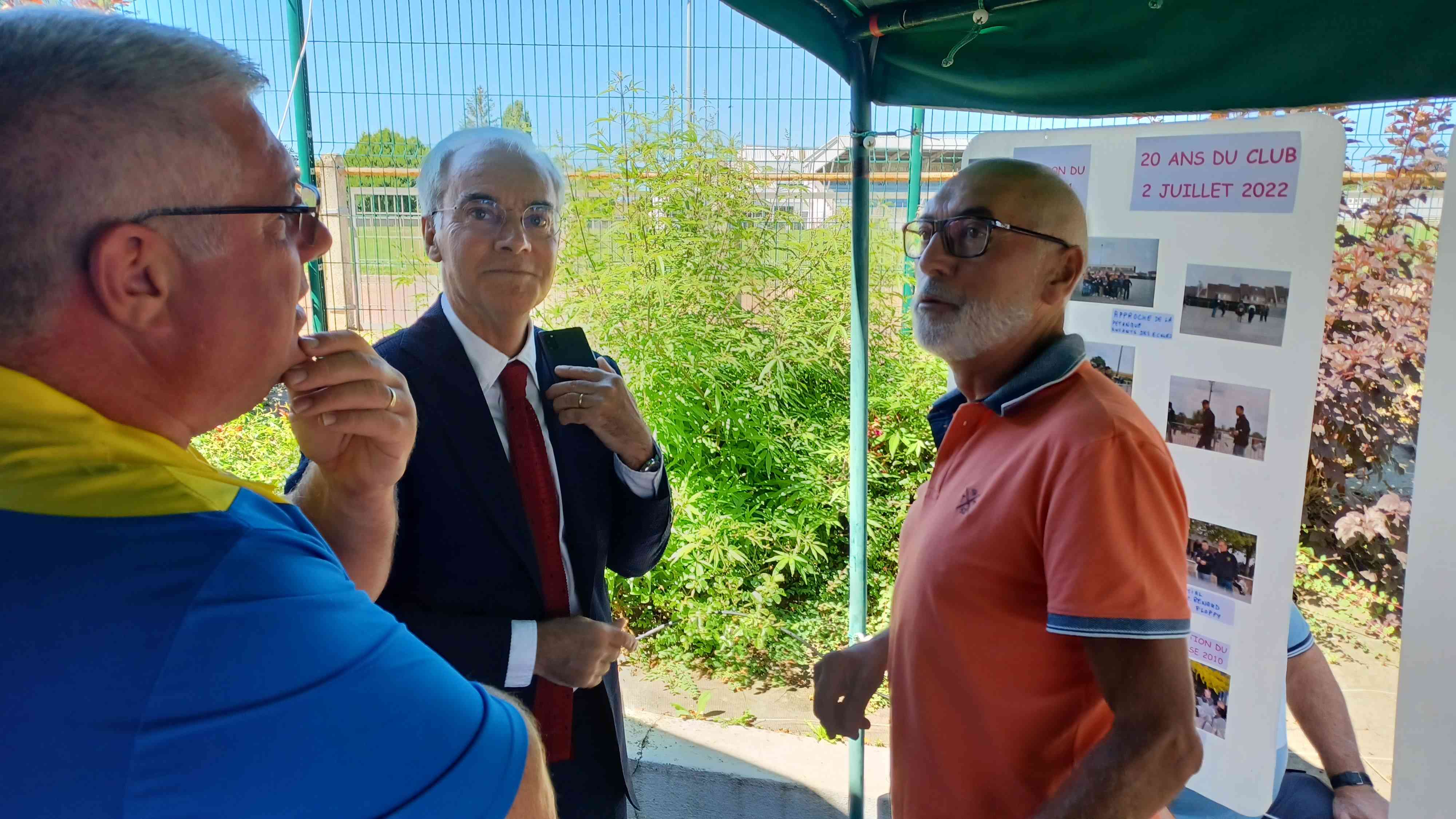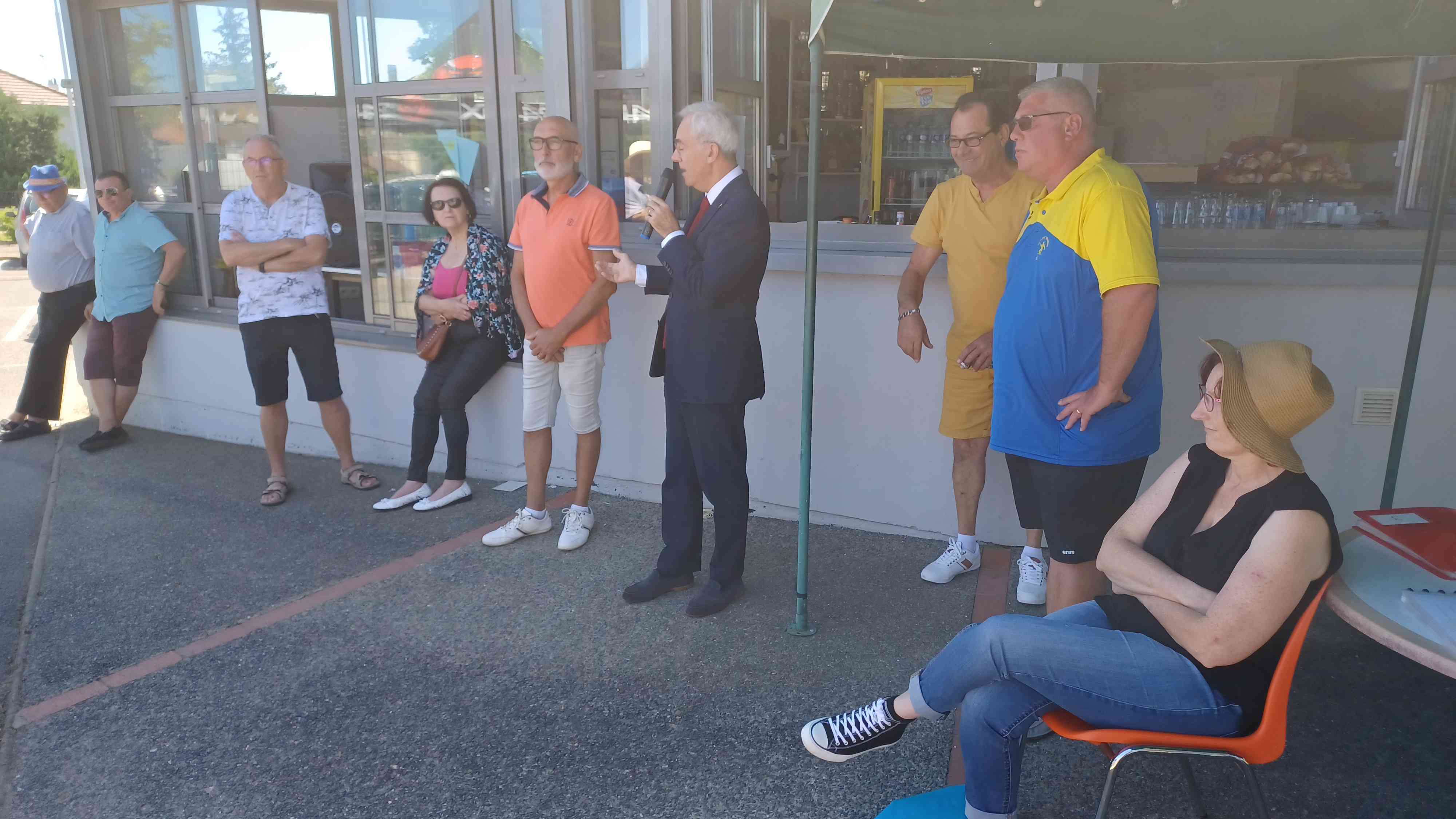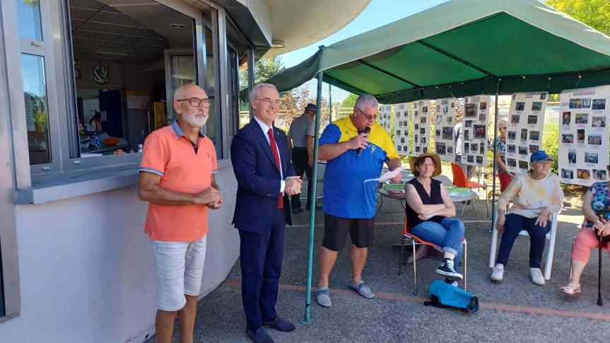 …Ce 2 juillet a été une belle journée ensoleillée, et les « 20 ans du club » que nous n’avons pas pu mettre sur pied en 2021 « COVID » oblige, ont pu se dérouler au boulodrome, en présence d’une cinquantaine de personnes. Et ce en présence de Monsieur BOUDET, Maire de la commune, qui nous a fait l’honneur de rester un petit moment avec nous.