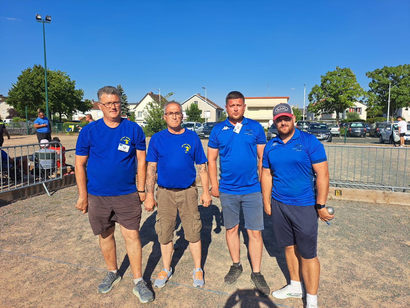…a pu se dérouler par une météo superbe et a vu s’affronter quelques belles équipes dont 1 venue de Vaucresson (région parisienne), mais aussi de la Nièvre, du Loiret et du Loir et Cher. Forte participation du Cher avec de potentiels vainqueurs tels STEINBACH-MENDES (Bruère) récents champions du Cher « Triplettes », JACQUET M.-CLAVIER, de St Florent, CHANAS-JACQUET L. (Moulon), GELU J et T (St Germain), RIBET-JAMET (Clémont). Mais il fallait aussi compter sur DEMUTH-ANDRE (NH), CHEVALIER-CHAUVEAU (Loiret), HORN-LLECH (Nièvre), DESPLANCHES-COMMAILLE (Gien) et BAUD-AUVISTE (Tours).